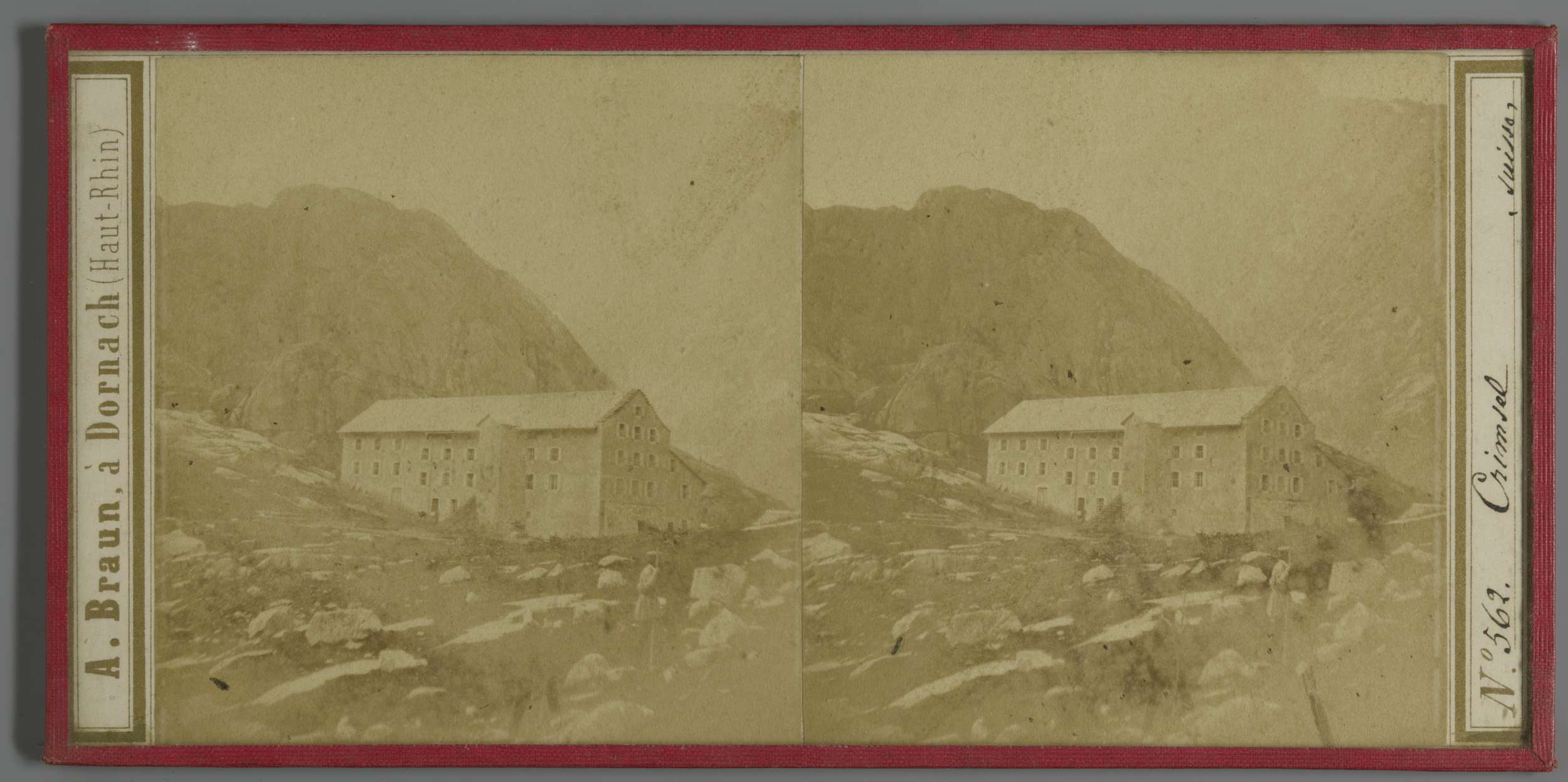 Gezicht op een gebouw in de Grimselpas, Zwitserland