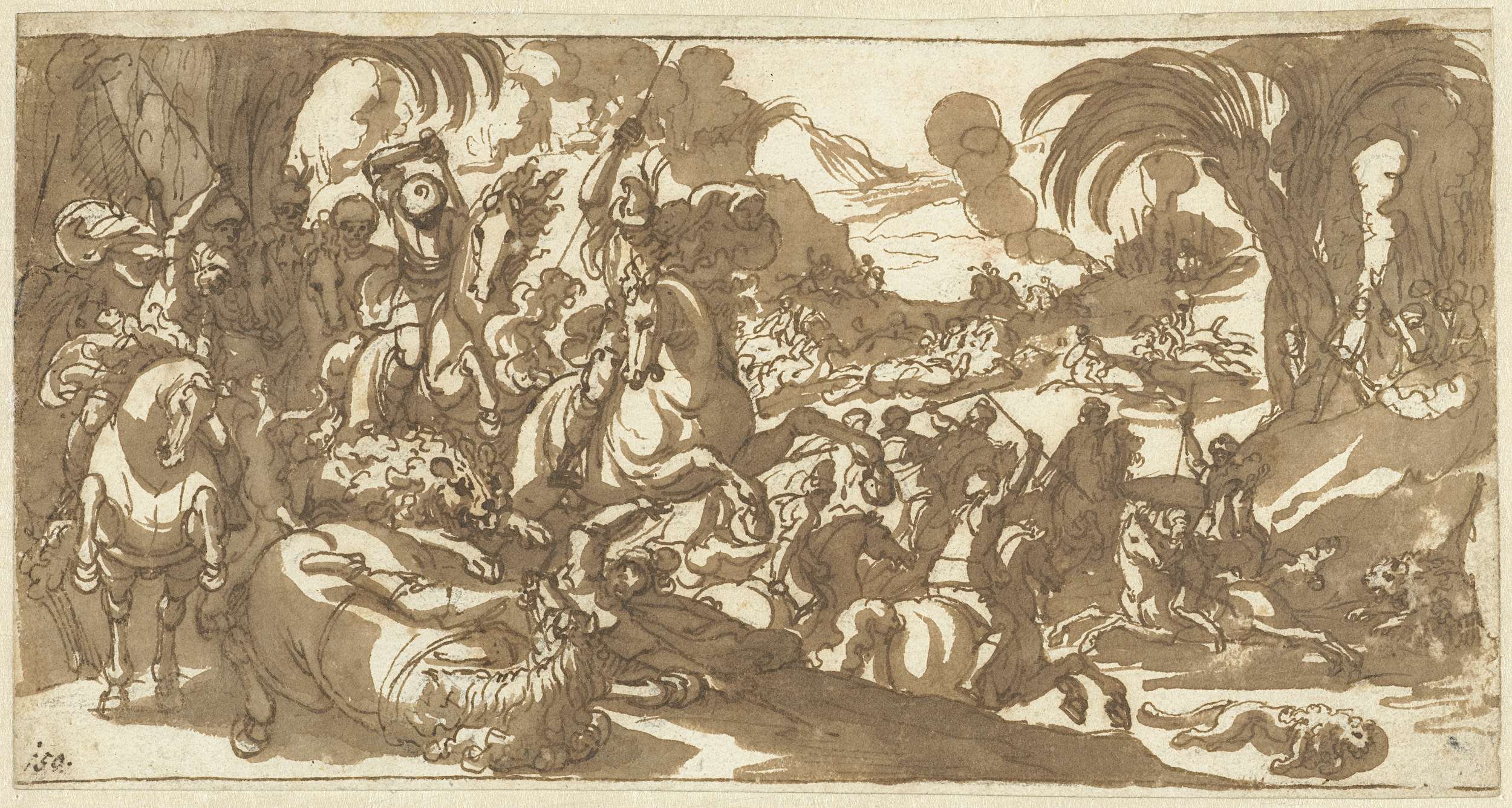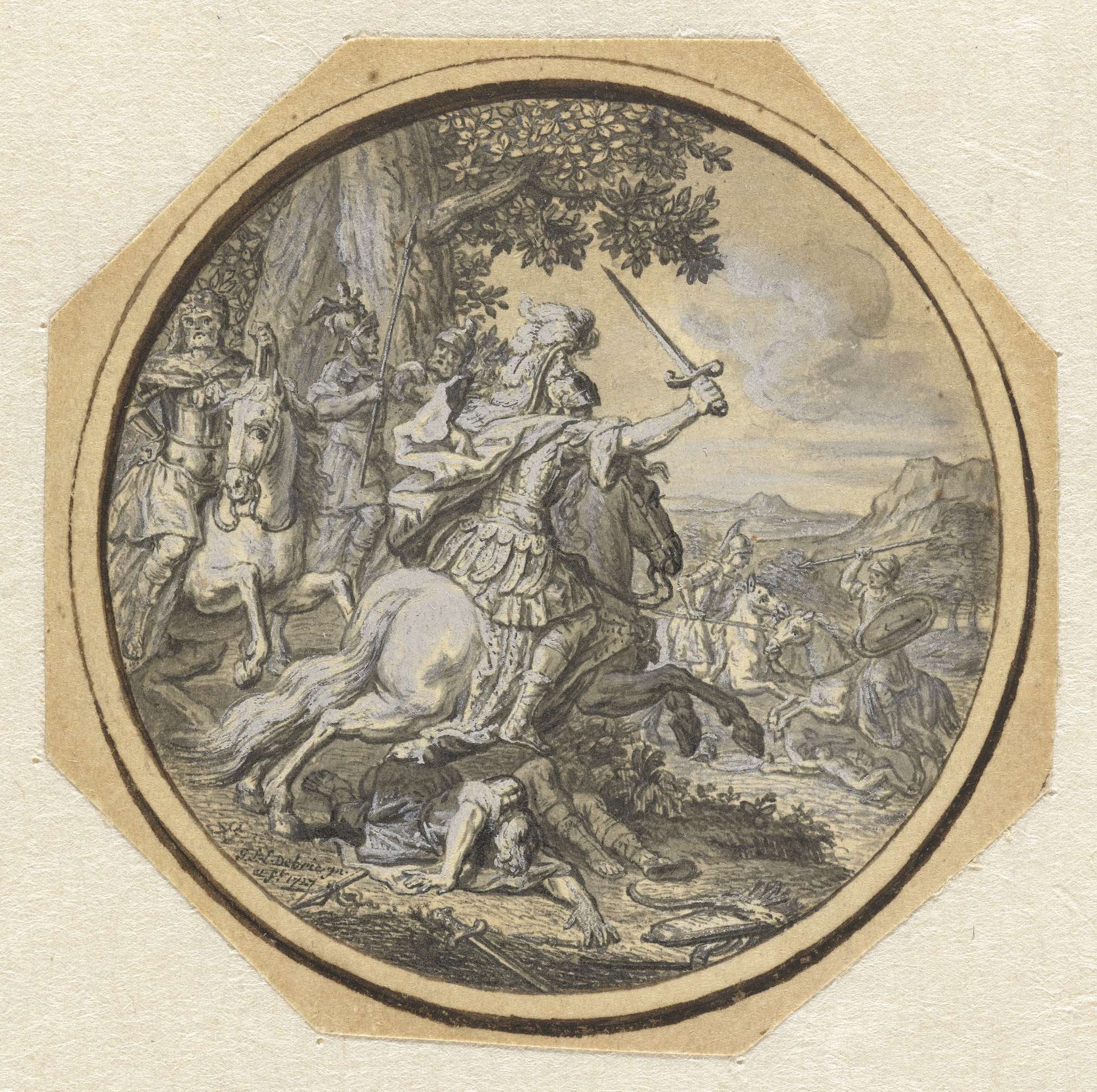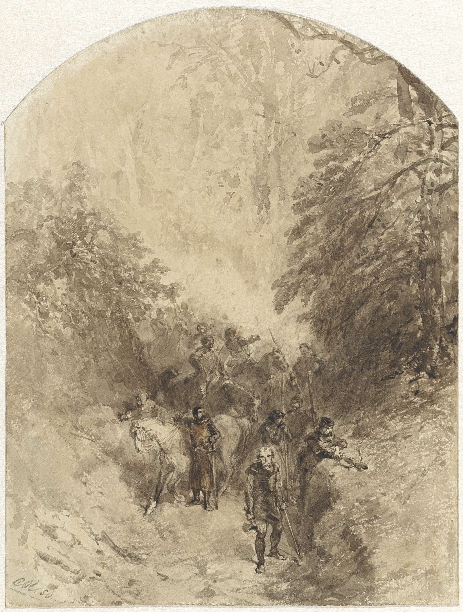 Krijgsvolk in een bos