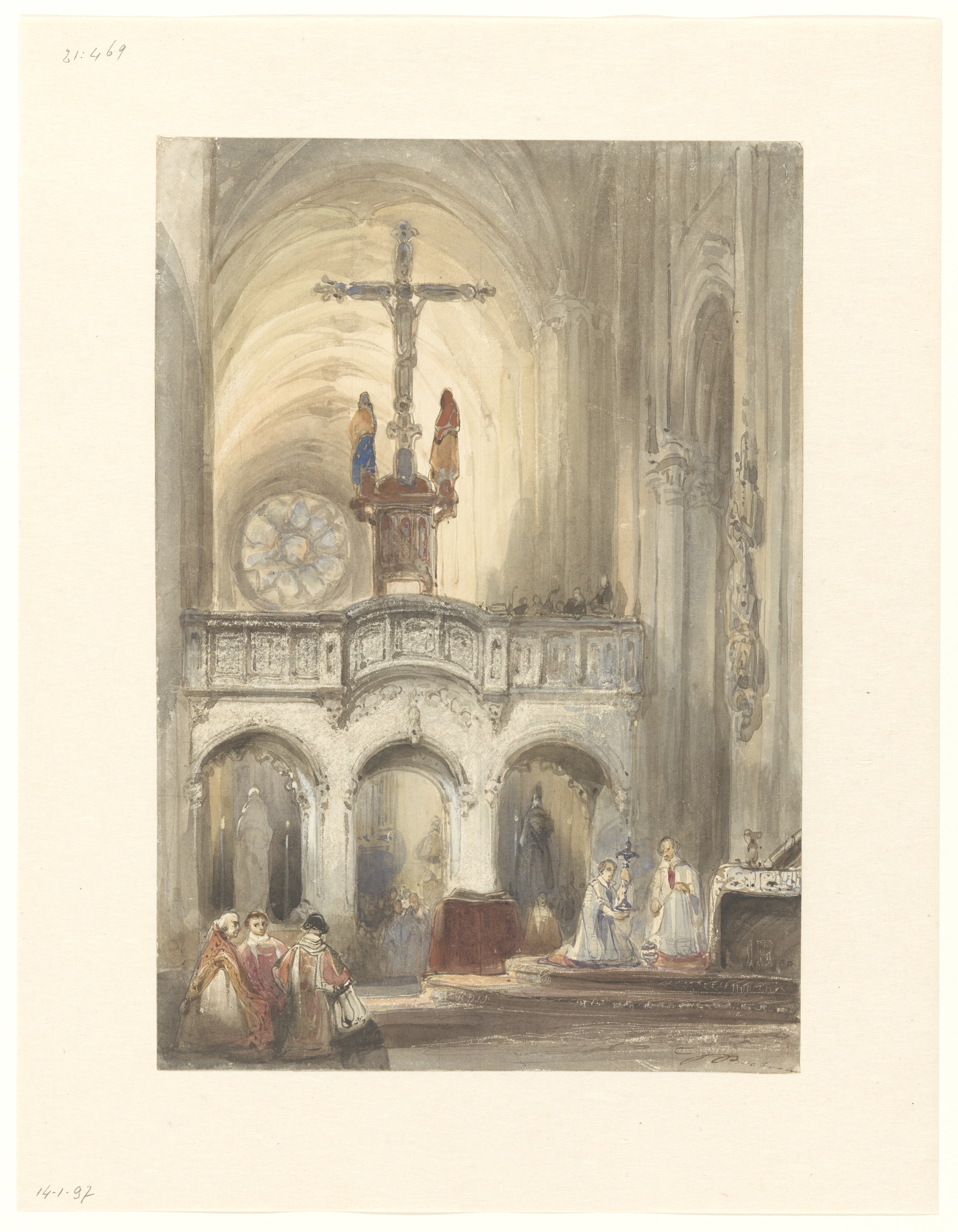 Kerkinterieur met mis