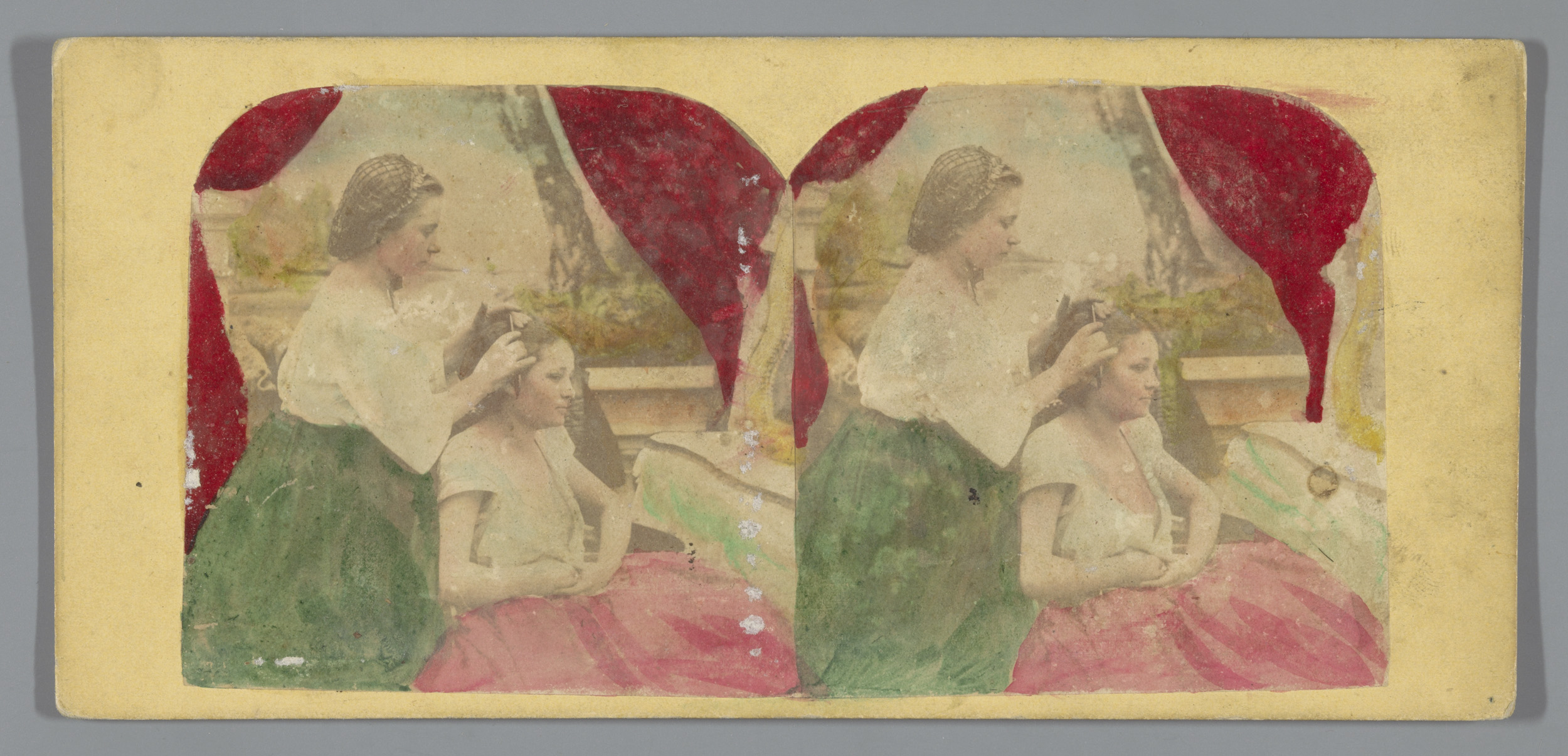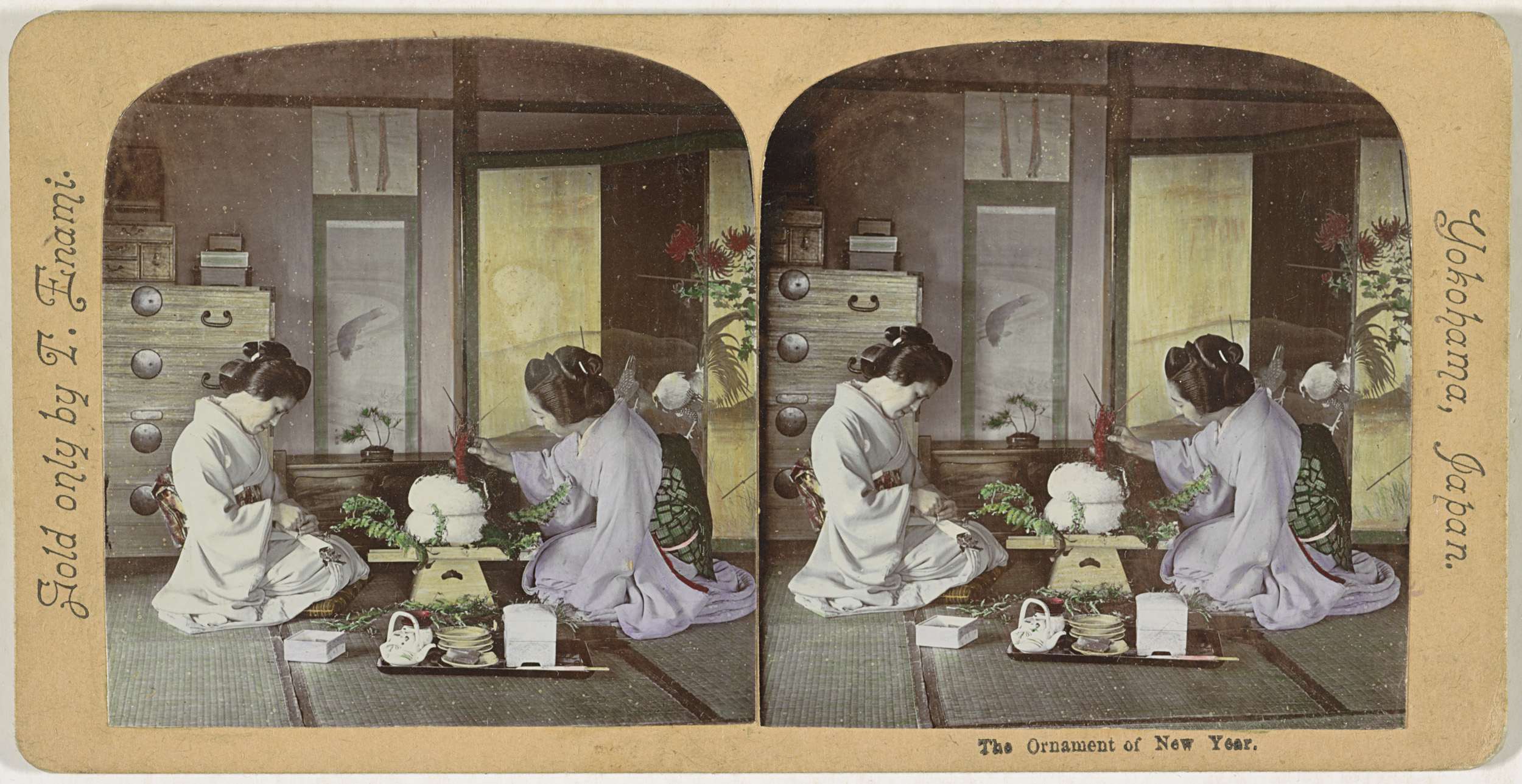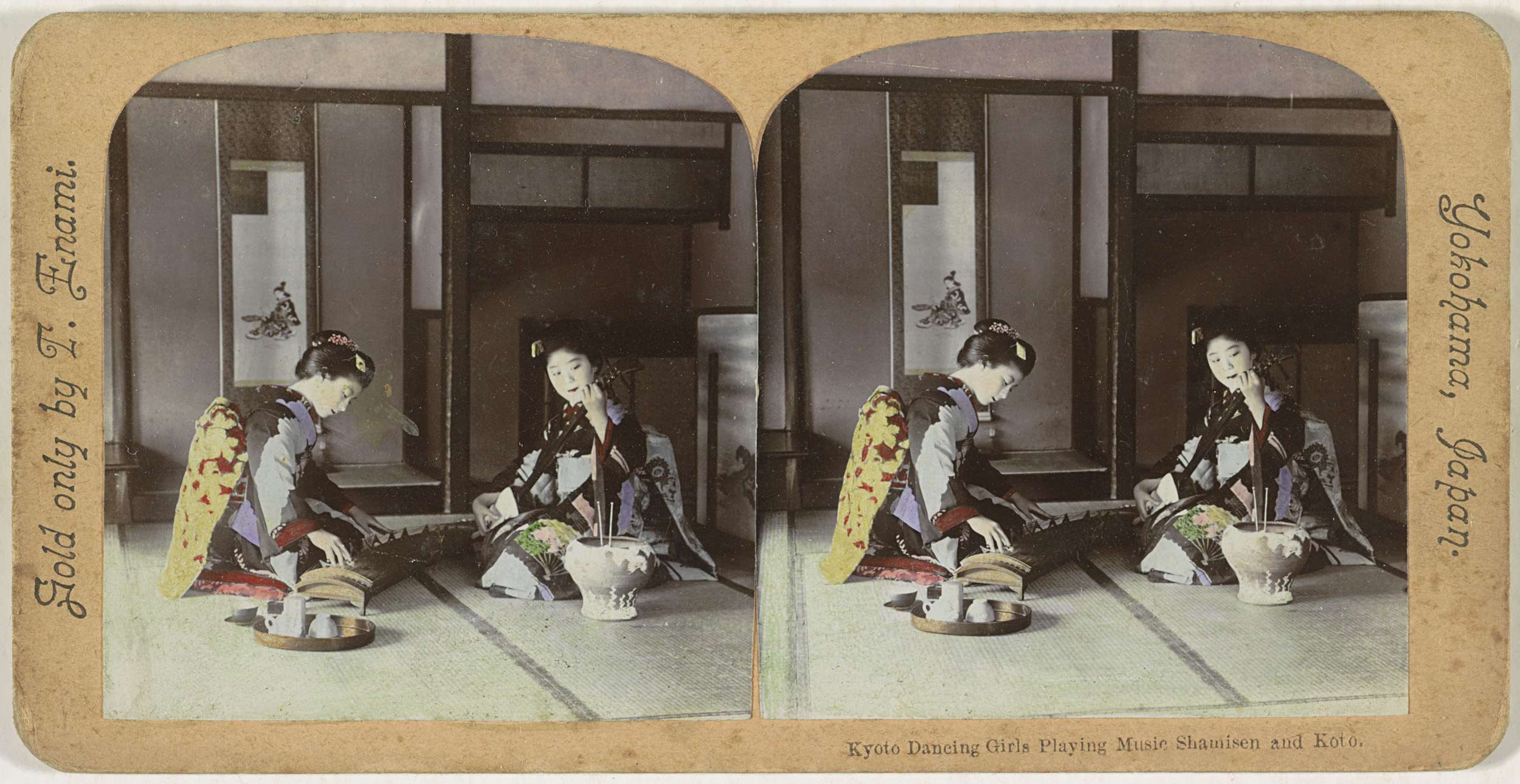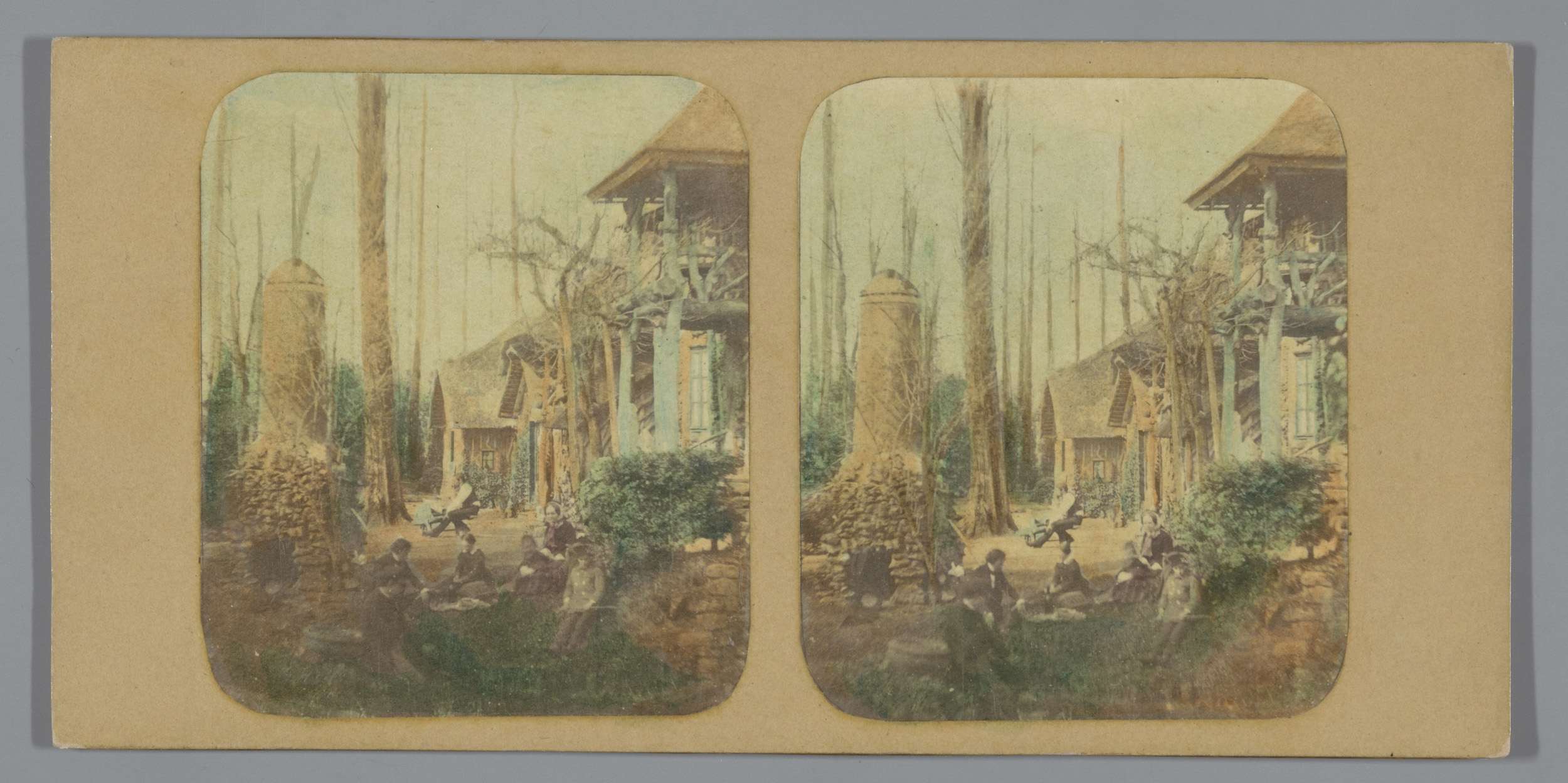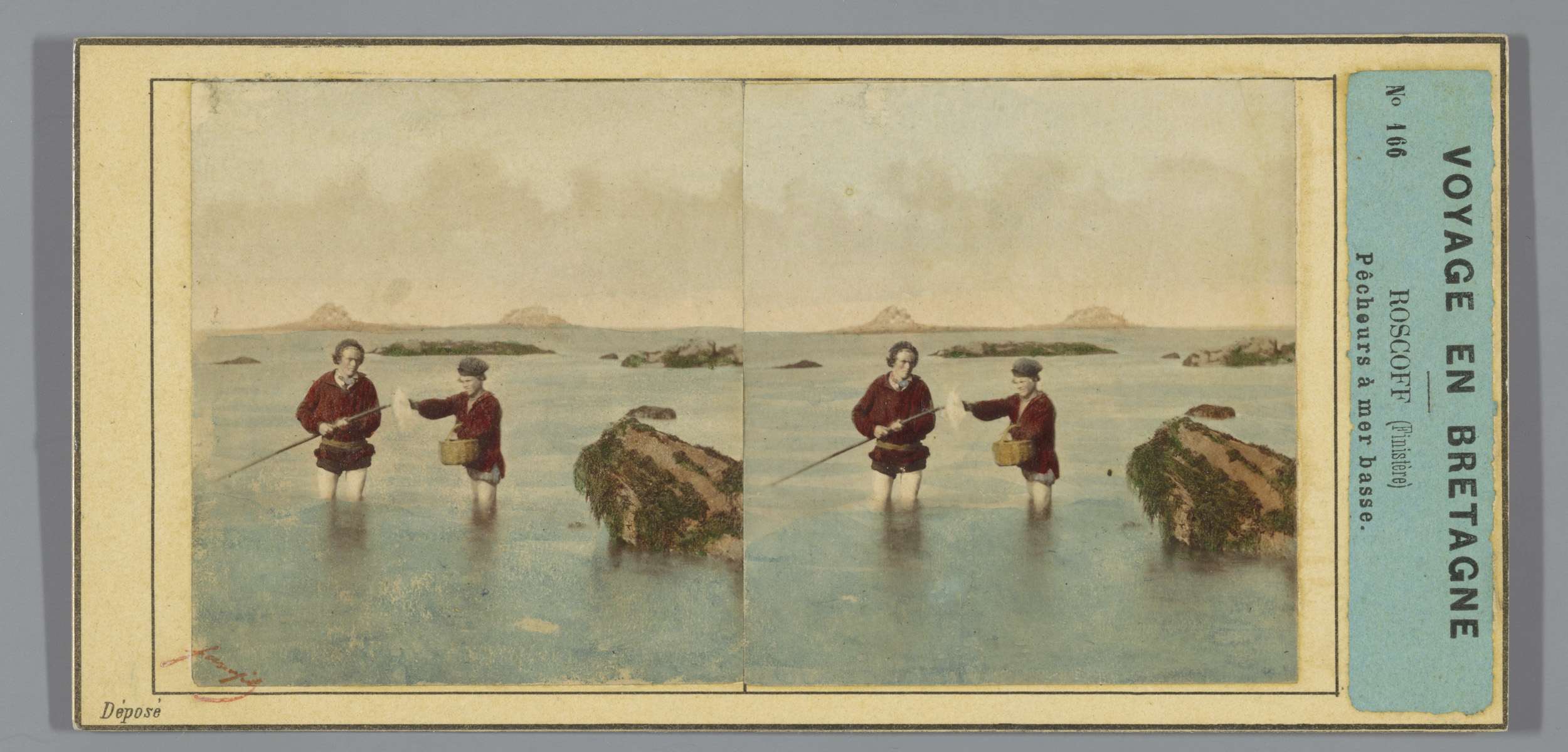 Koopvrouwen en wandelende paren in historisch kostuu...
