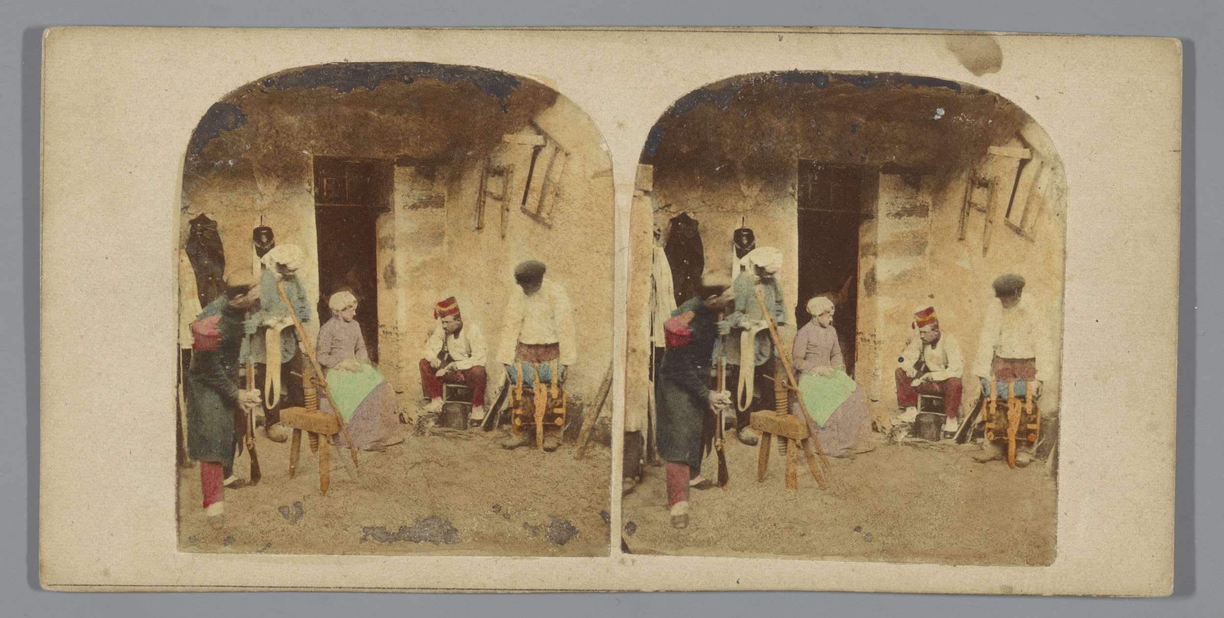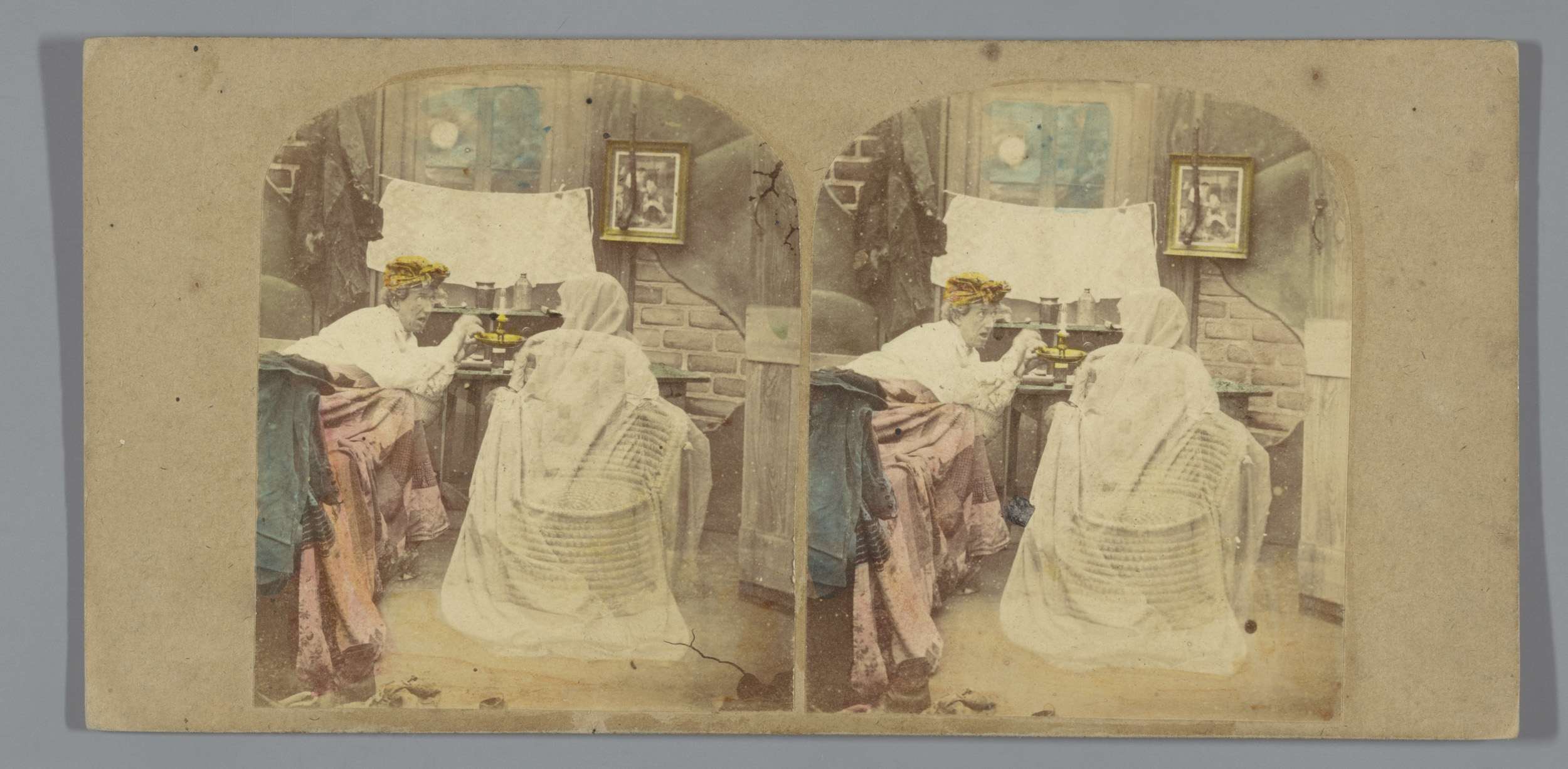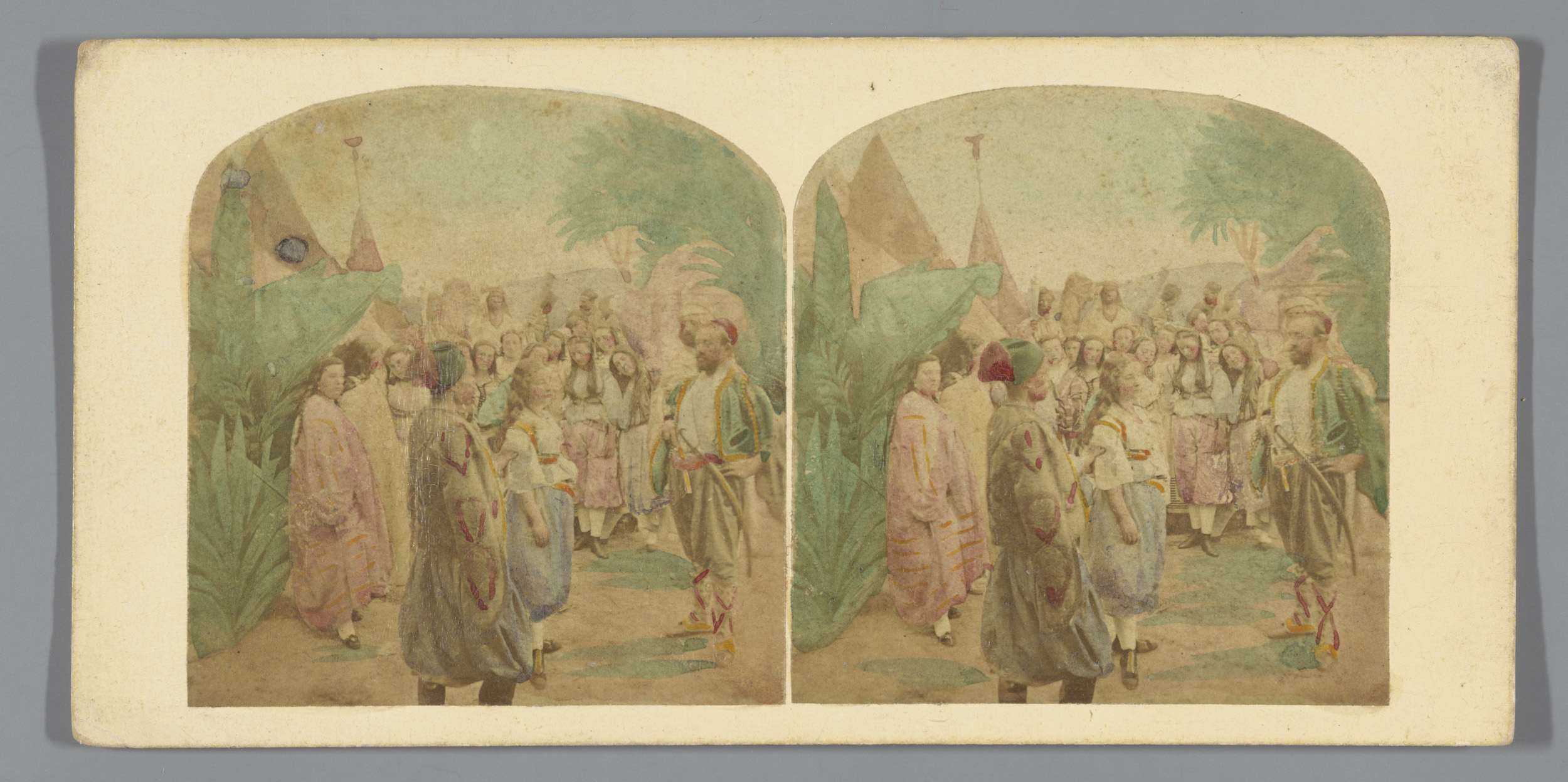 Oriëntaals tafereel met een aantal mensen rondom een...