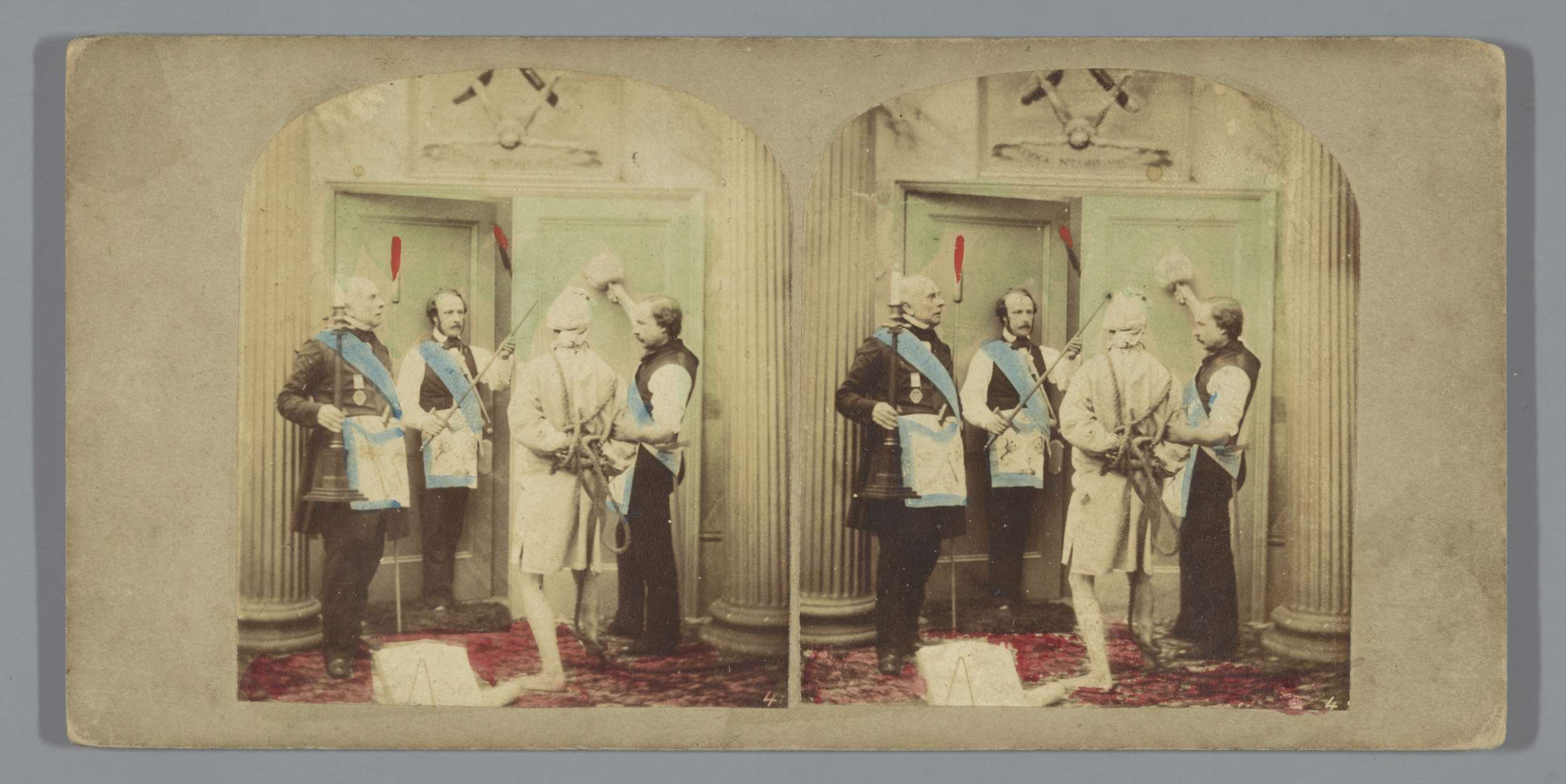 Inwijdingsritueel met drie vrijmetselaars en een geb...