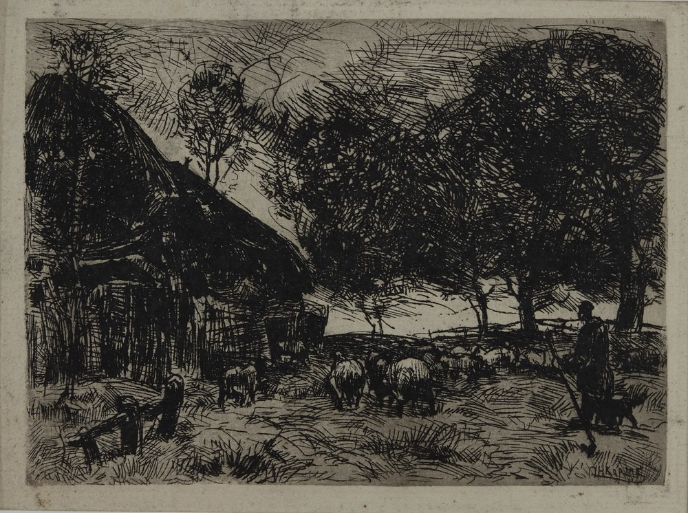 Tekening op papier met Oost-Indische inkt van Duiven...