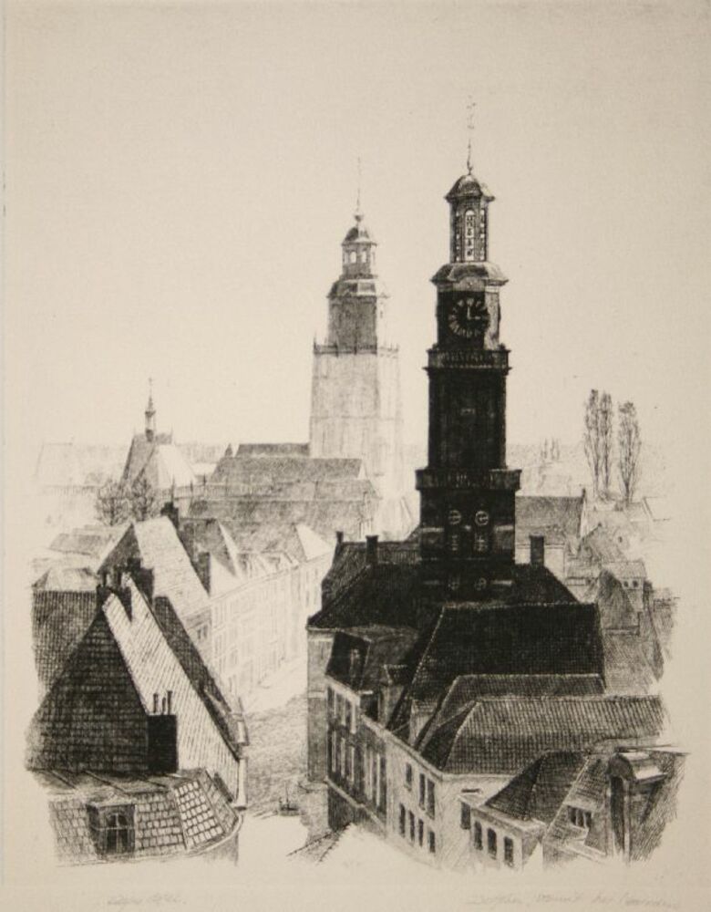 Houtgravure,voorstellende aan het veer te Culemborg,...