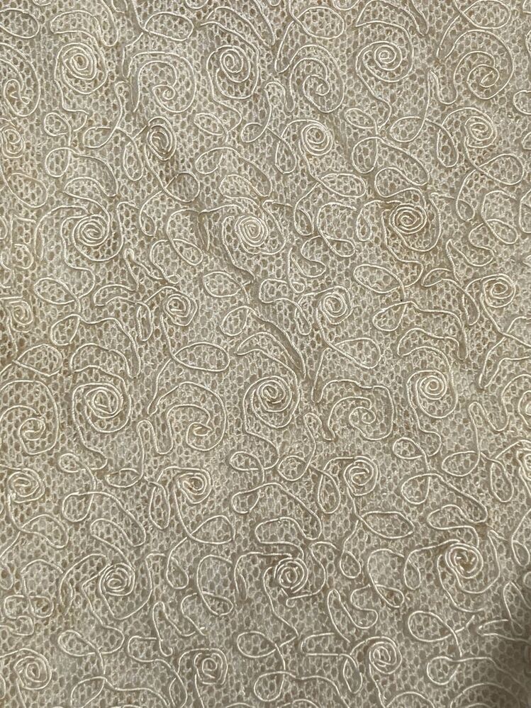 Fragment van zijde met opgenaaid draad in de vorm va...