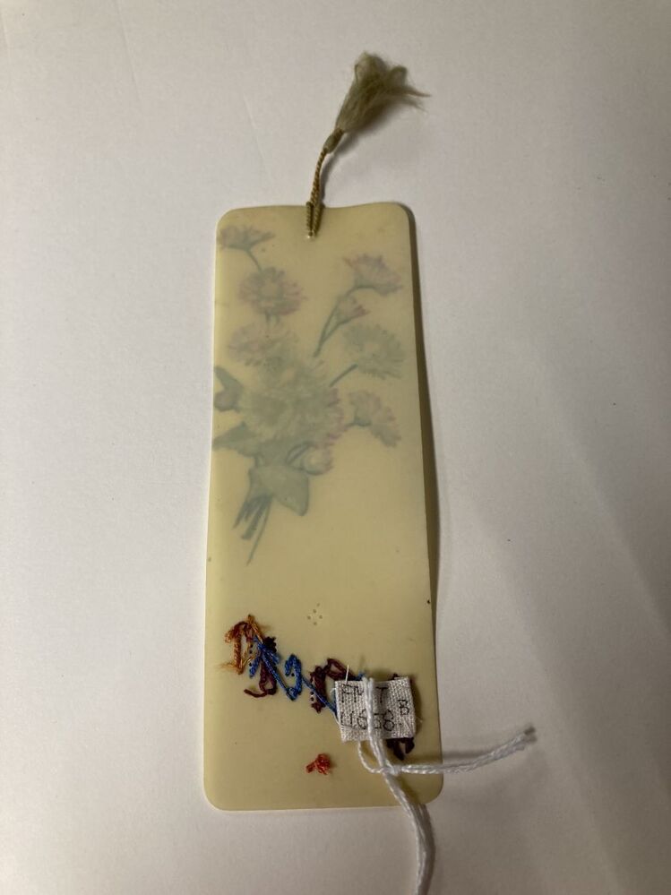 Boekenlegger van celluloid, beschilderd met bloemen,...