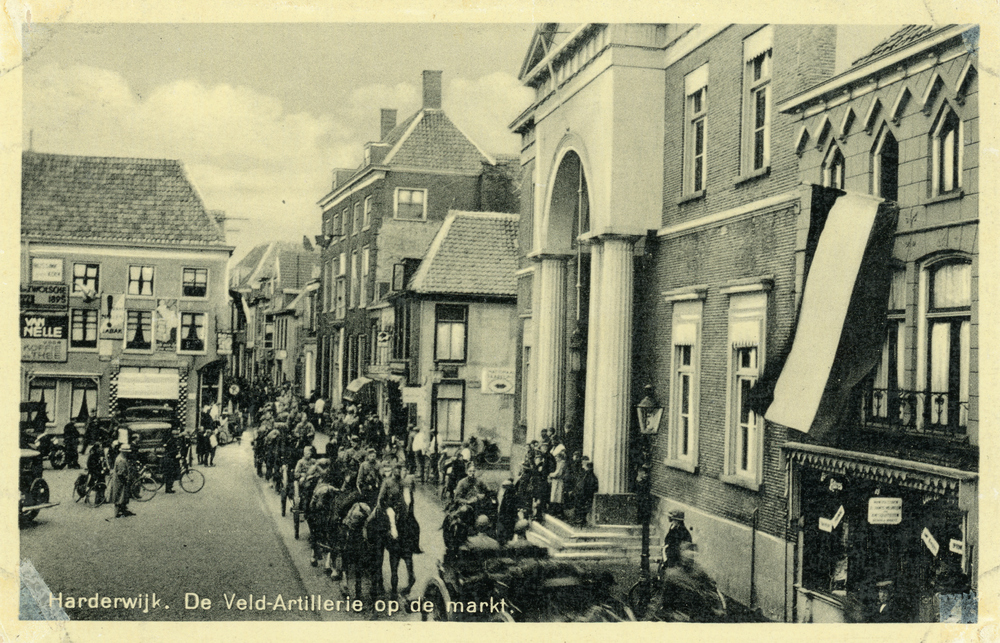 Prentbriefkaart, getiteld 'Harderwijk. De Veld-Artil...