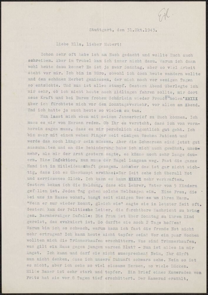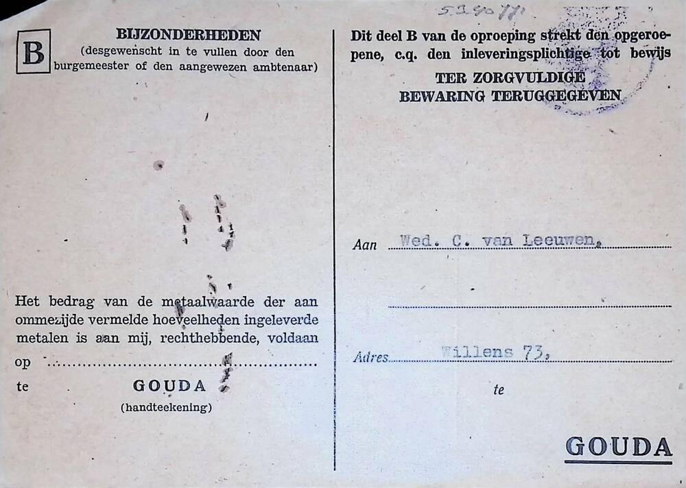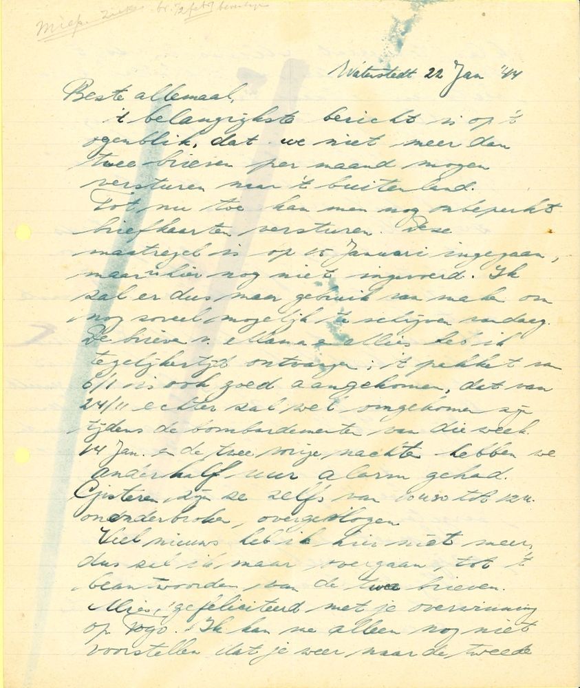 Brief in enveloppe. 8 augustus 1944. Aan den heer G....