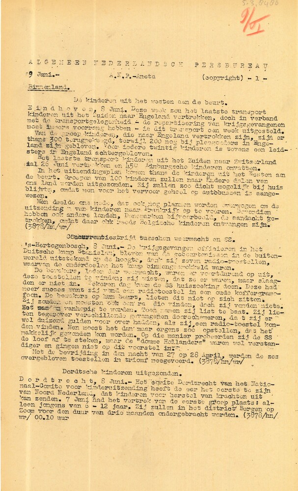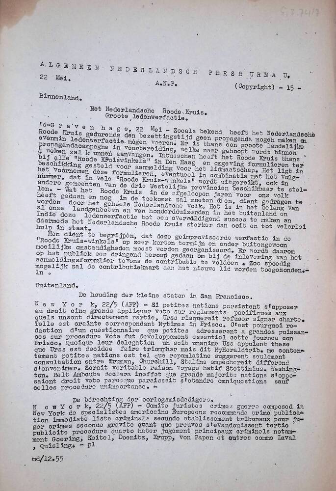 Algemeen Nederlandsch Persbureau, mededelingen, 22 m...