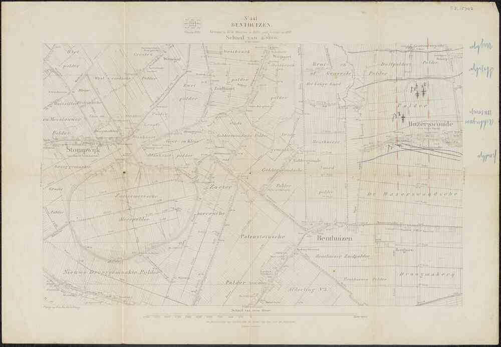 Stafkaart van No 441 Benthuizen, verkend in 1874, he...
