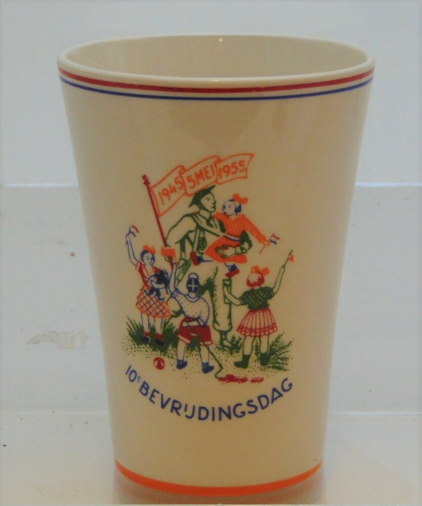 Beker met daarop de tekst : 10e Bevrijdingsdag 1945 ...