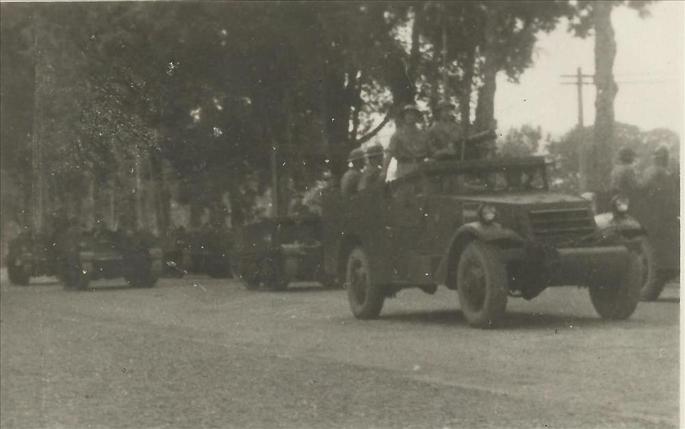 Ned. Indië na WO 2; colonne, militair voertuig
