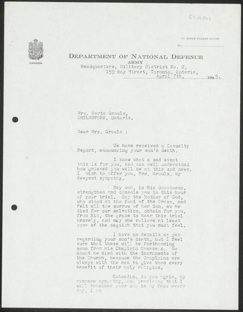 Brief van het Department of National Service (Canada)