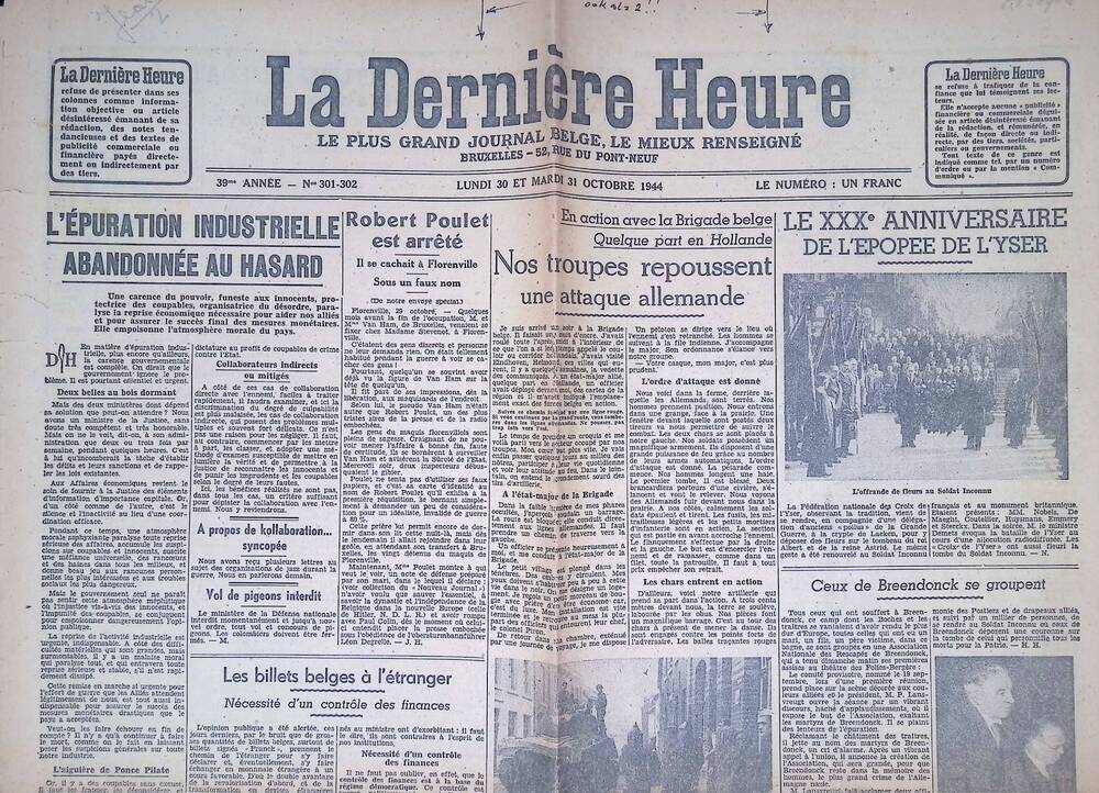 La Derniere Heure maandag en dinsdag 30 en 31 oktobe...