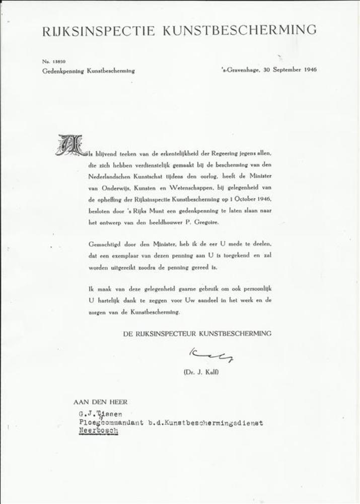 Rijksinspectie Kunstbescherming - Gedenkpenning Kuns...