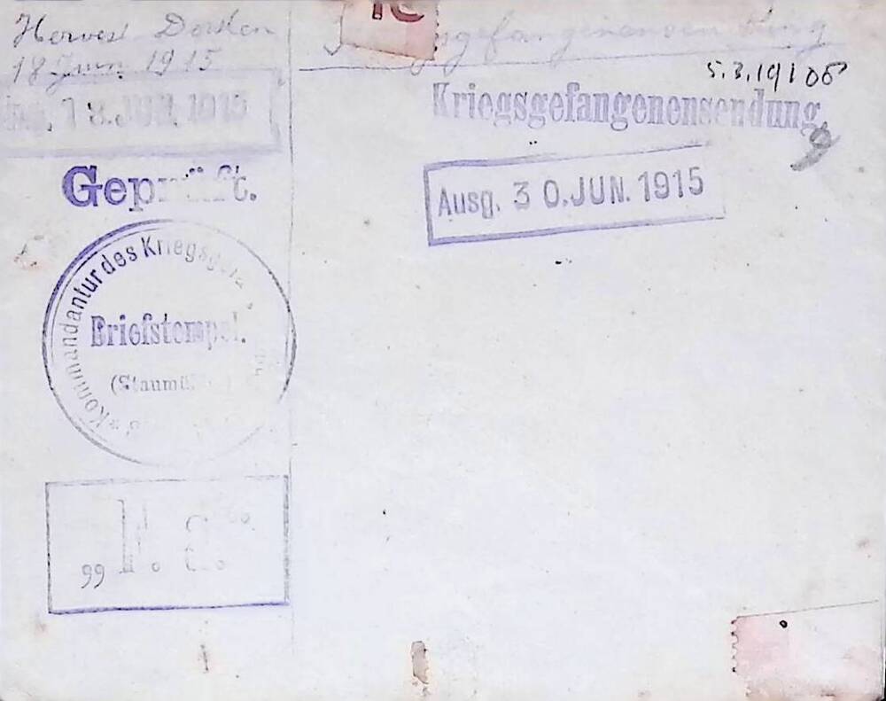 Envelop met stempel "Kriegsgefangenensendung Geprüft"