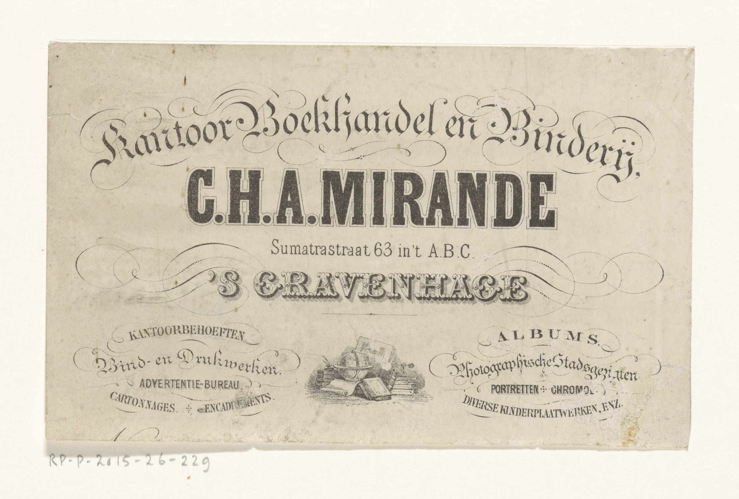 Visitekaartje van drukkerij en boekhandel De Malande...