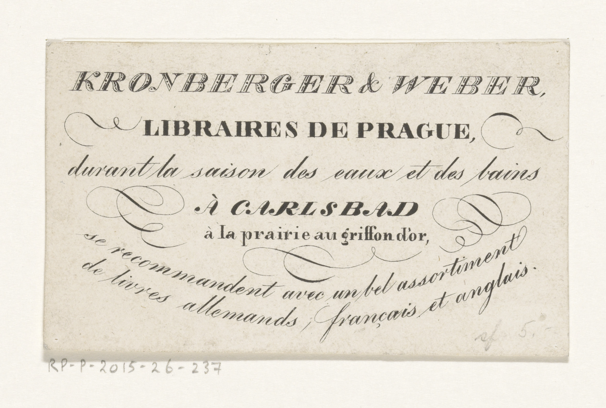 Visitekaartje van prenthandelaar Theo Mahler te Parijs