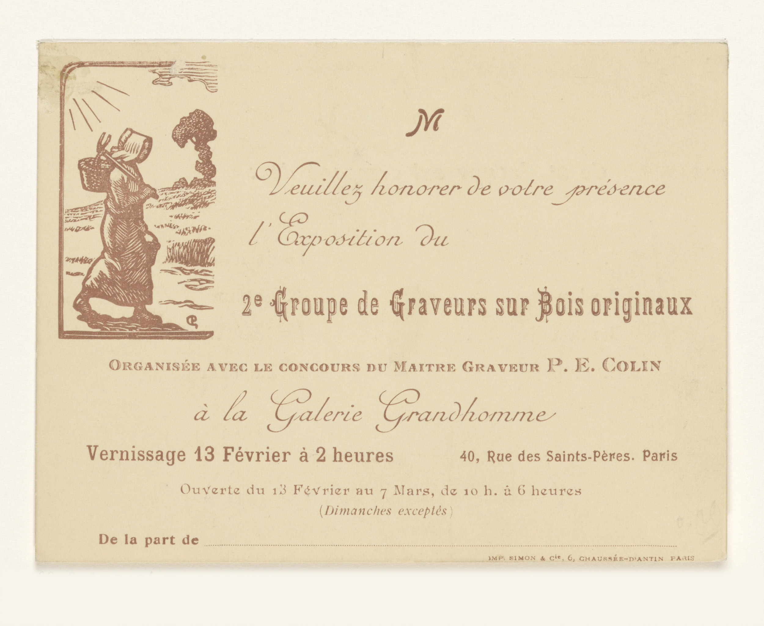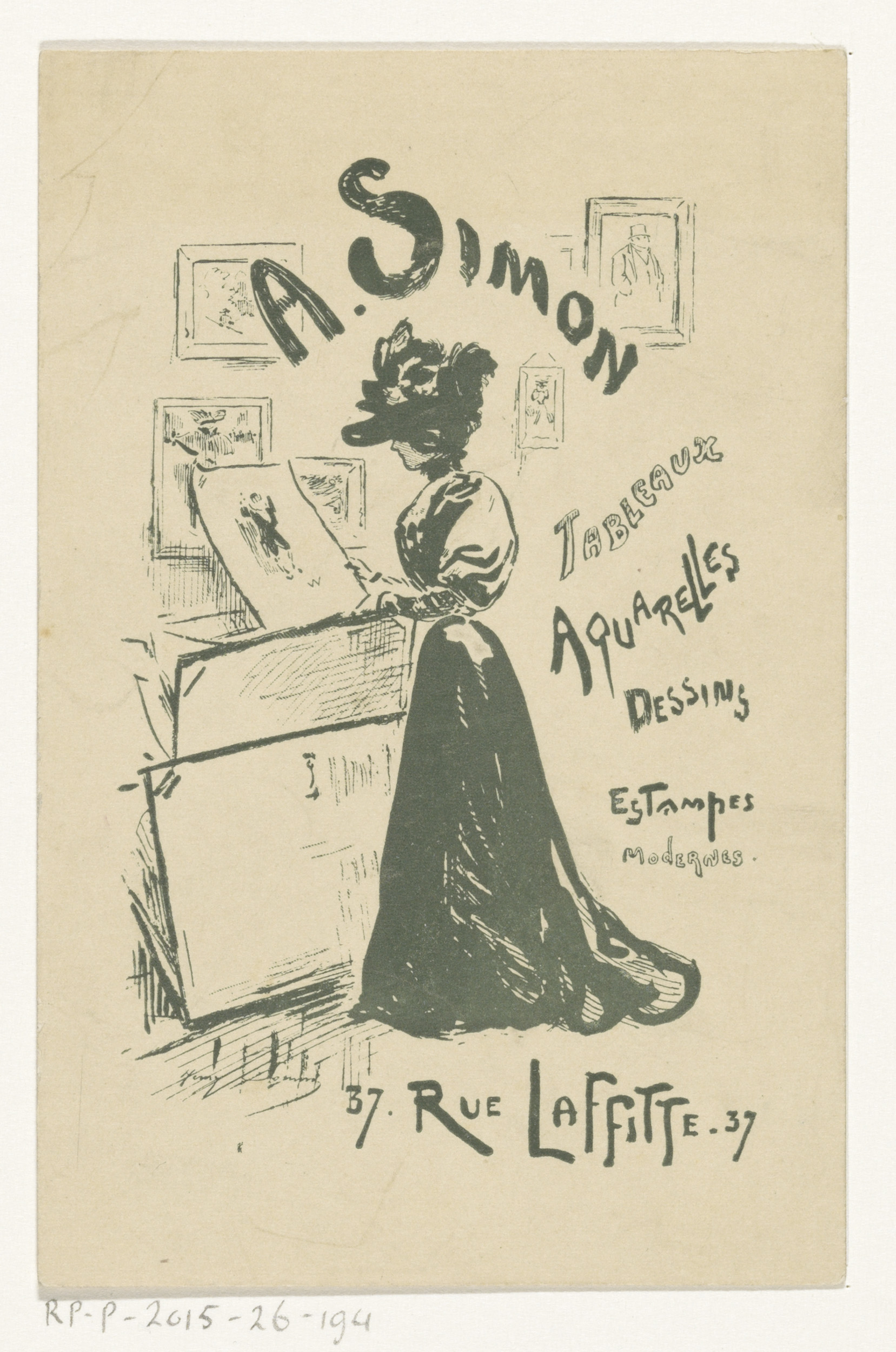 Visitekaartje van kunsthandel A. Simon te Parijs