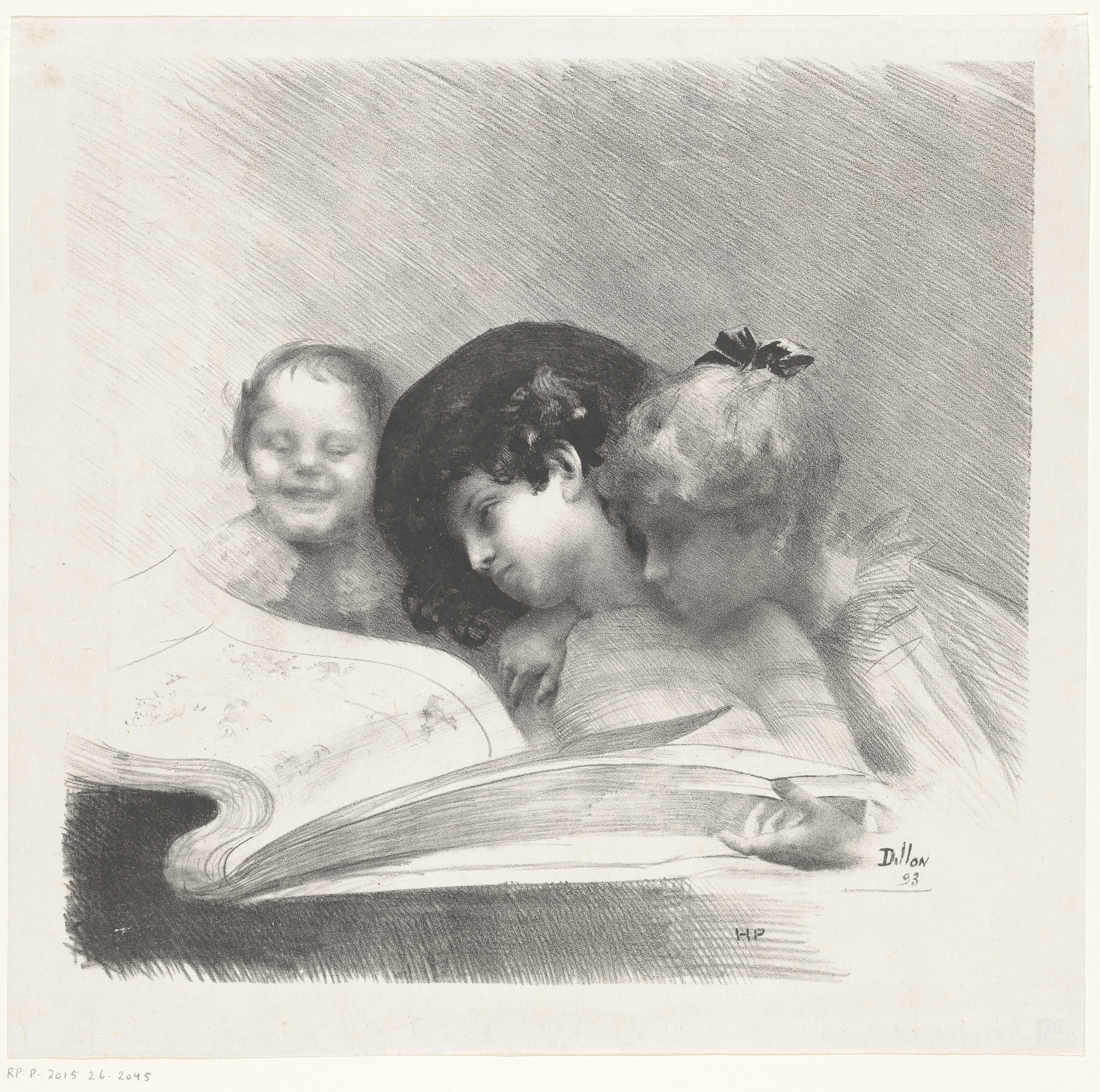 Drie meisjes bekijken een prentalbum
