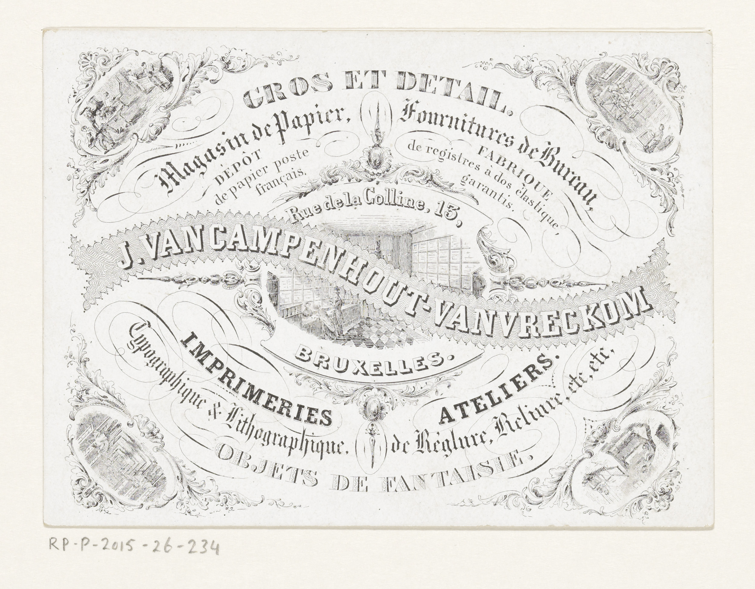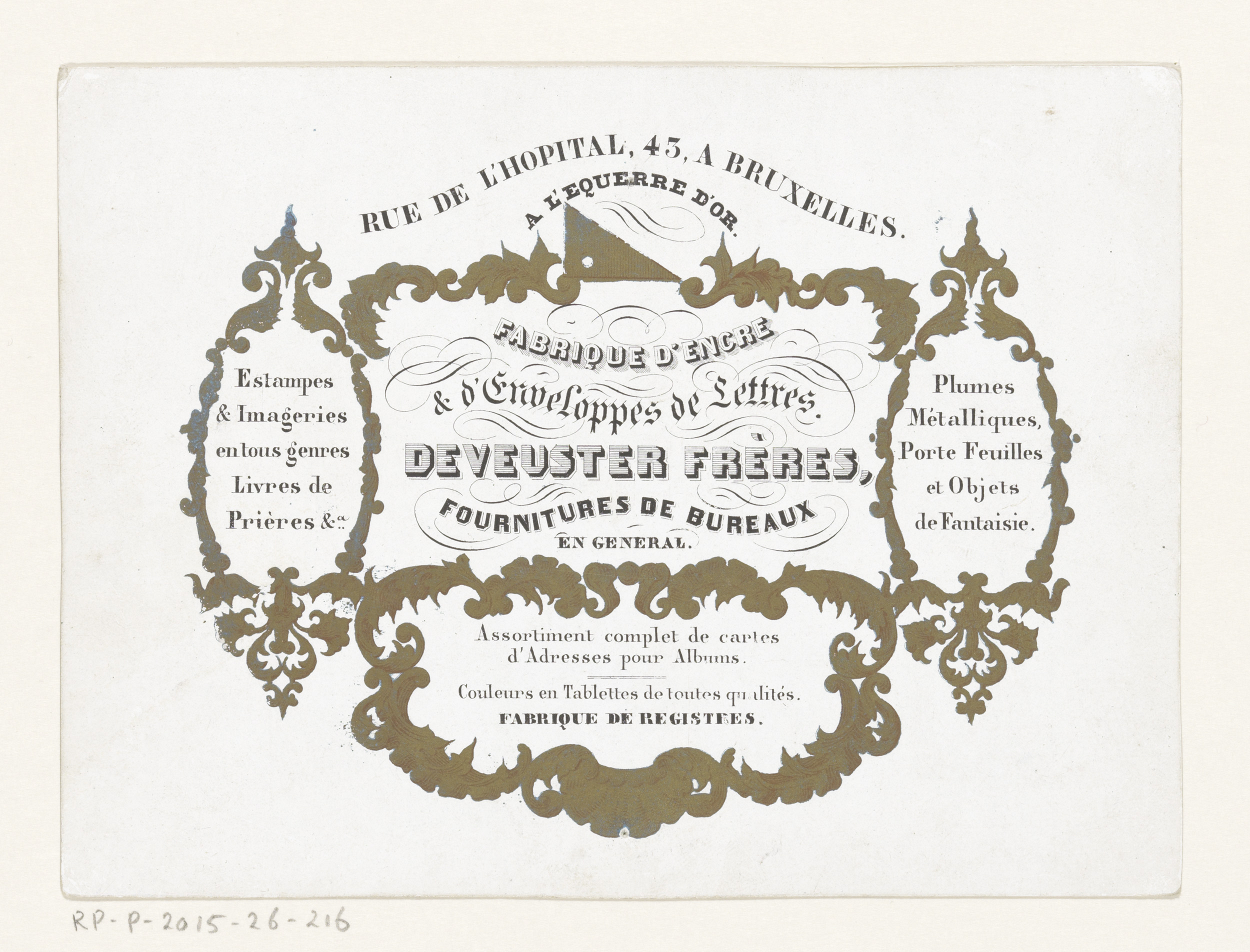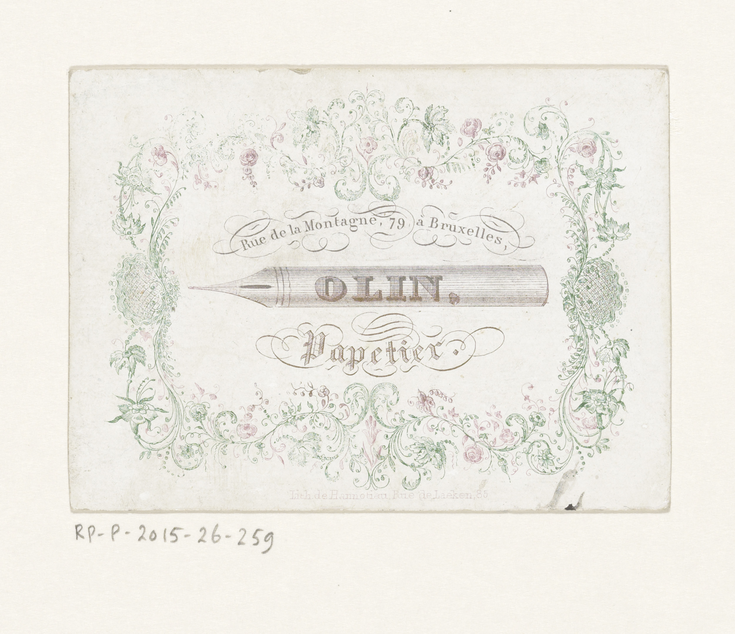 Visitekaartje van drukkerij Augustin Bombeke te Brussel