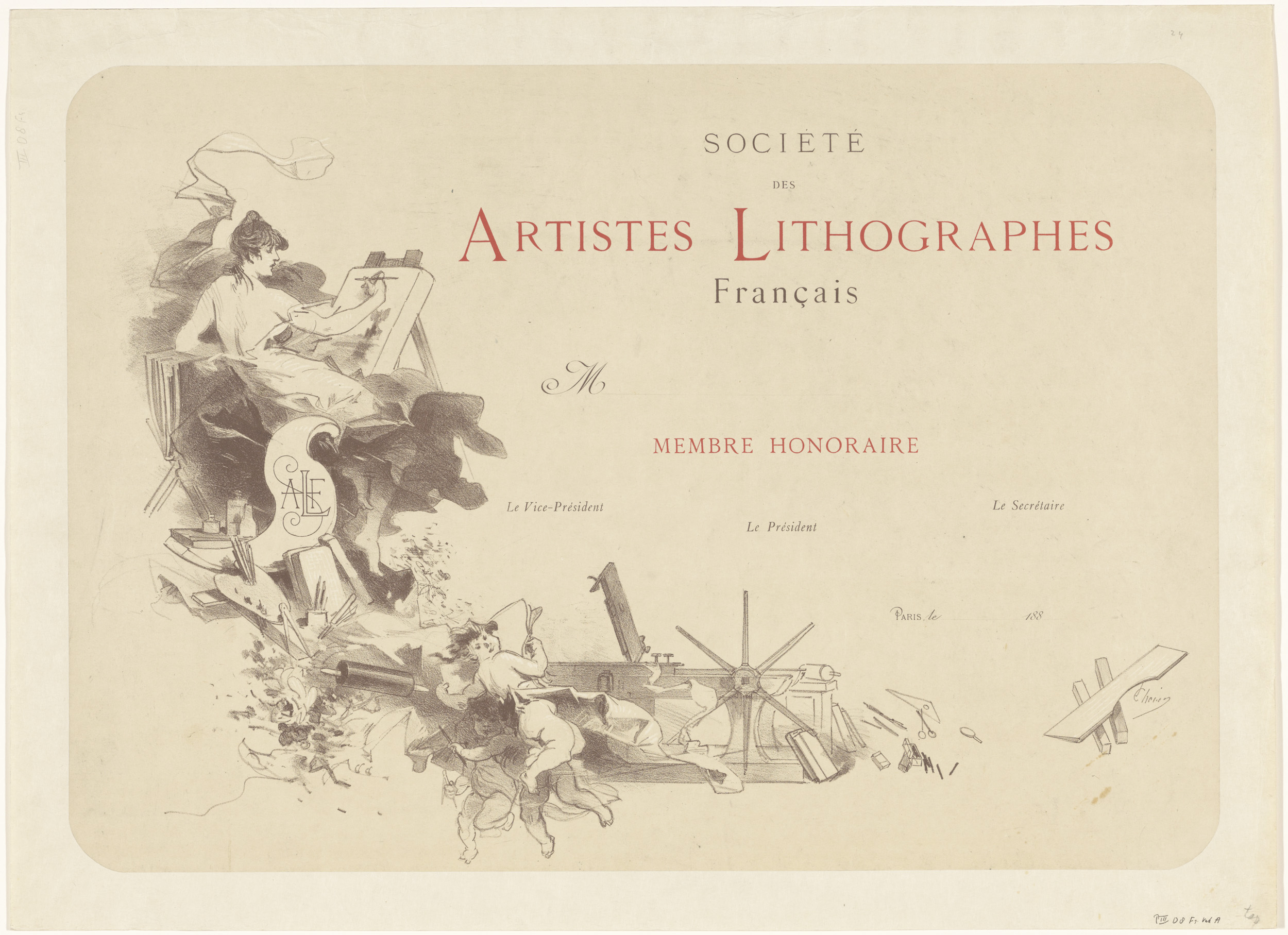 Oorkonde uitgereikt door de Société des Artistes Lit...