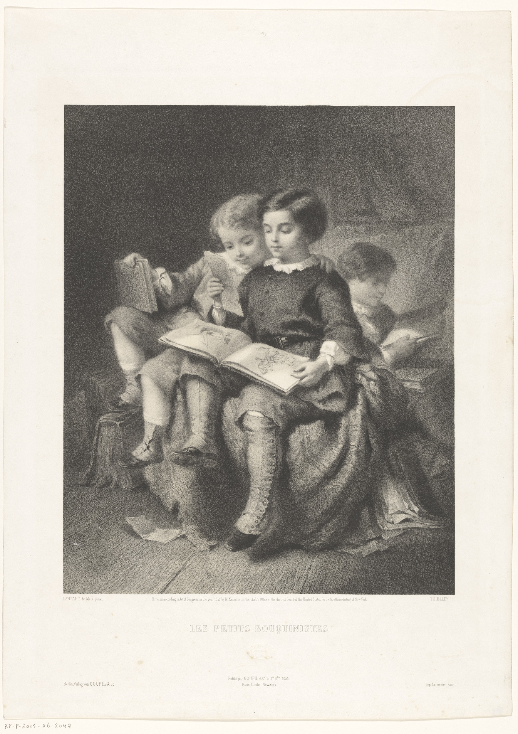 Drie jongens met boeken en een prentalbum