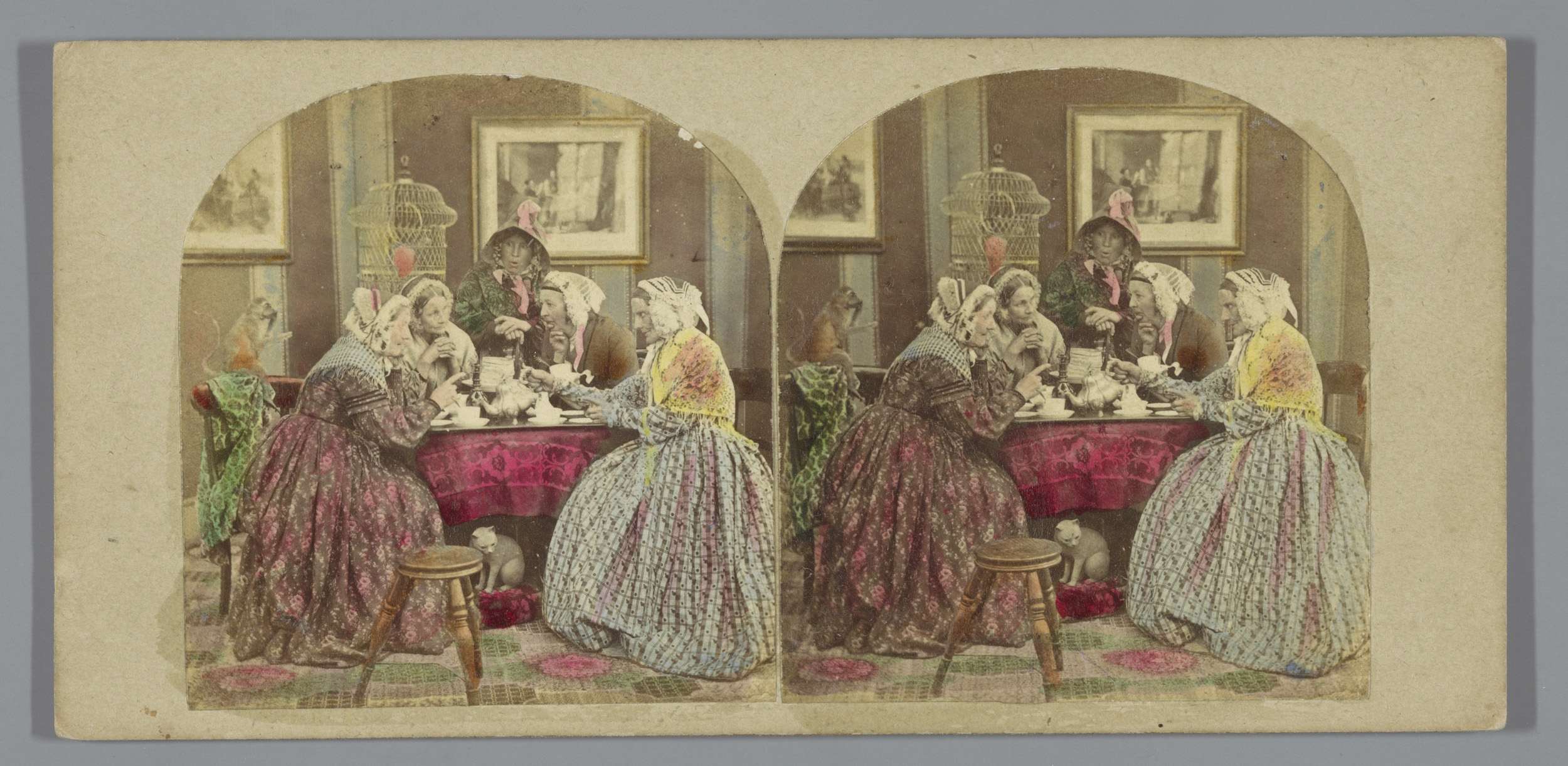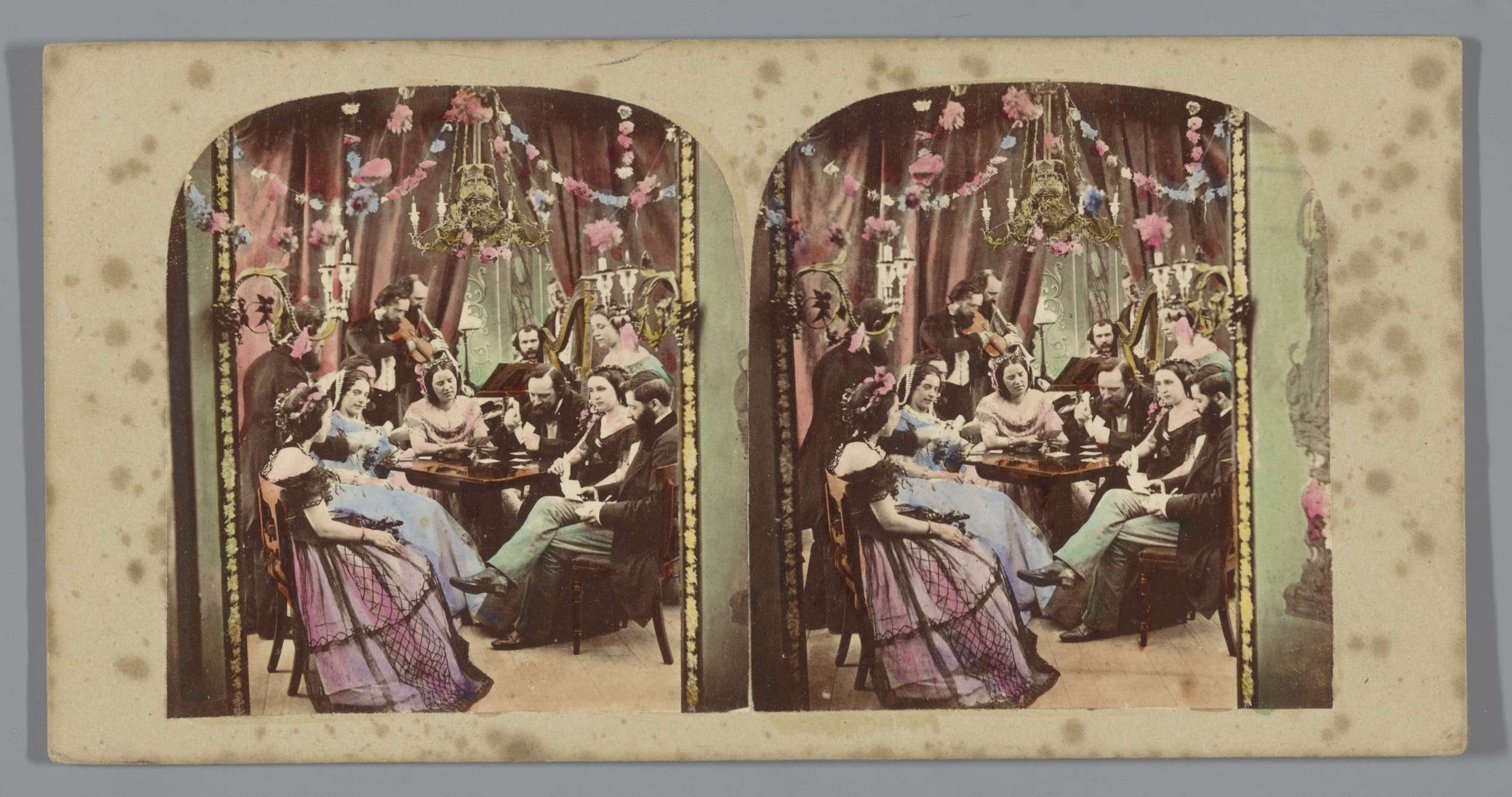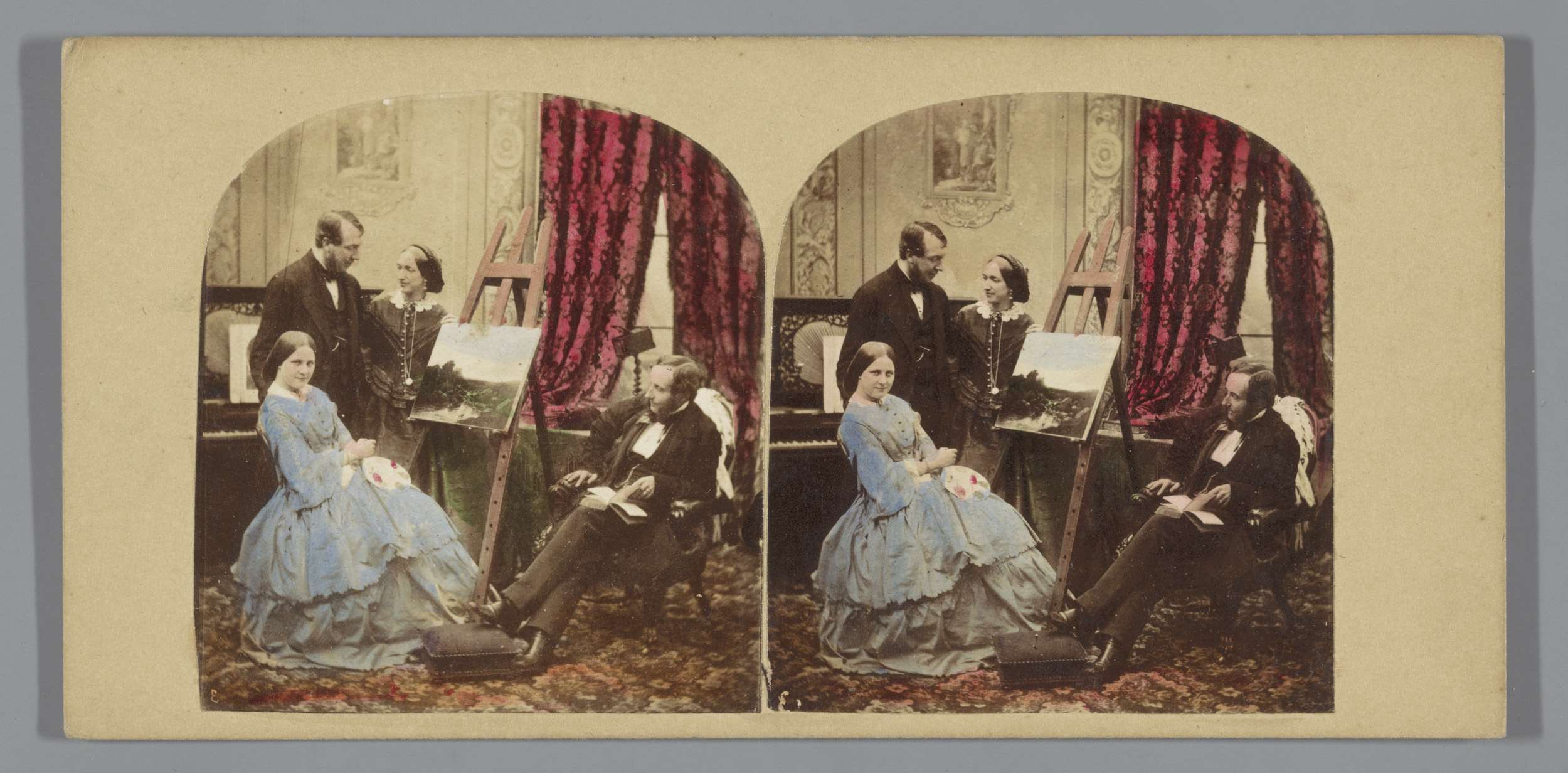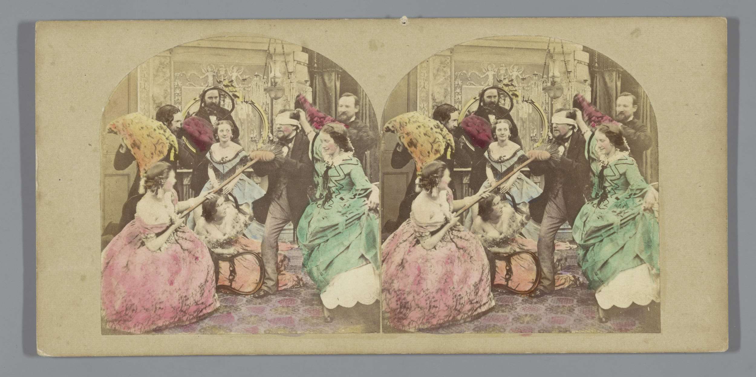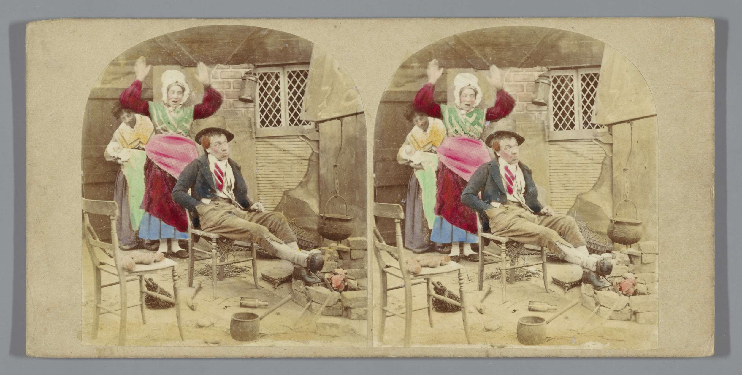 Tafereel in een huiskamer met mogelijk een stereosco...