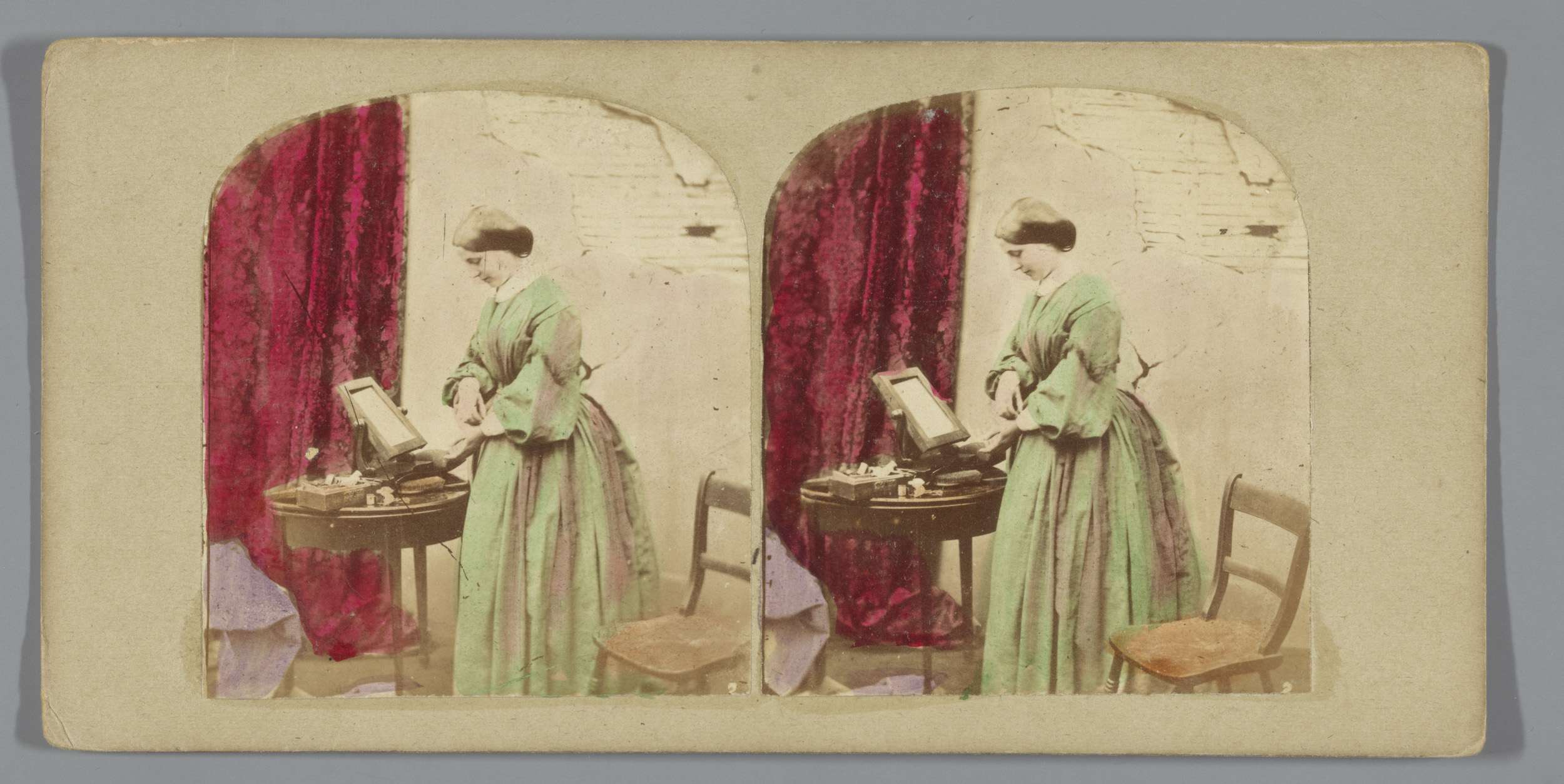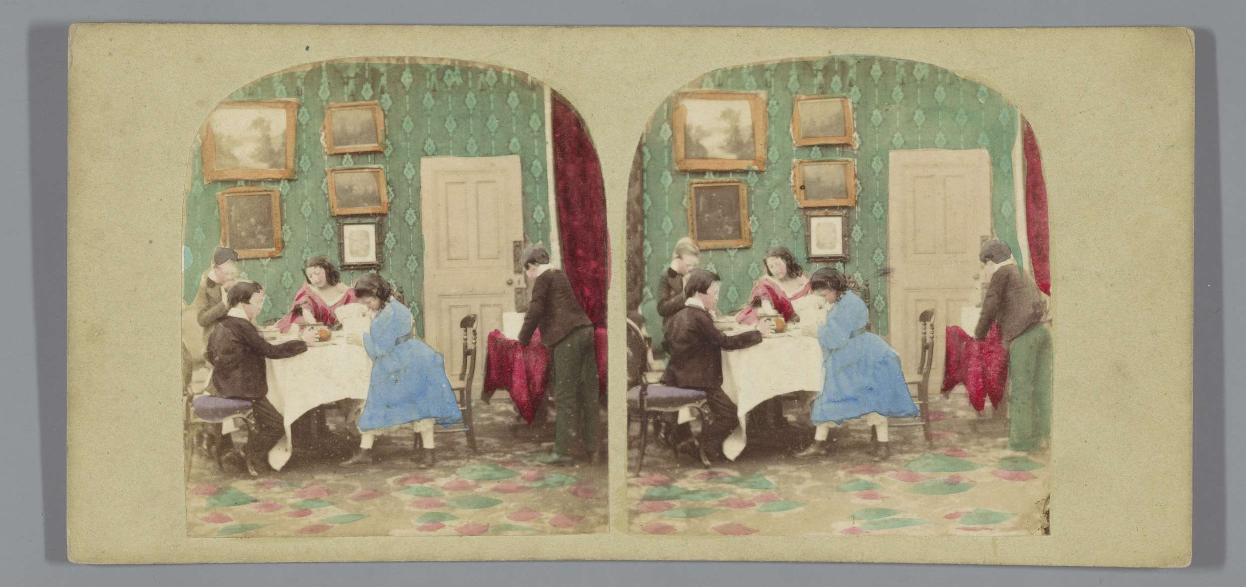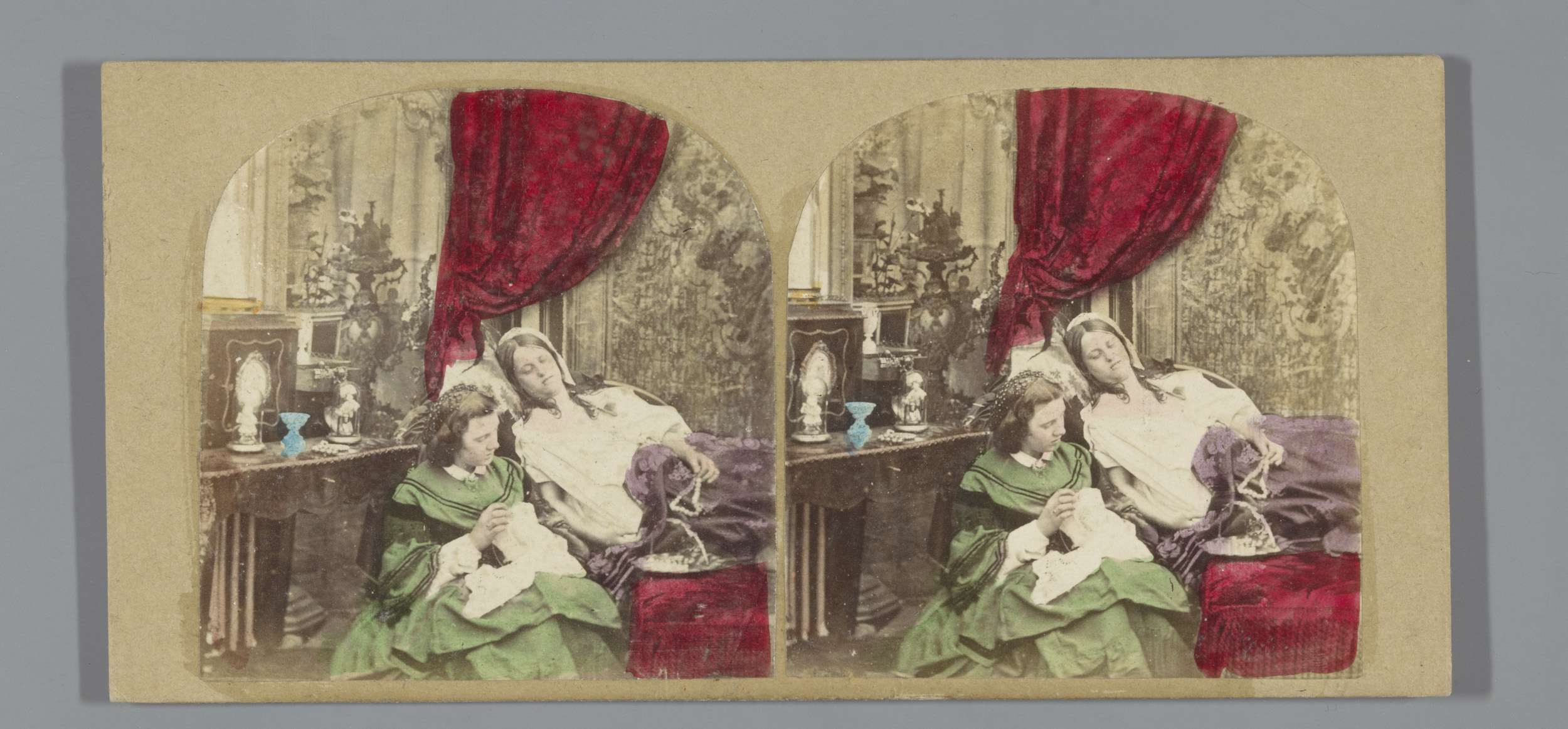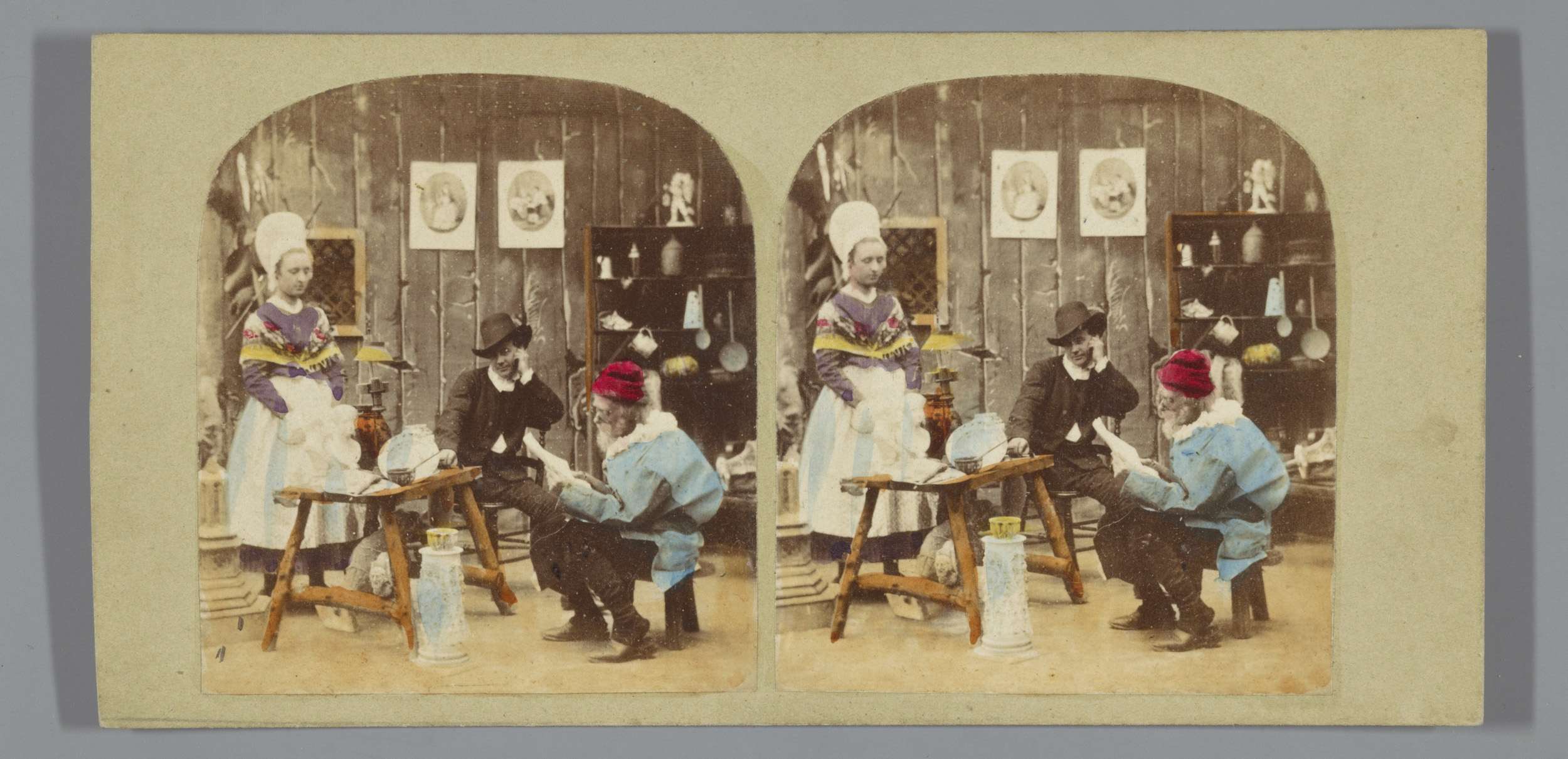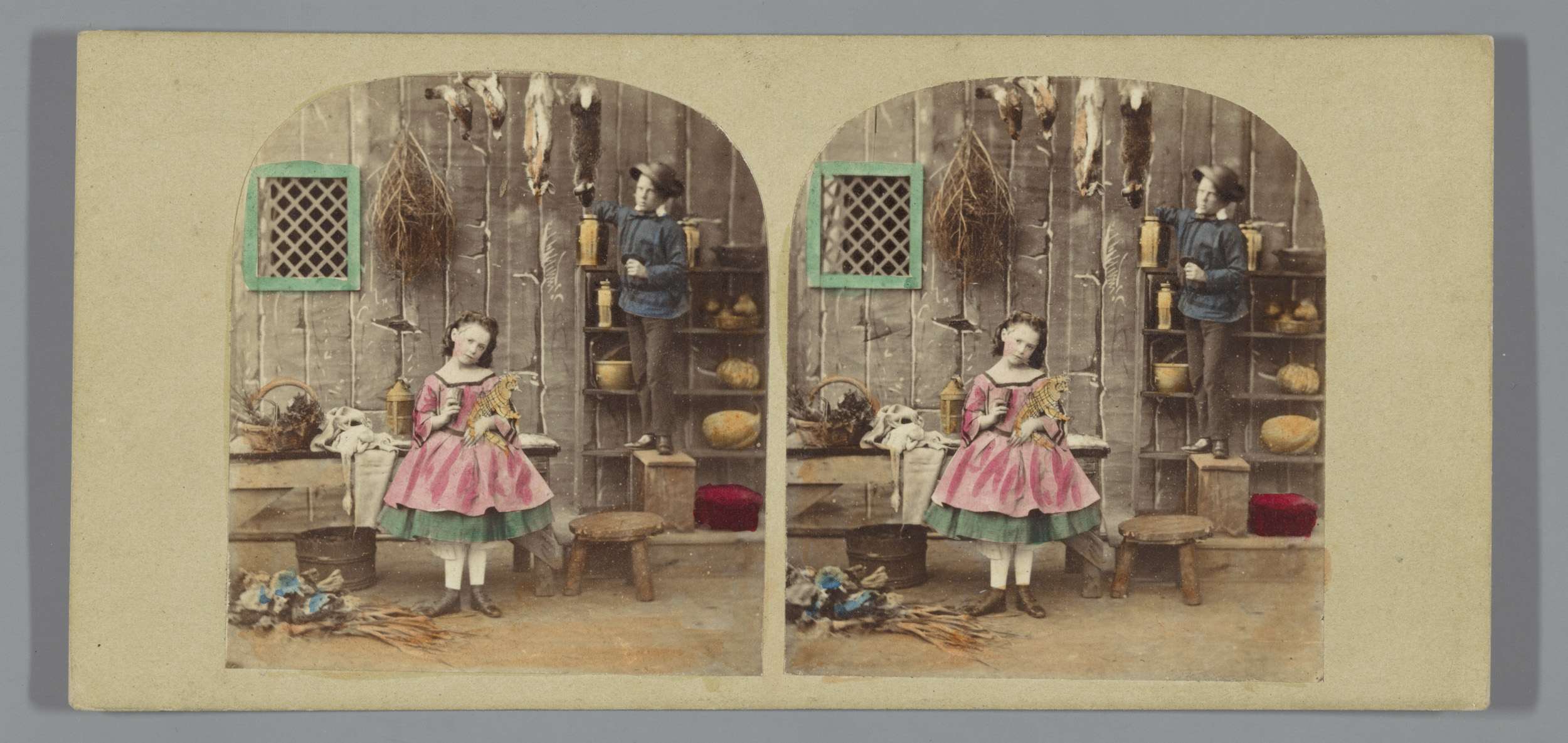 Tafereel in een huiskamer met mogelijk een stereosco...