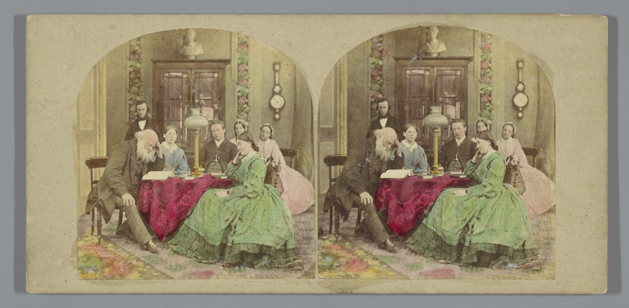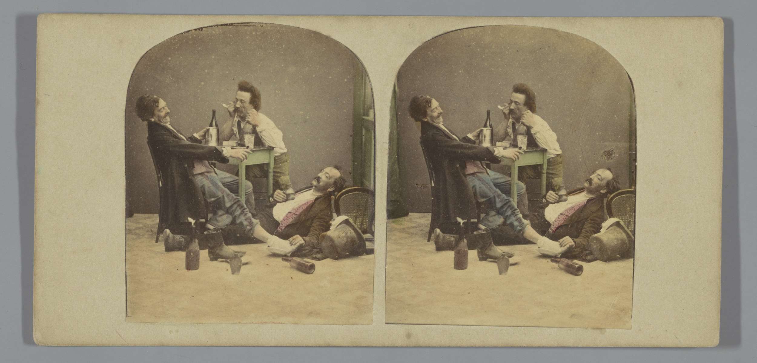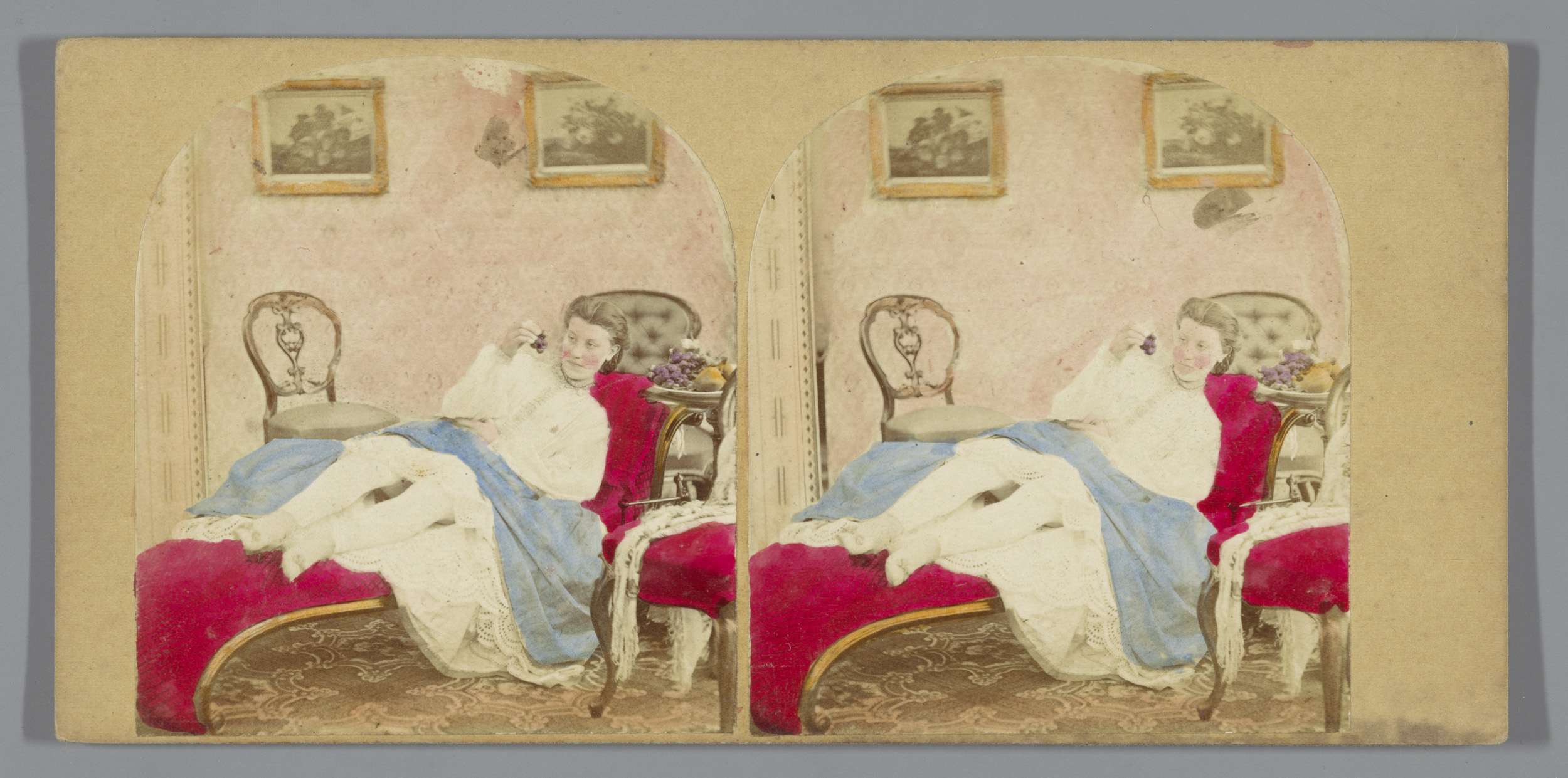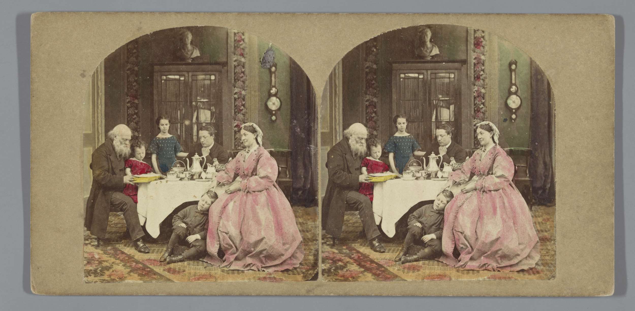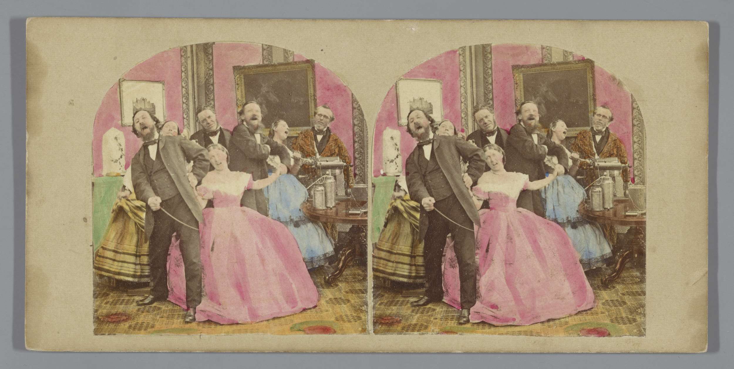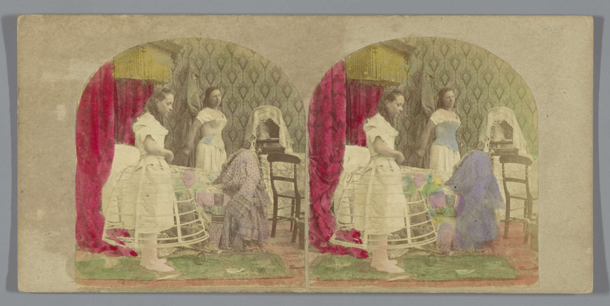 Tafereel in een huiskamer met mogelijk een stereosco...