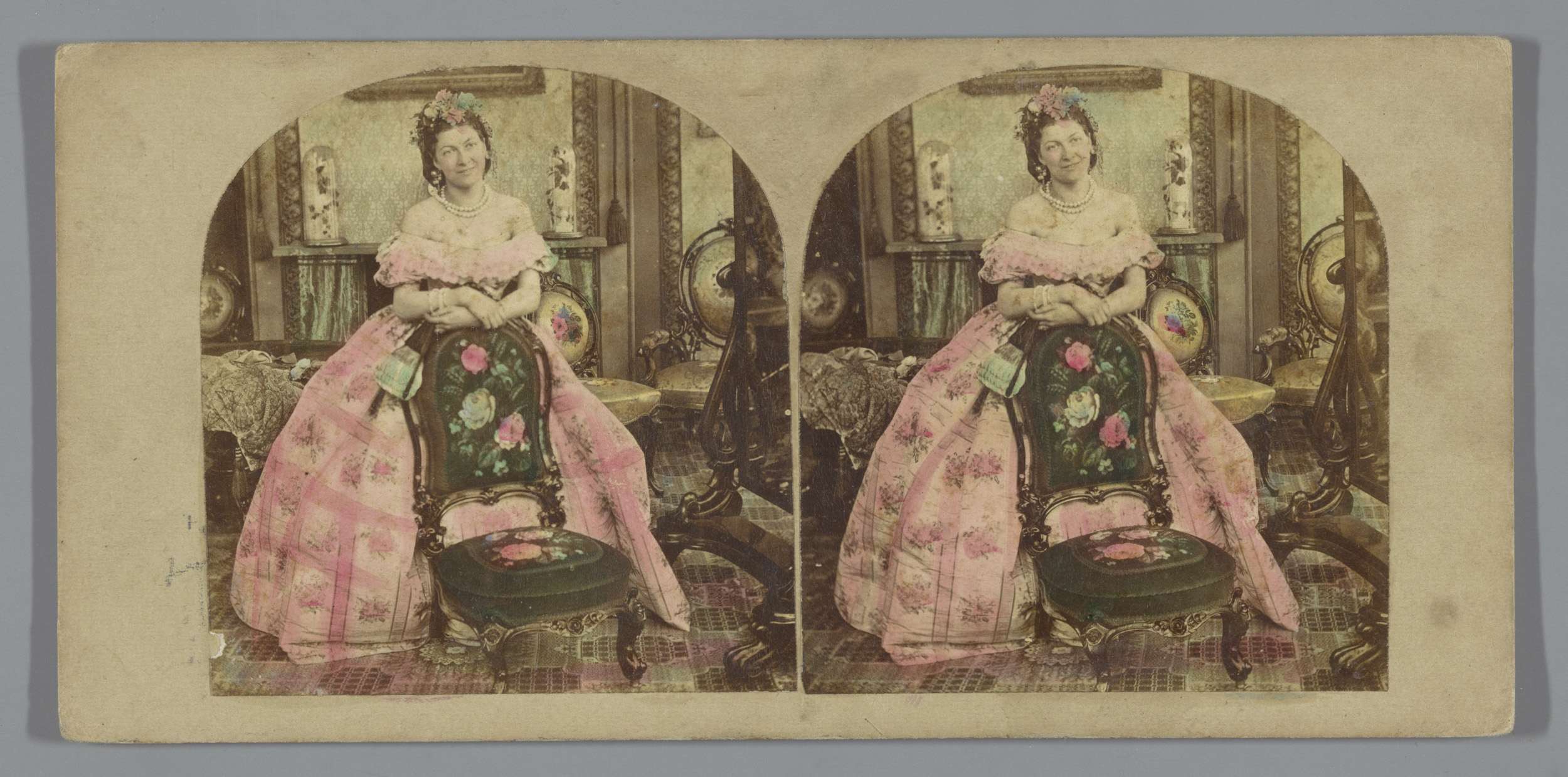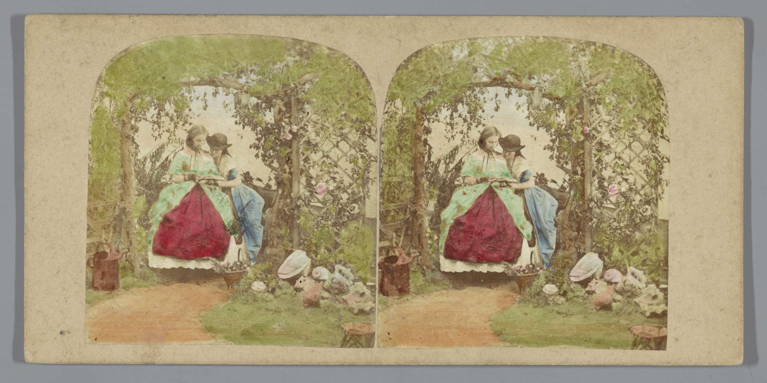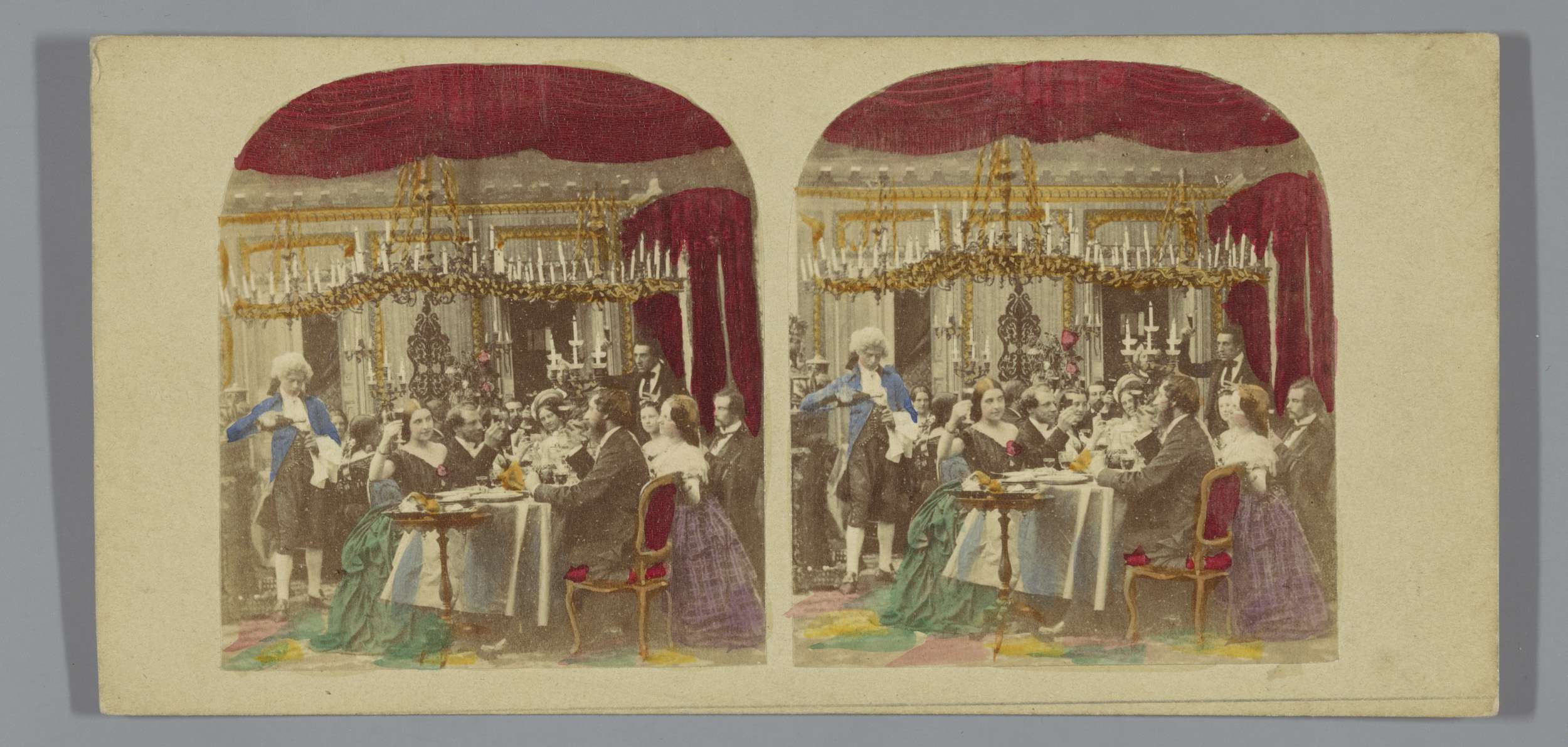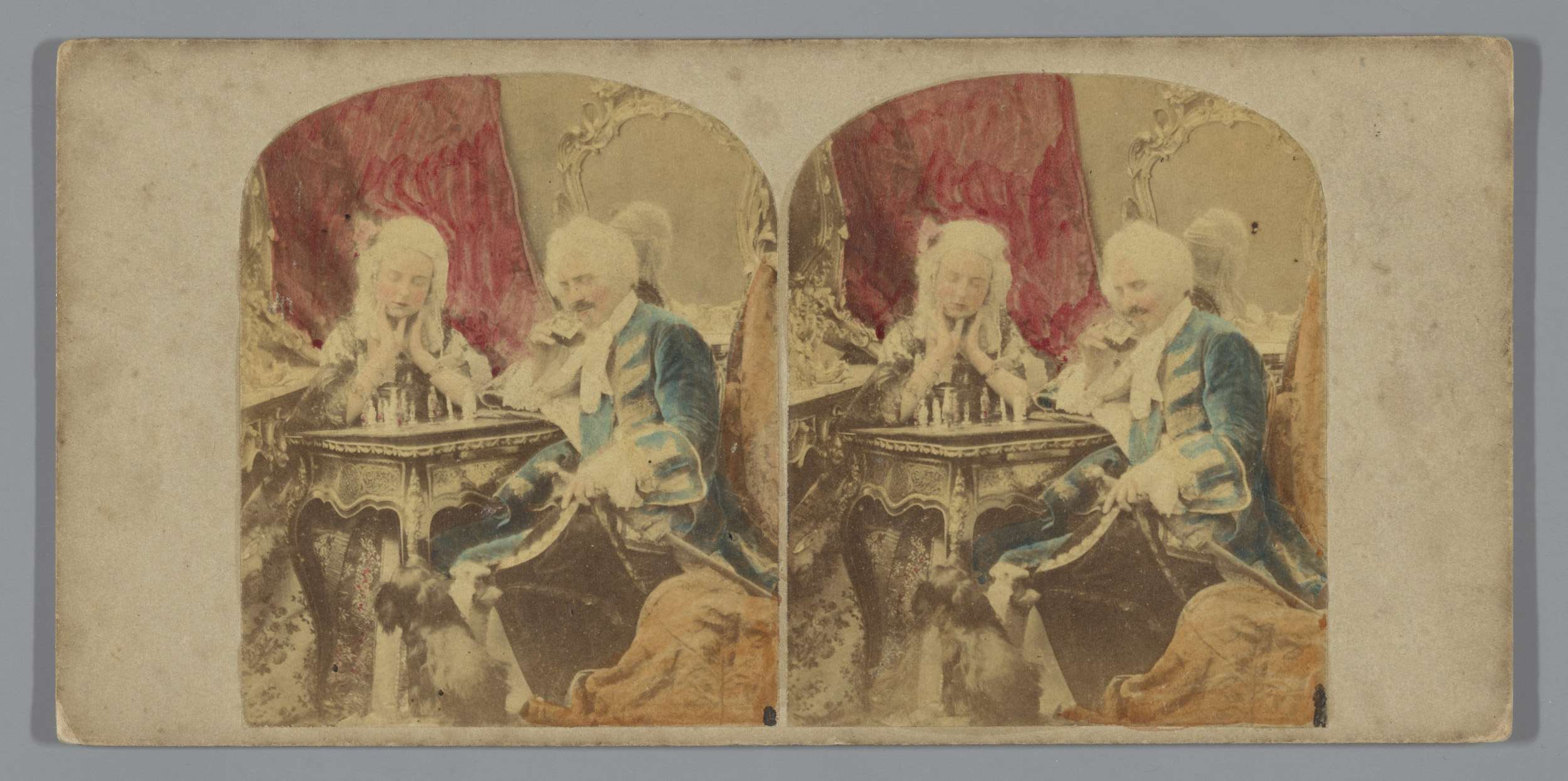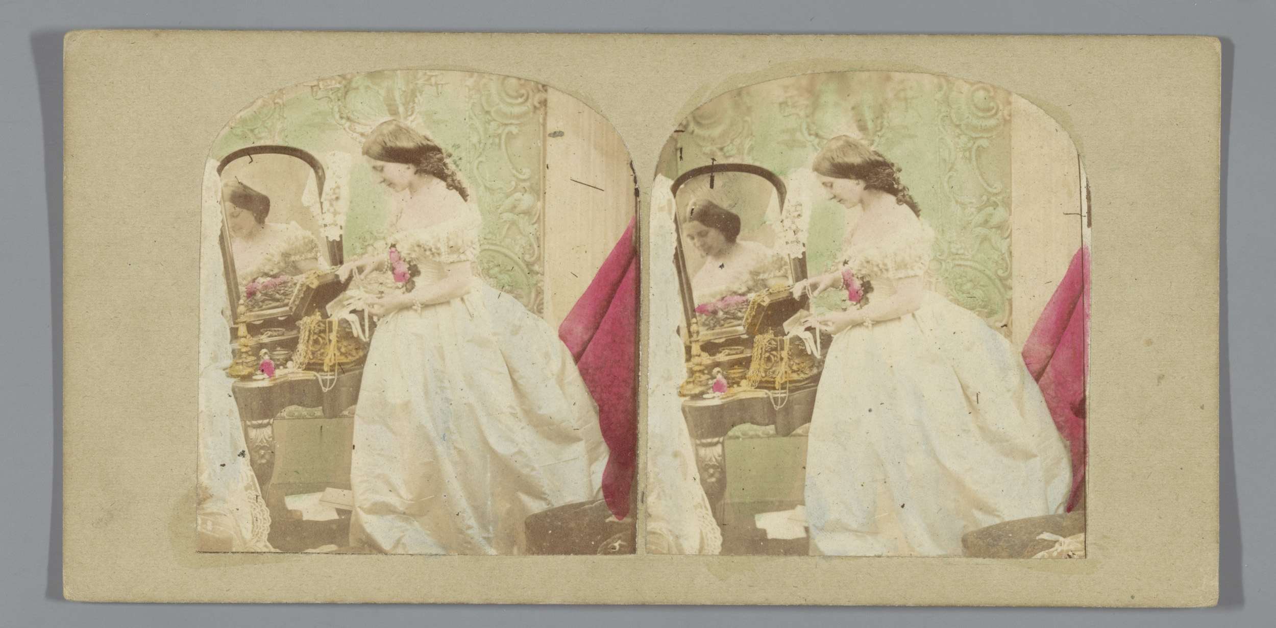 Tafereel in een huiskamer met mogelijk een stereosco...