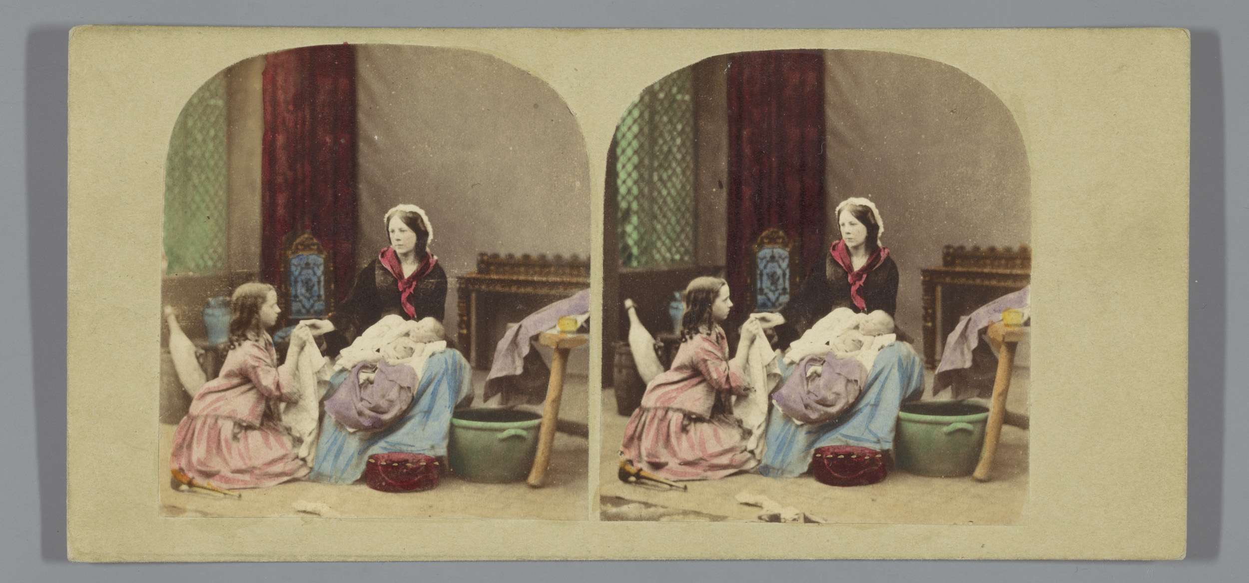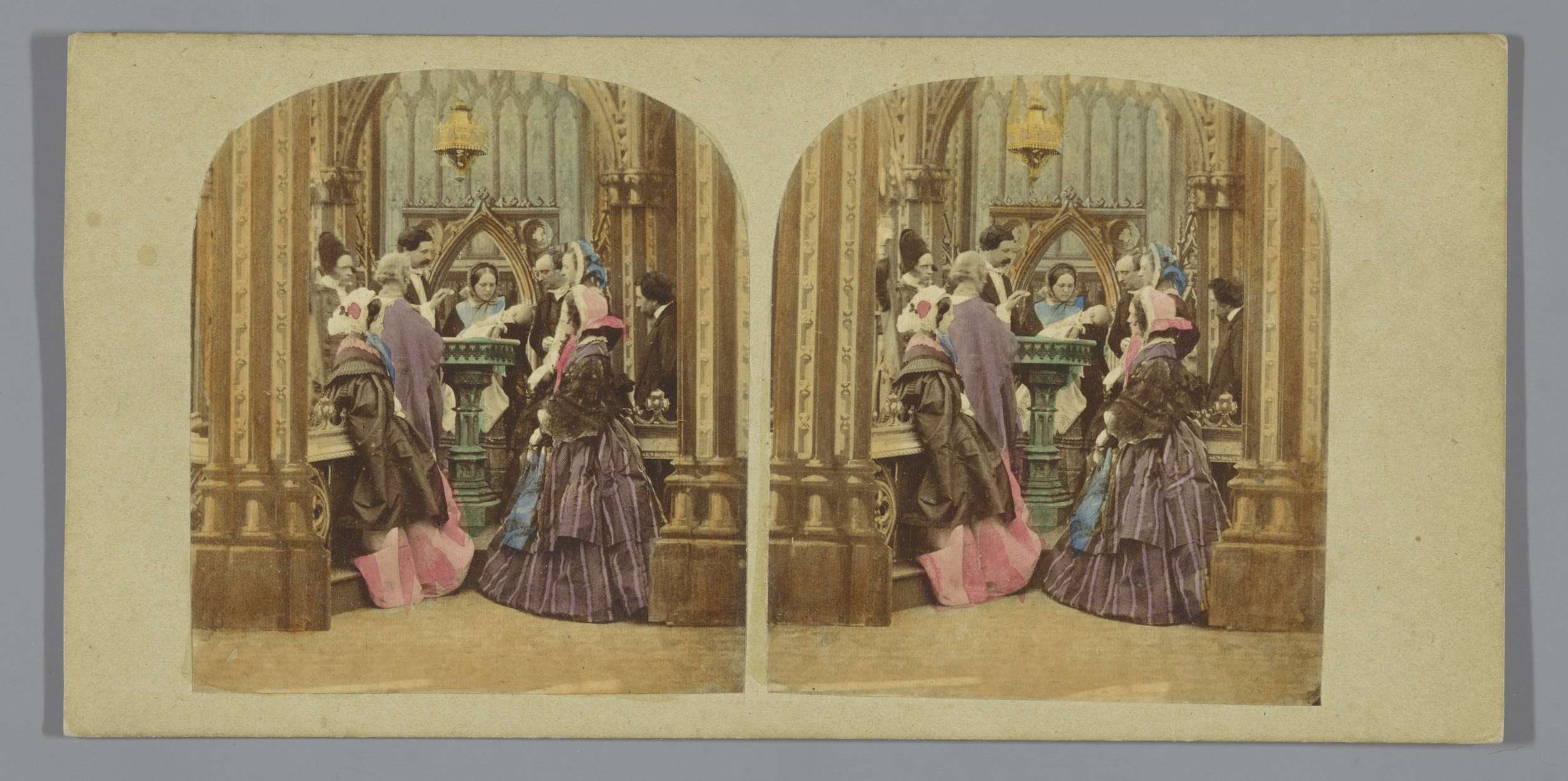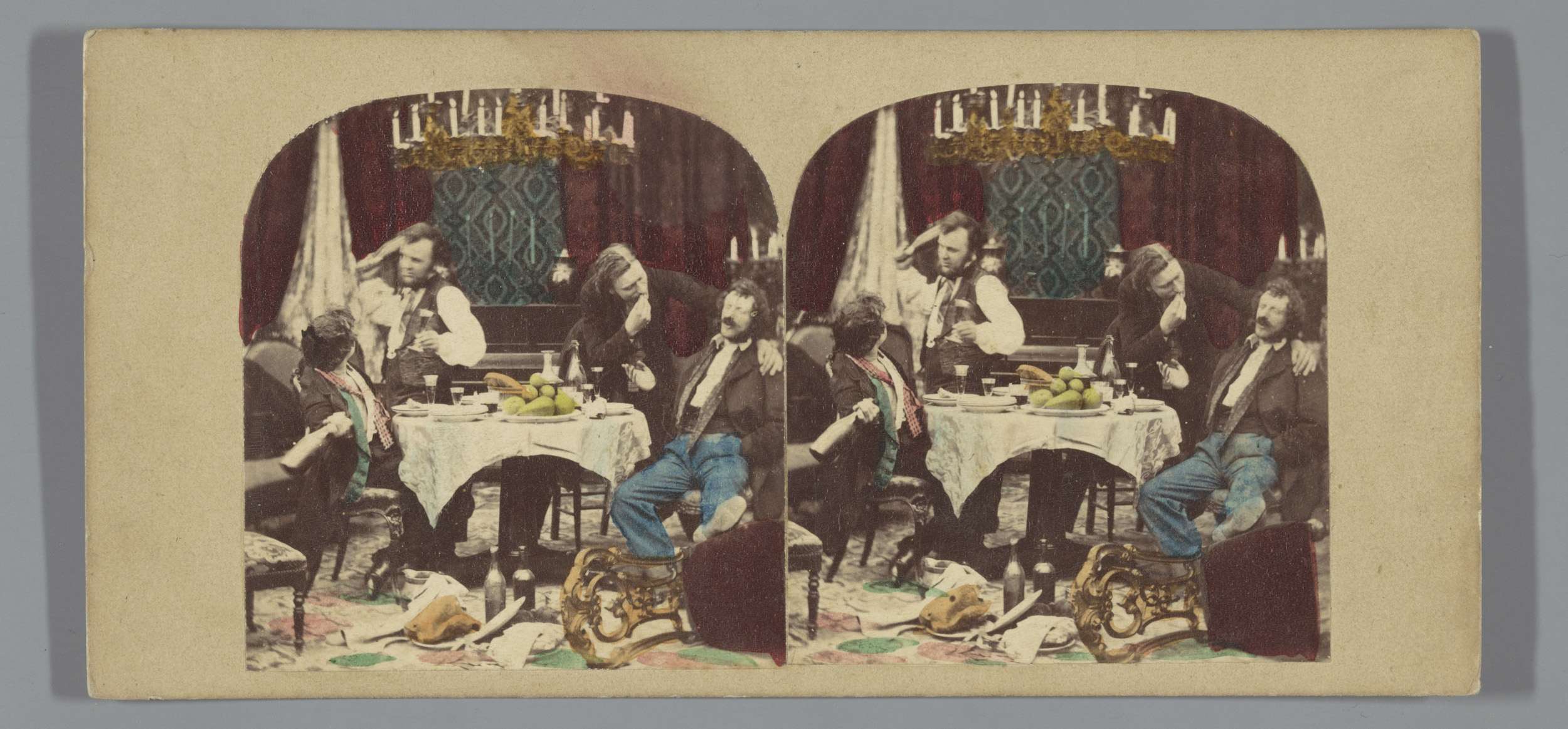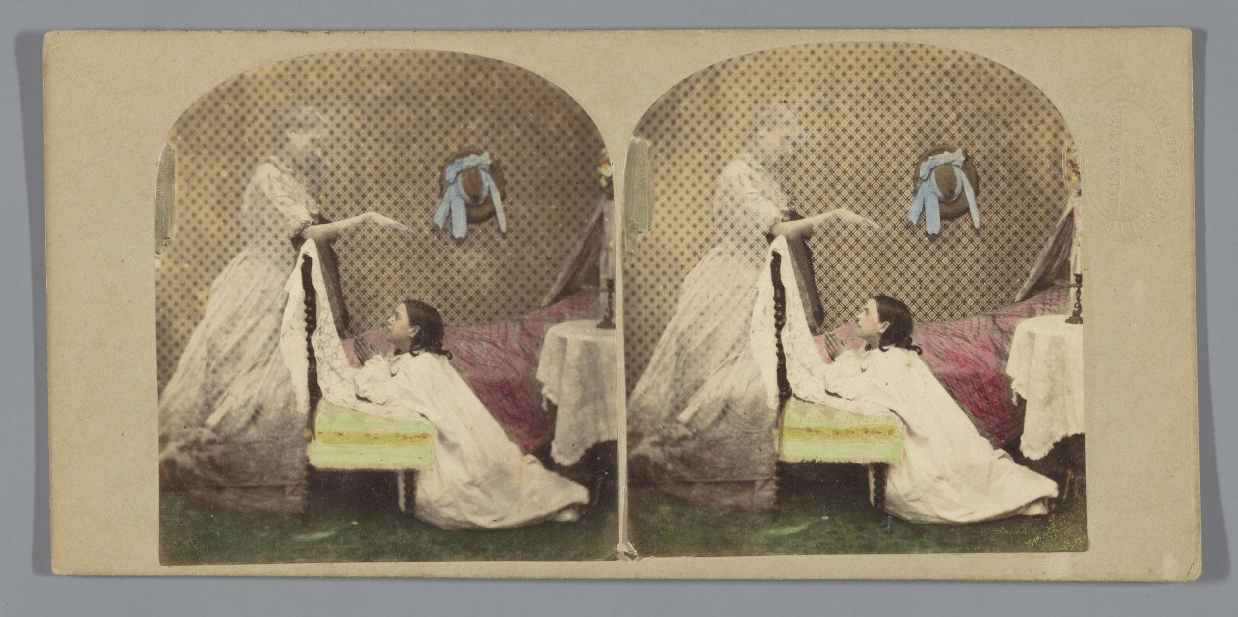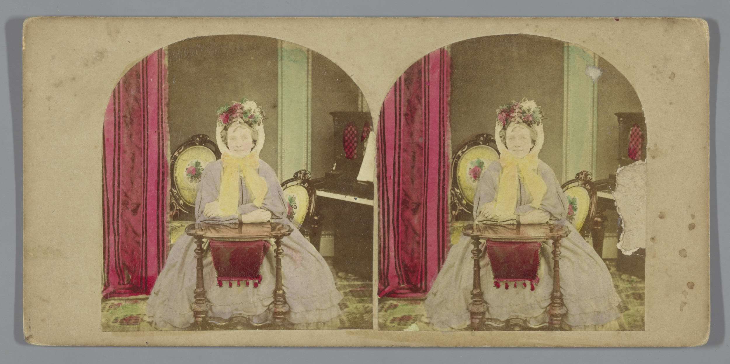 Tafereel in een huiskamer met mogelijk een stereosco...