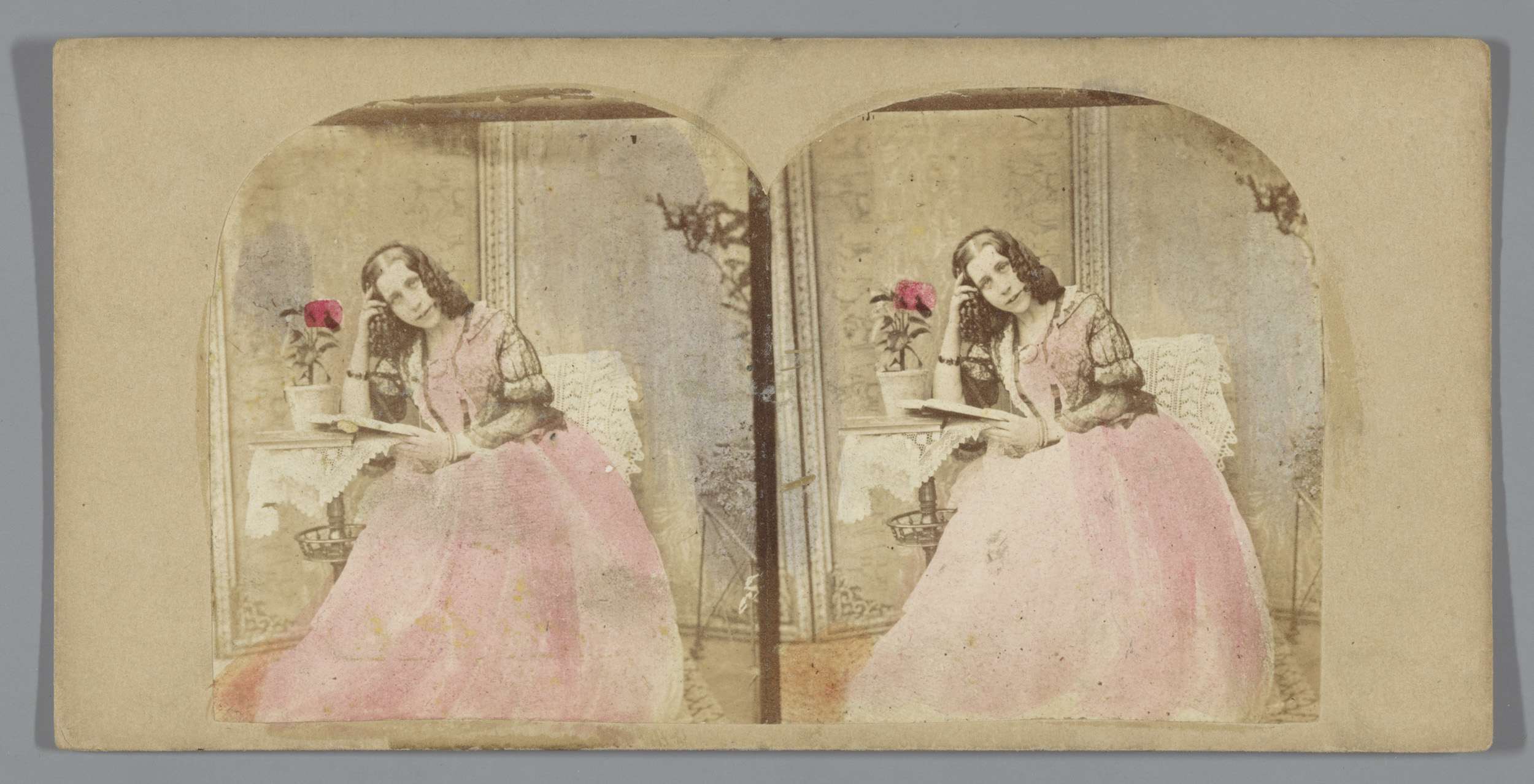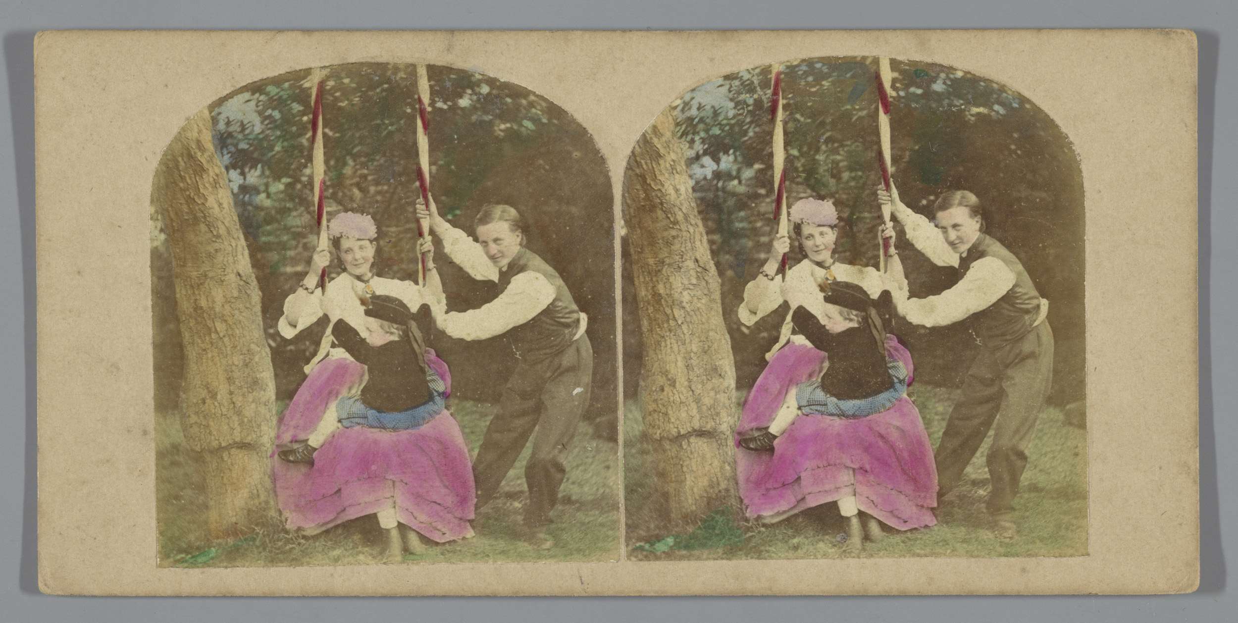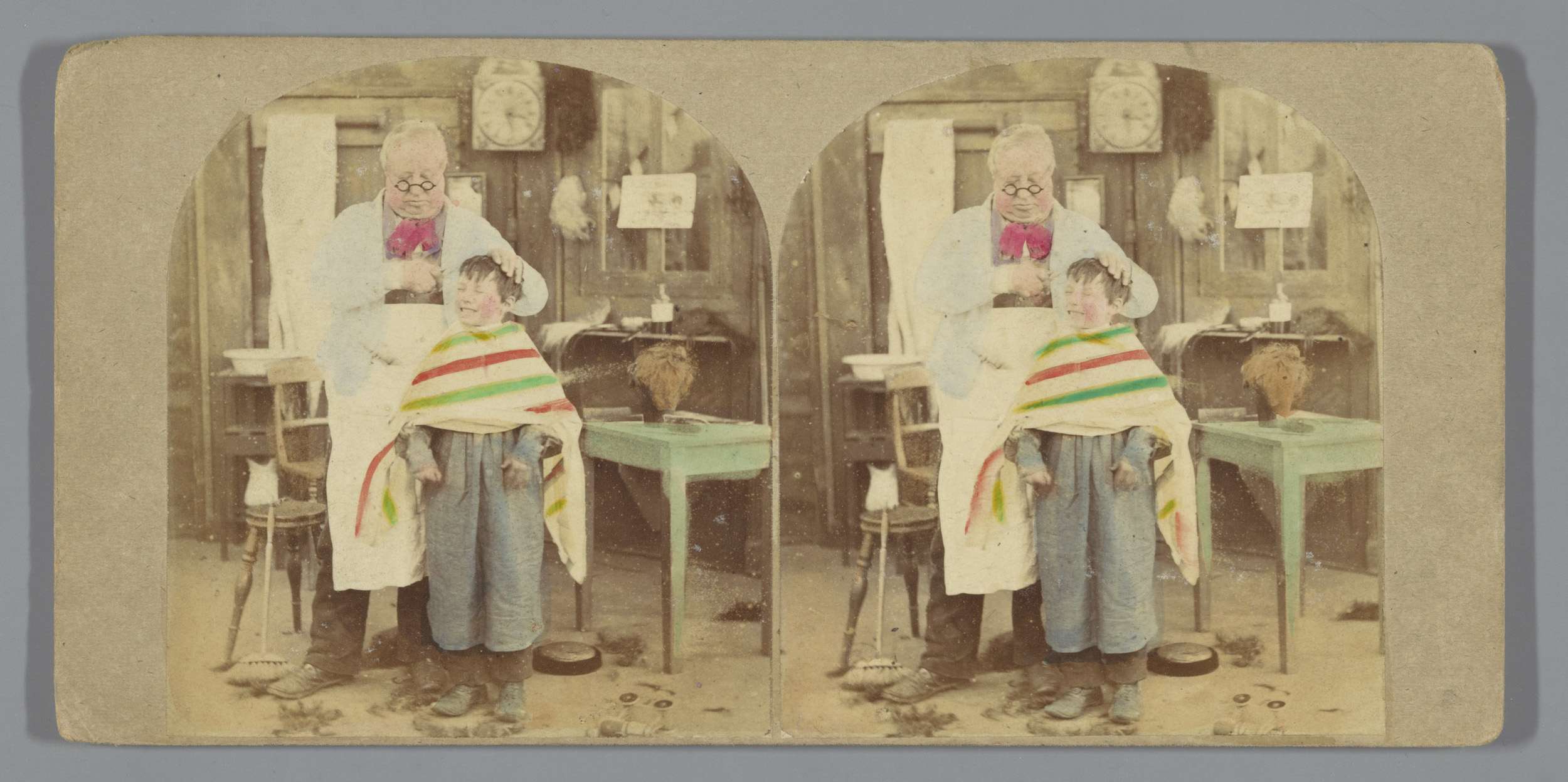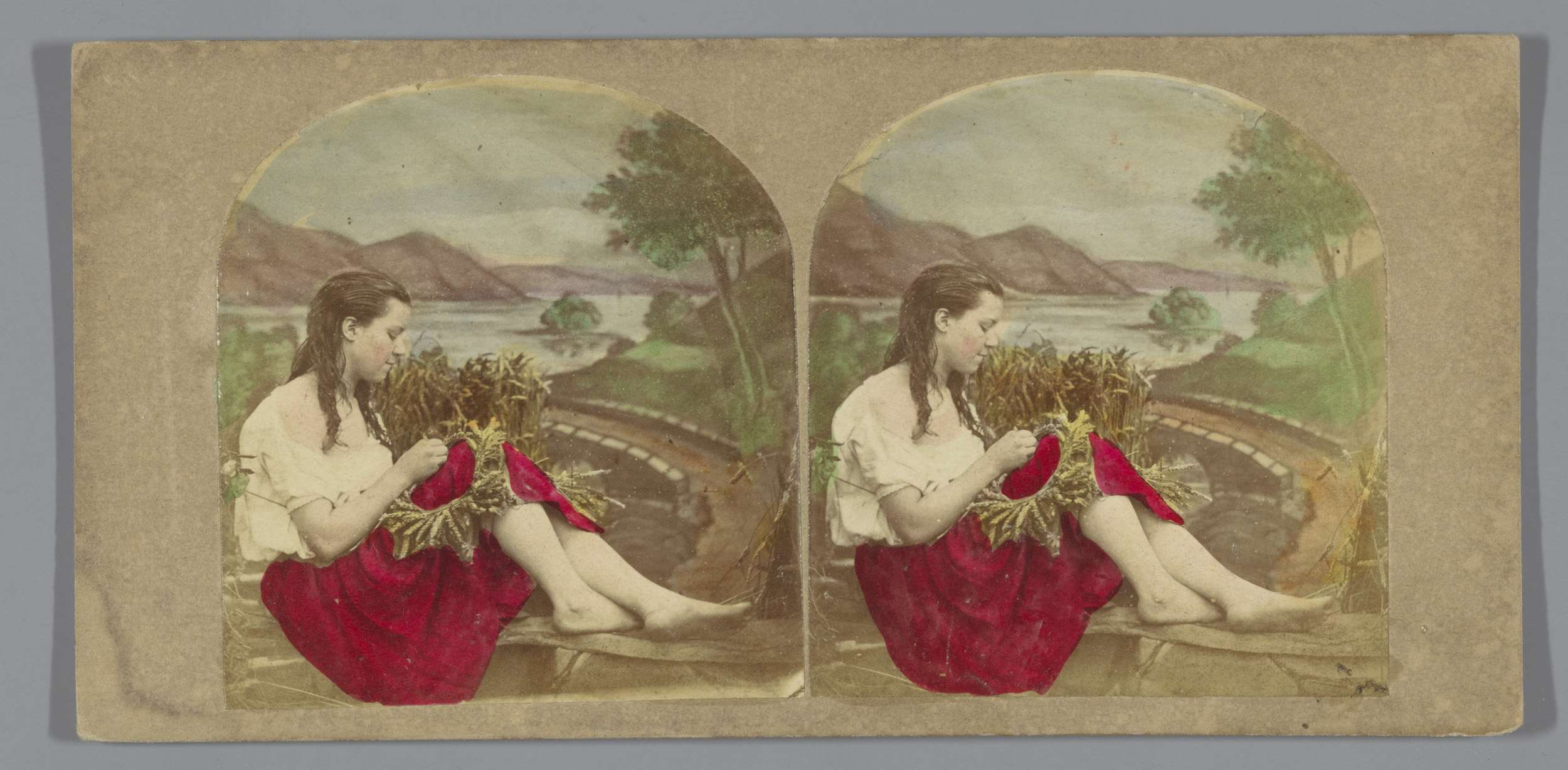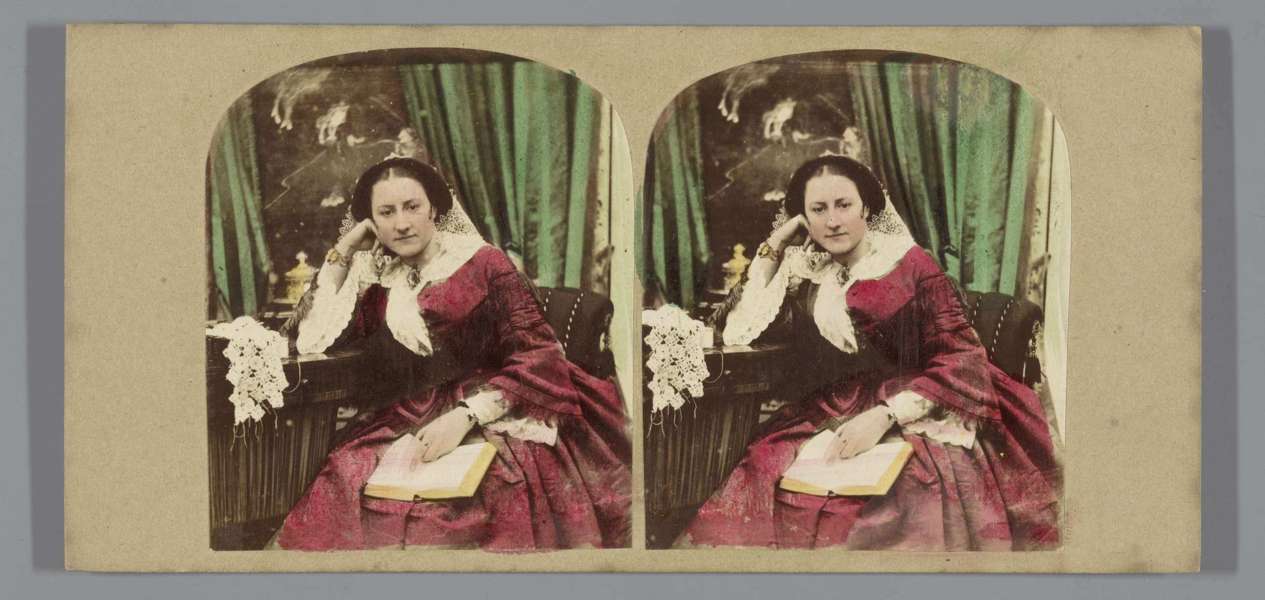 Tafereel in een huiskamer met mogelijk een stereosco...