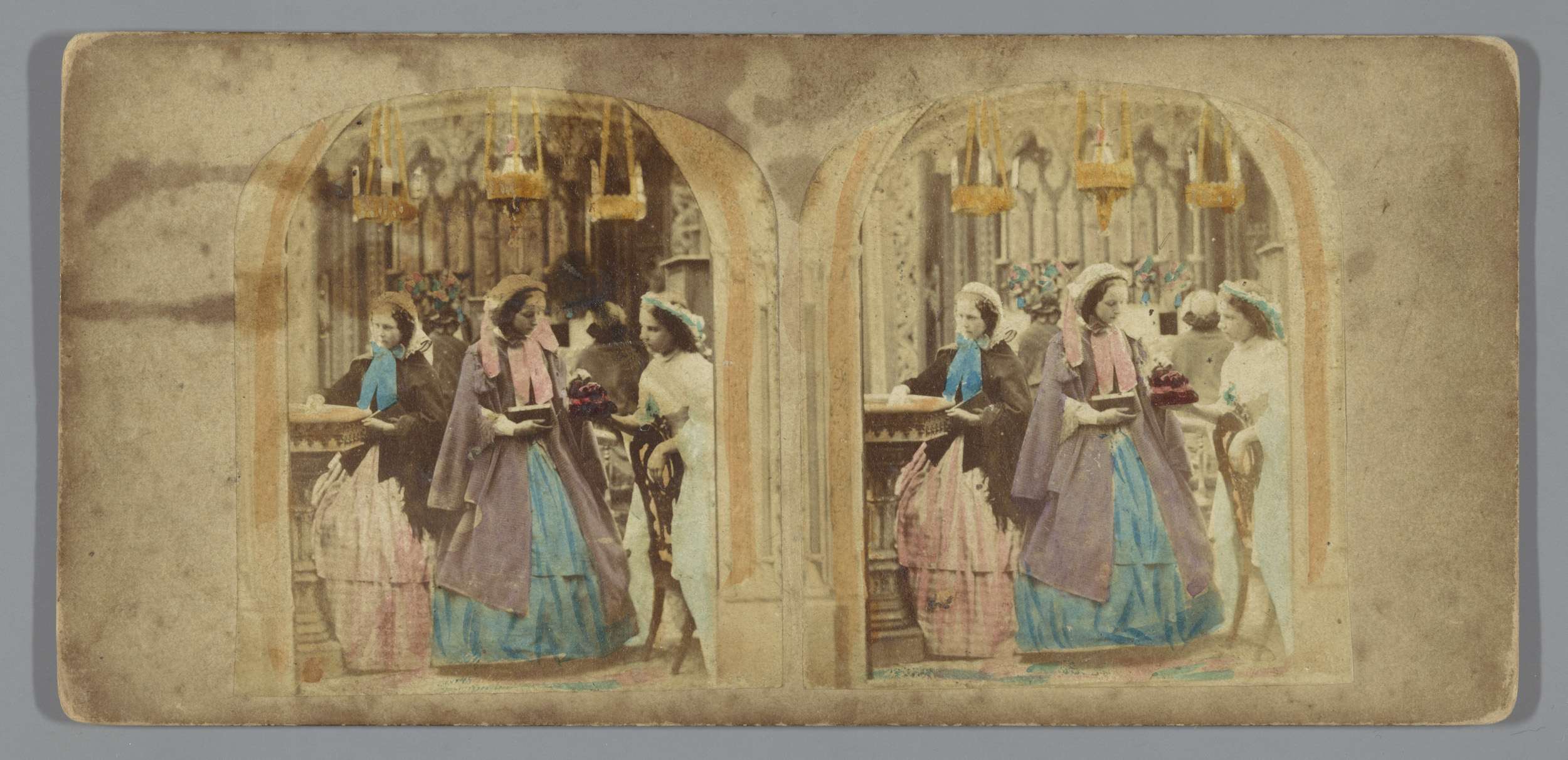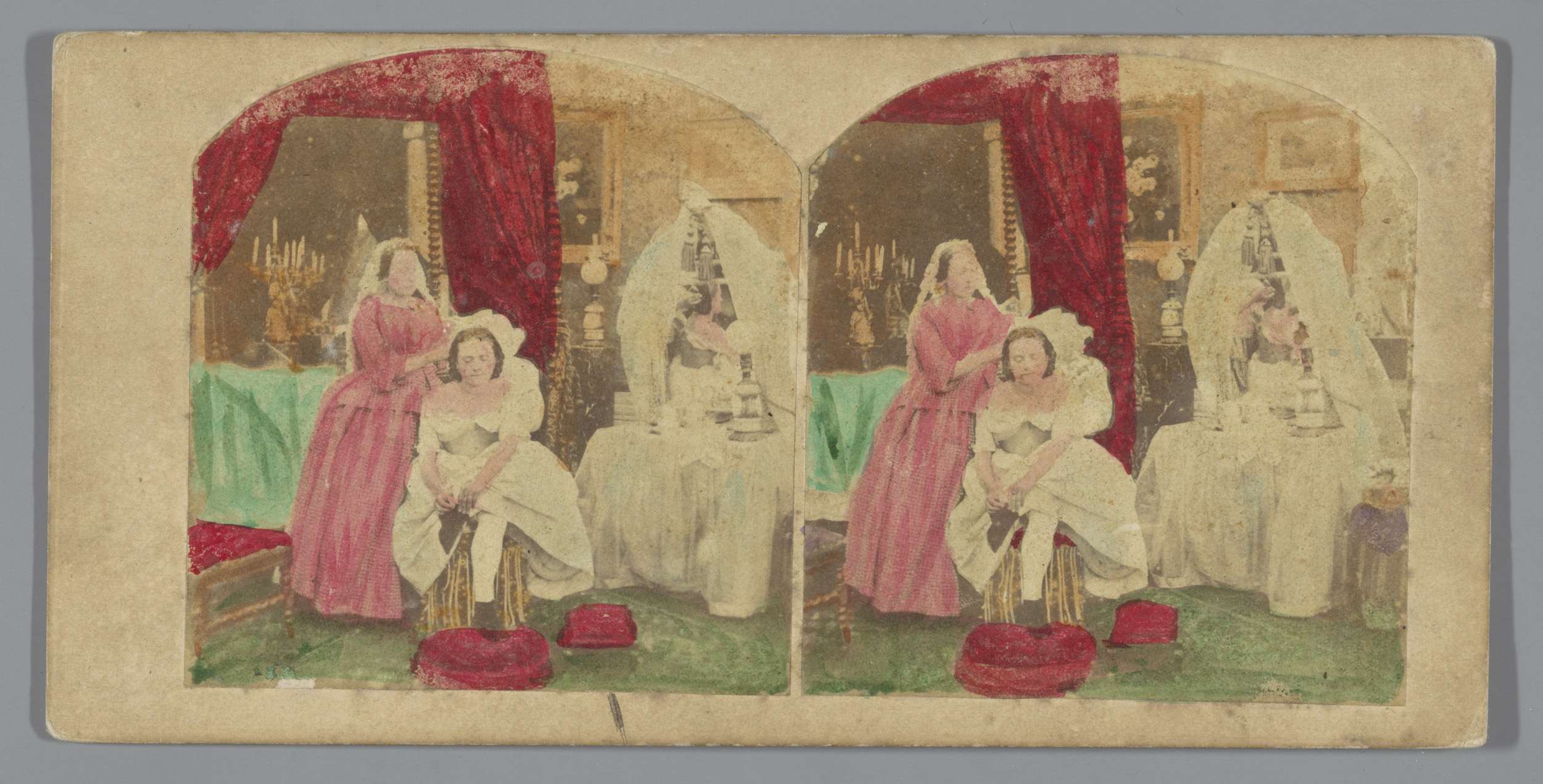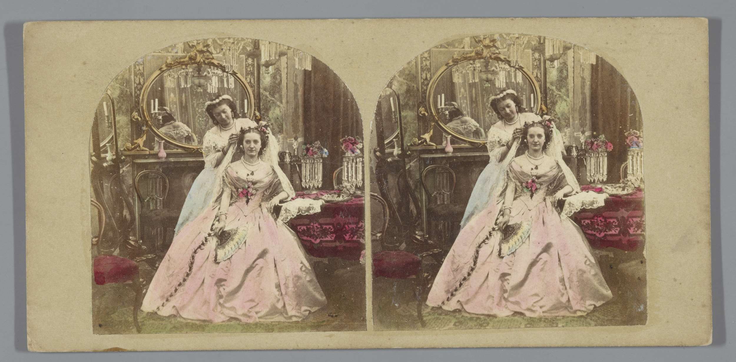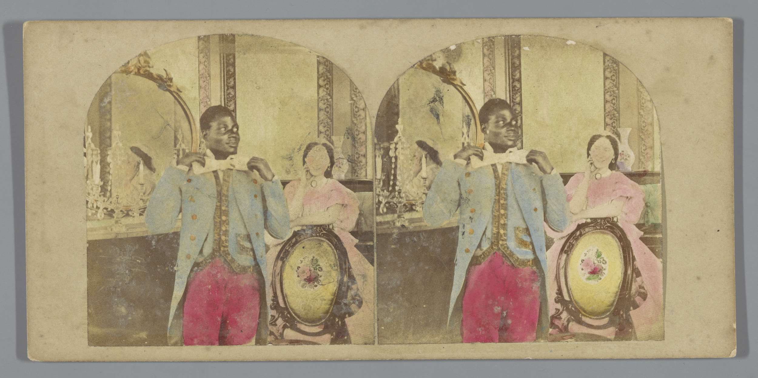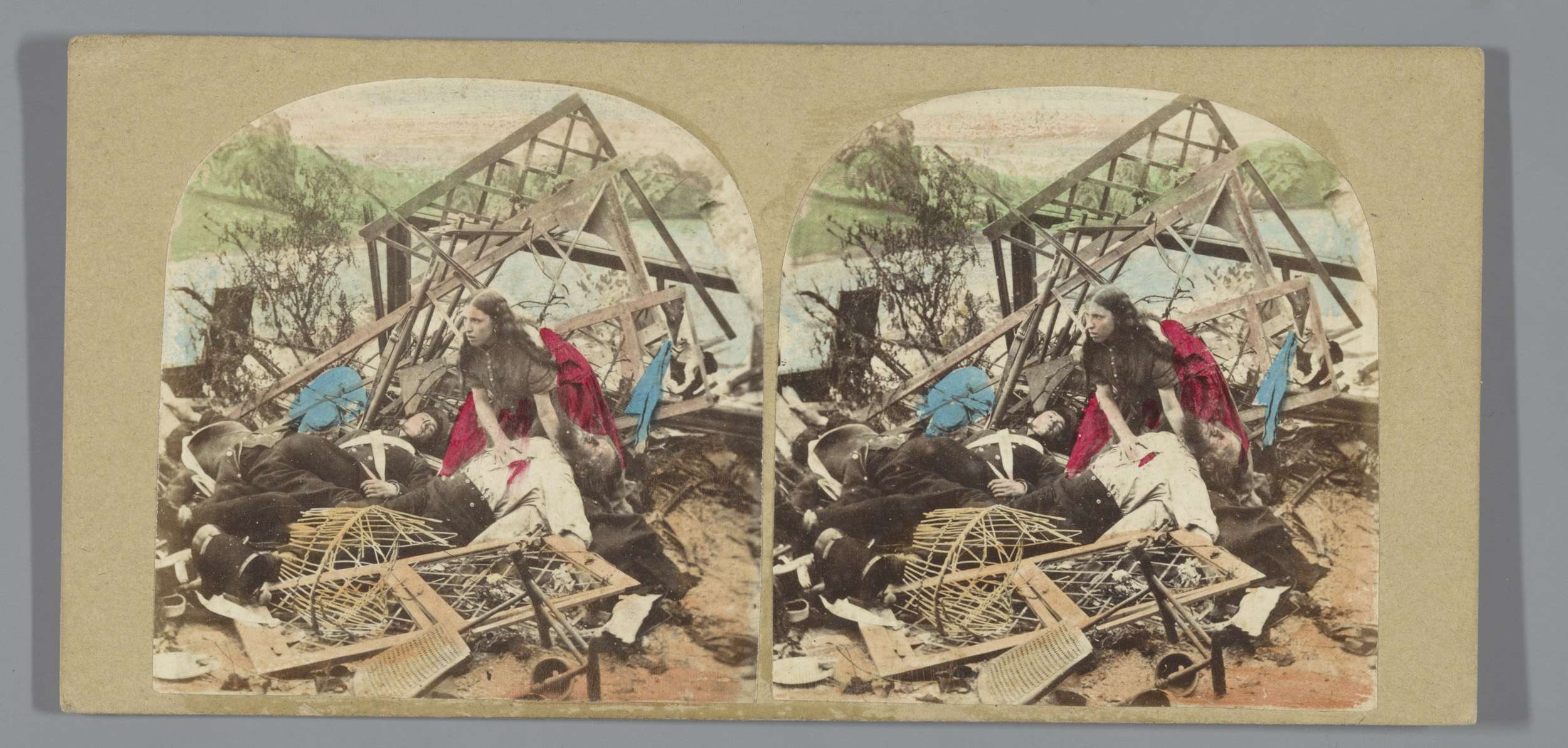 Tafereel in een huiskamer met mogelijk een stereosco...