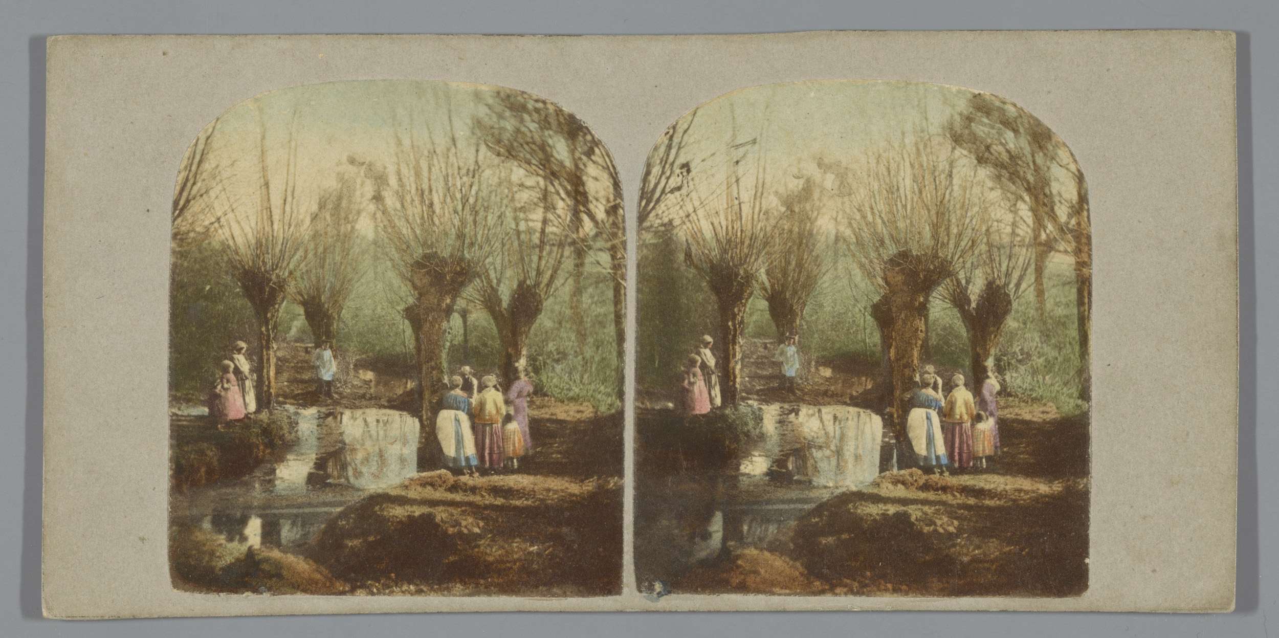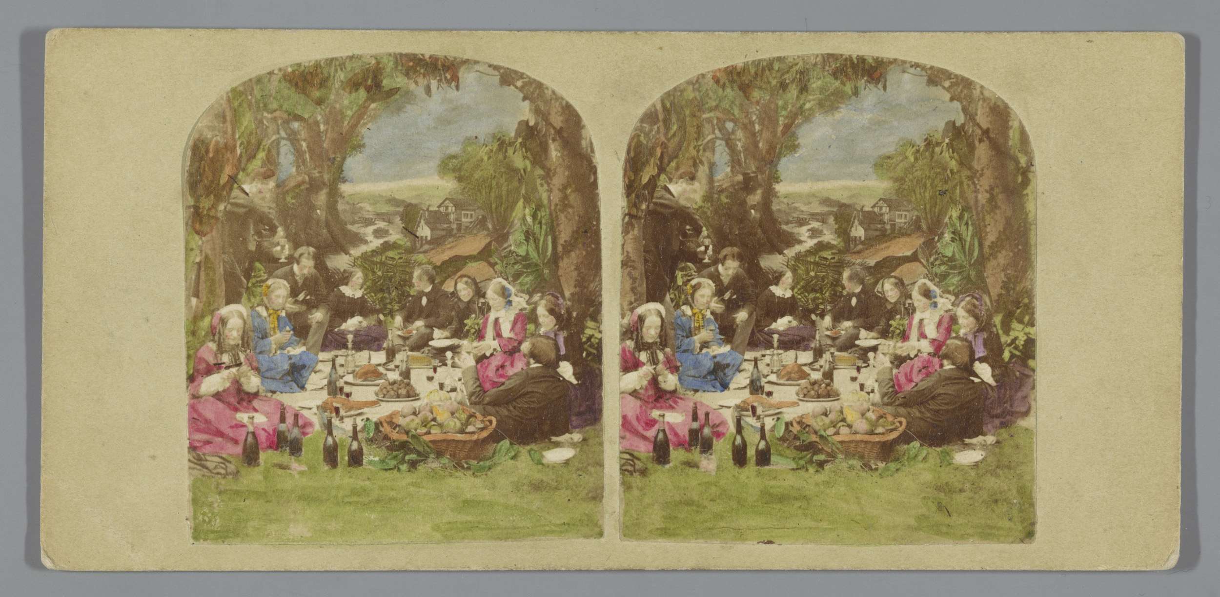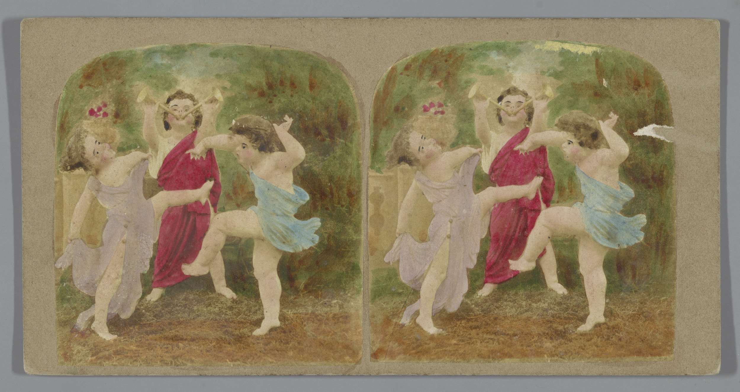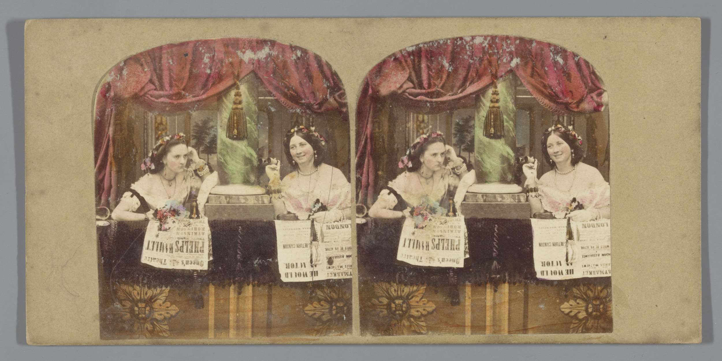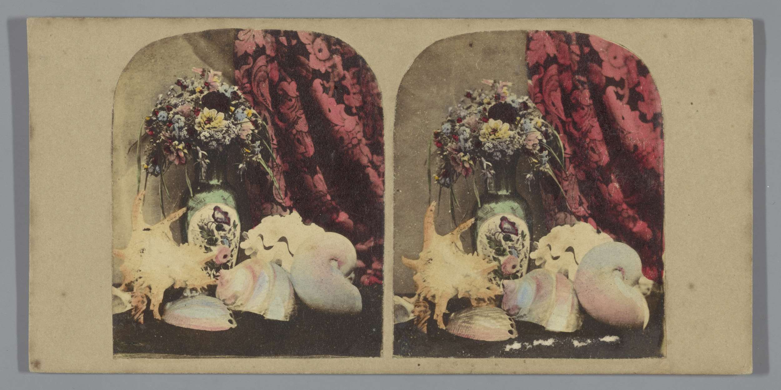 Tafereel in een huiskamer met mogelijk een stereosco...