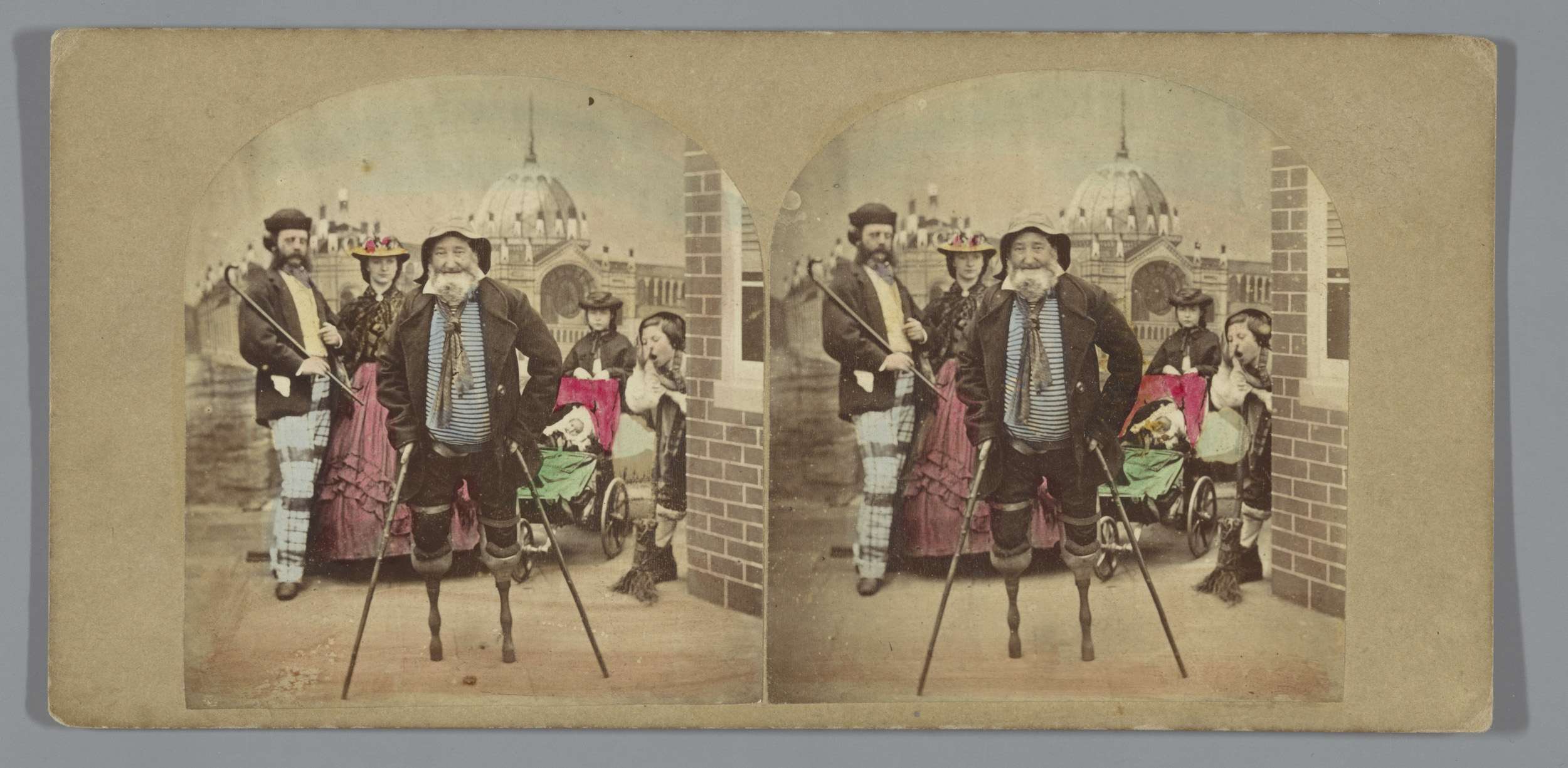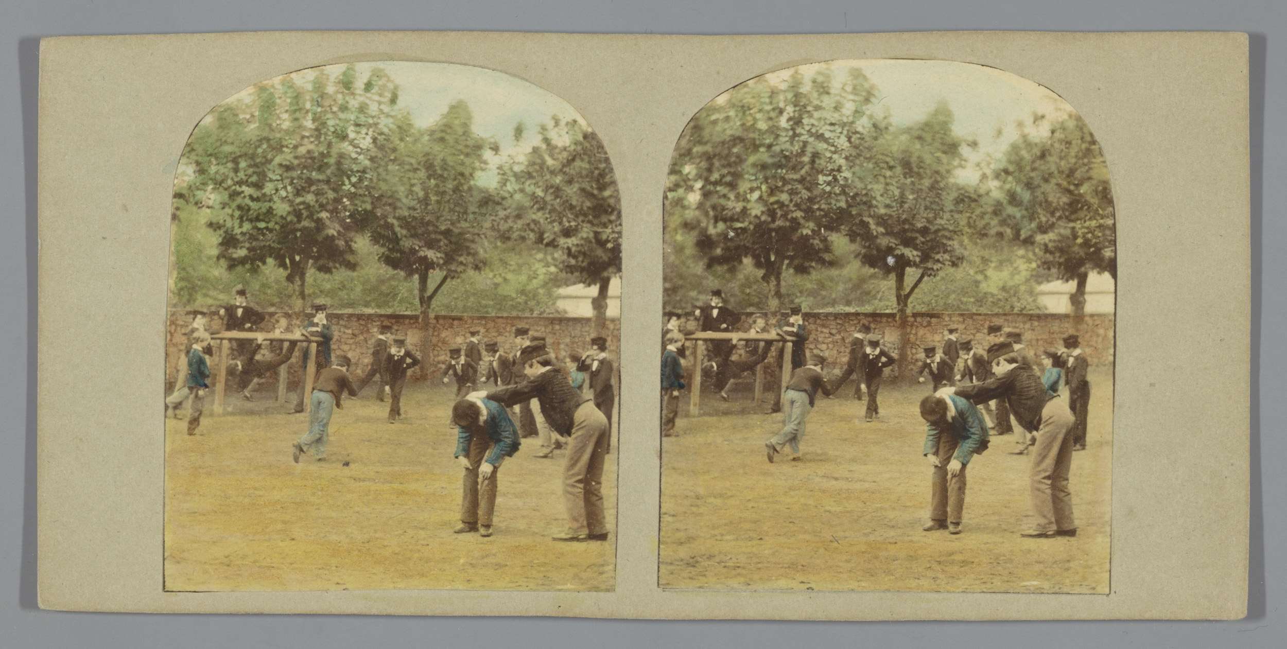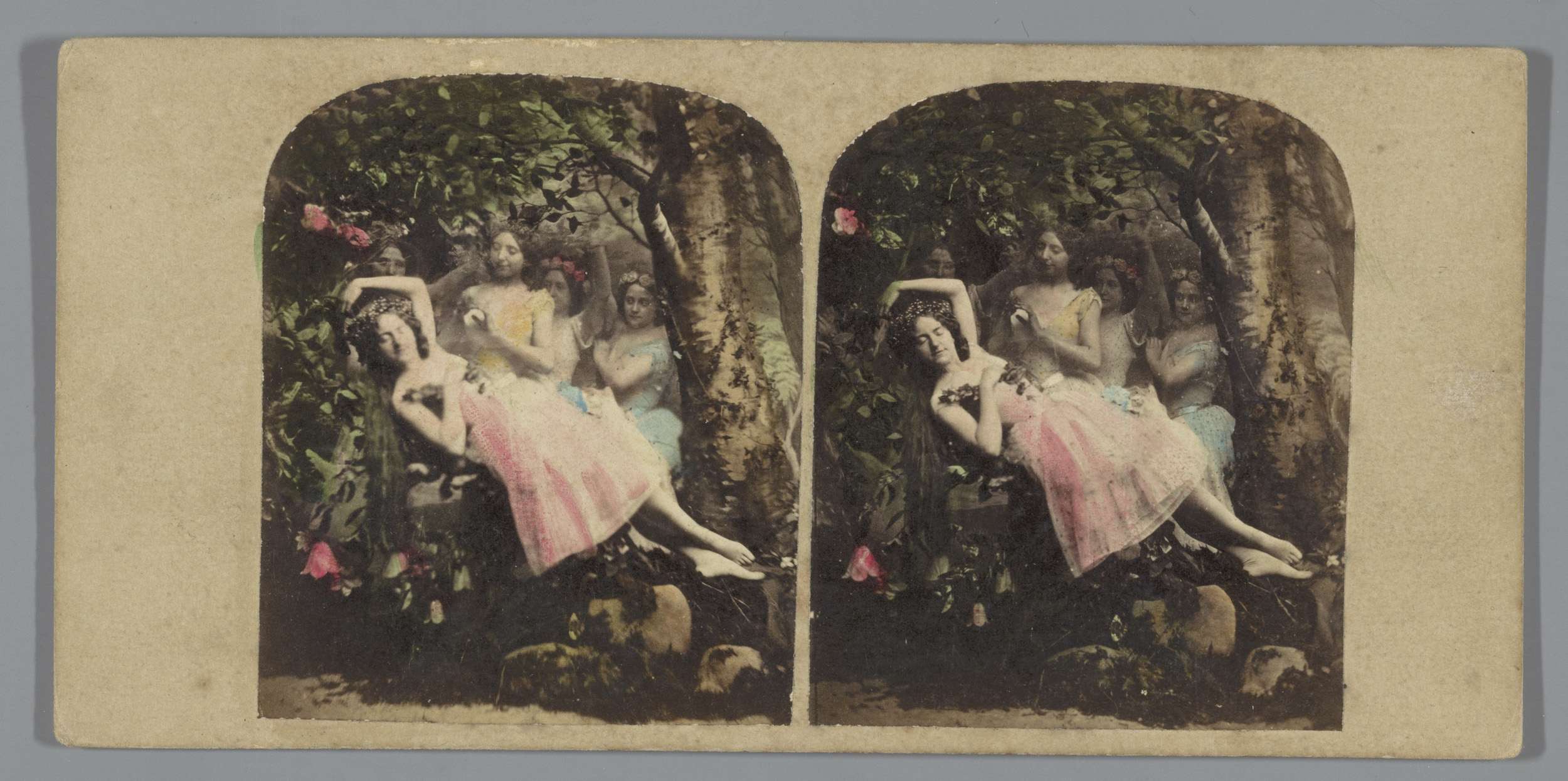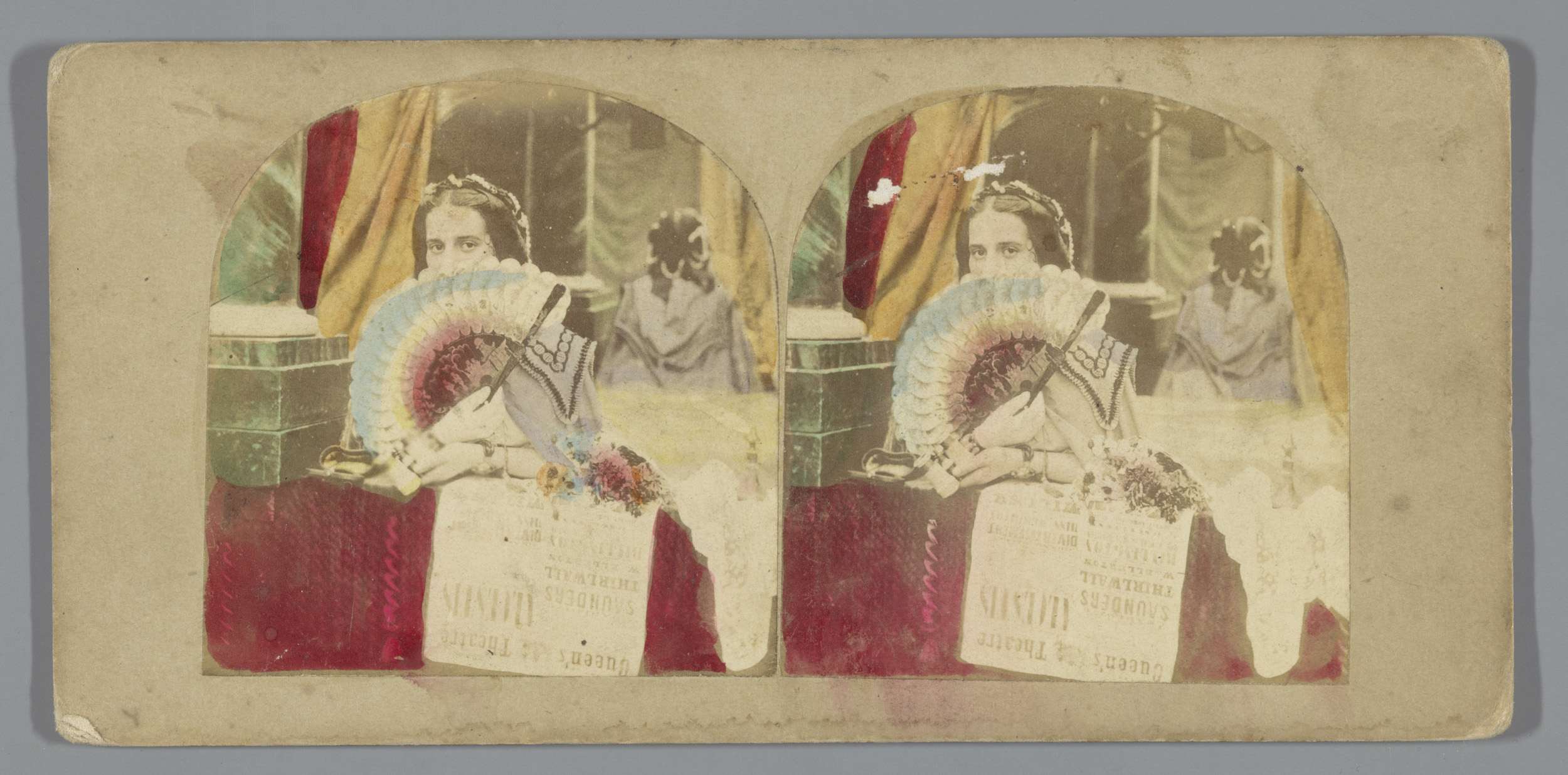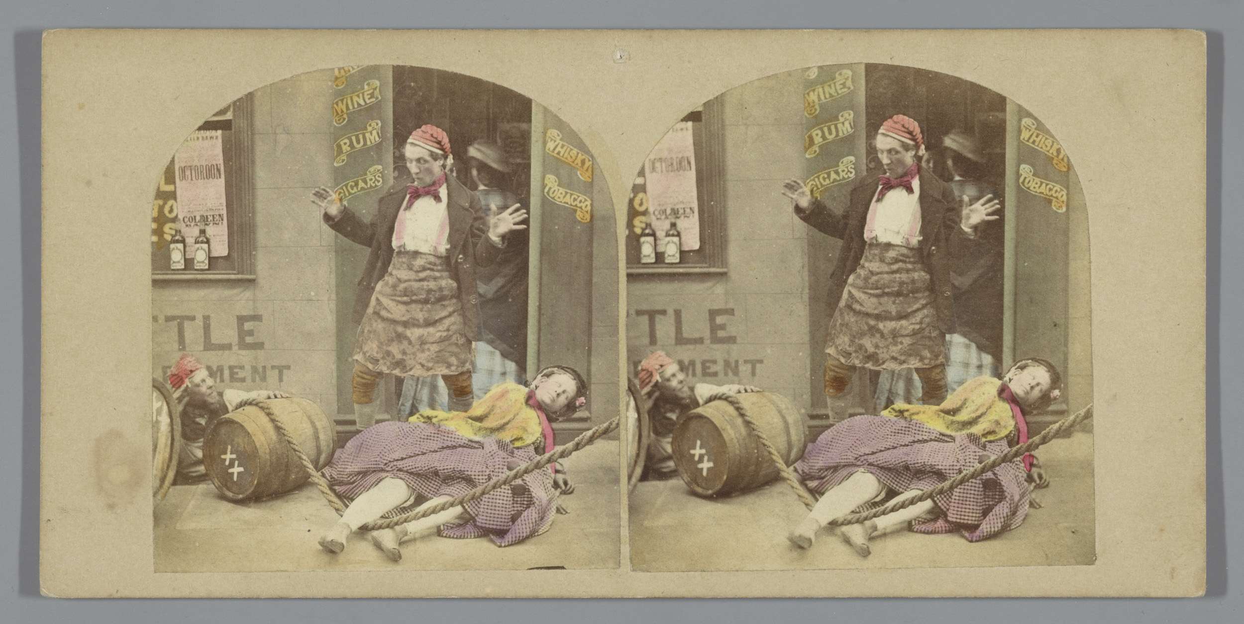 Vrouw in een hoepelrok stapt over een touw dat op de...