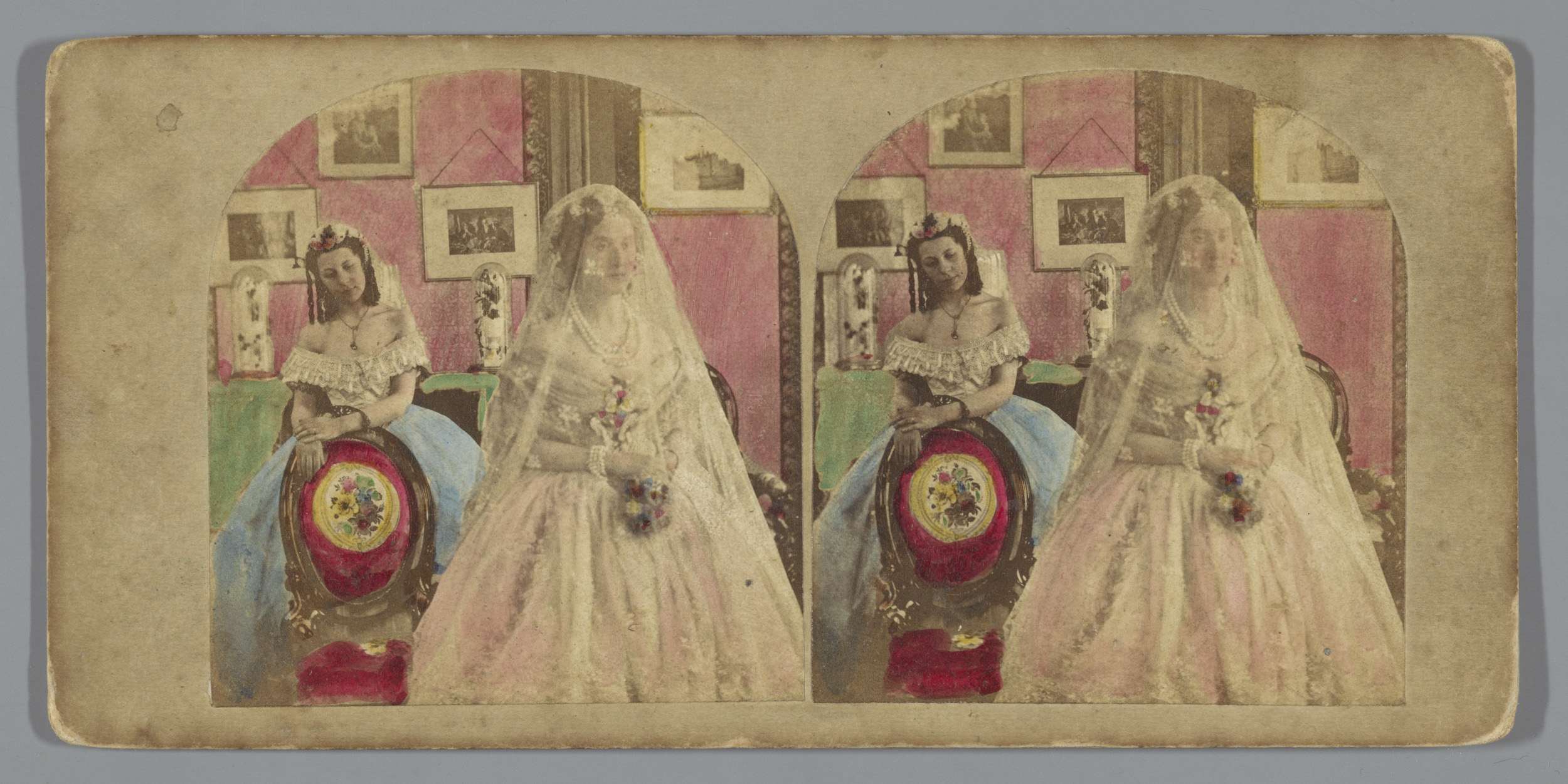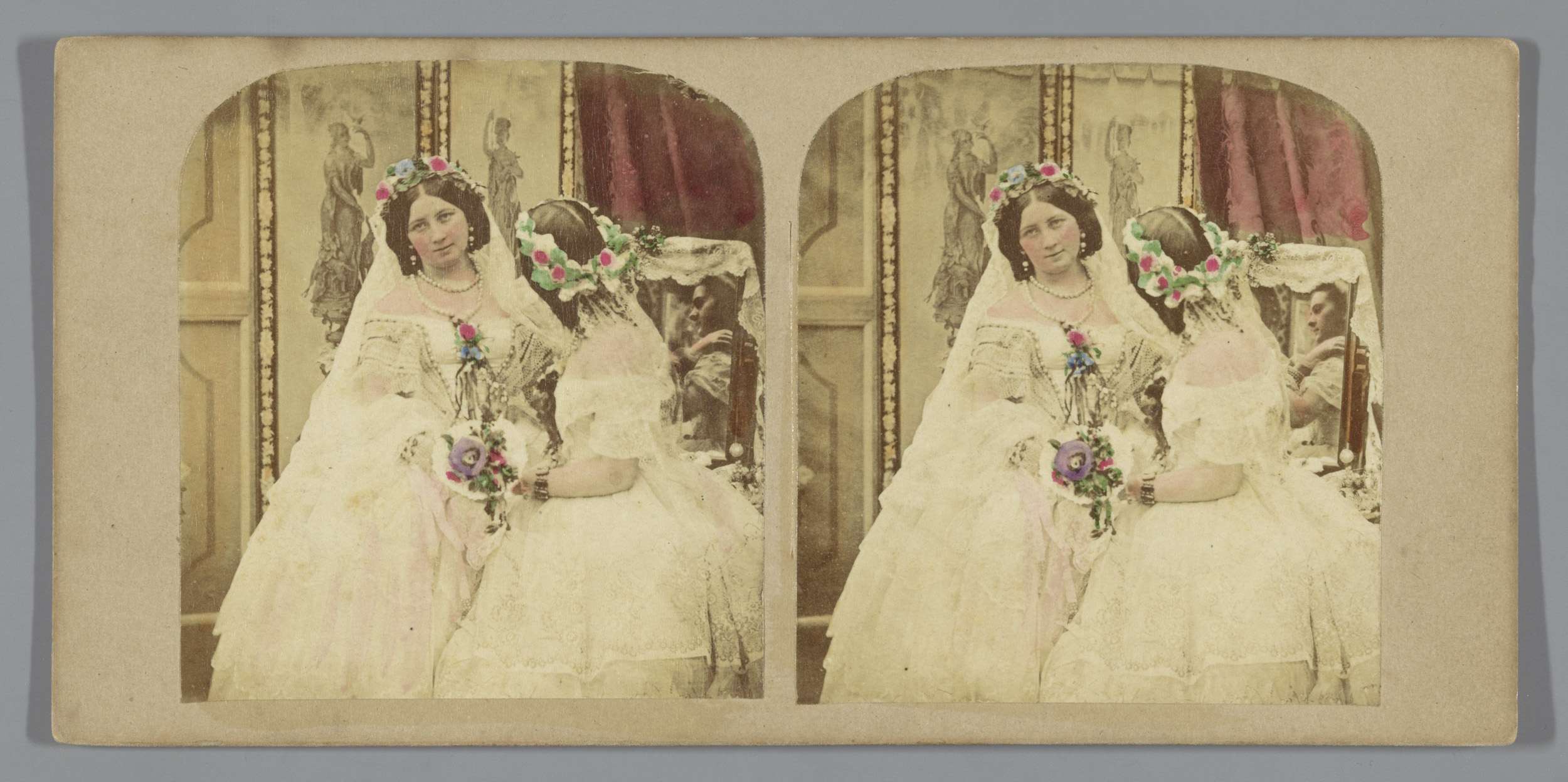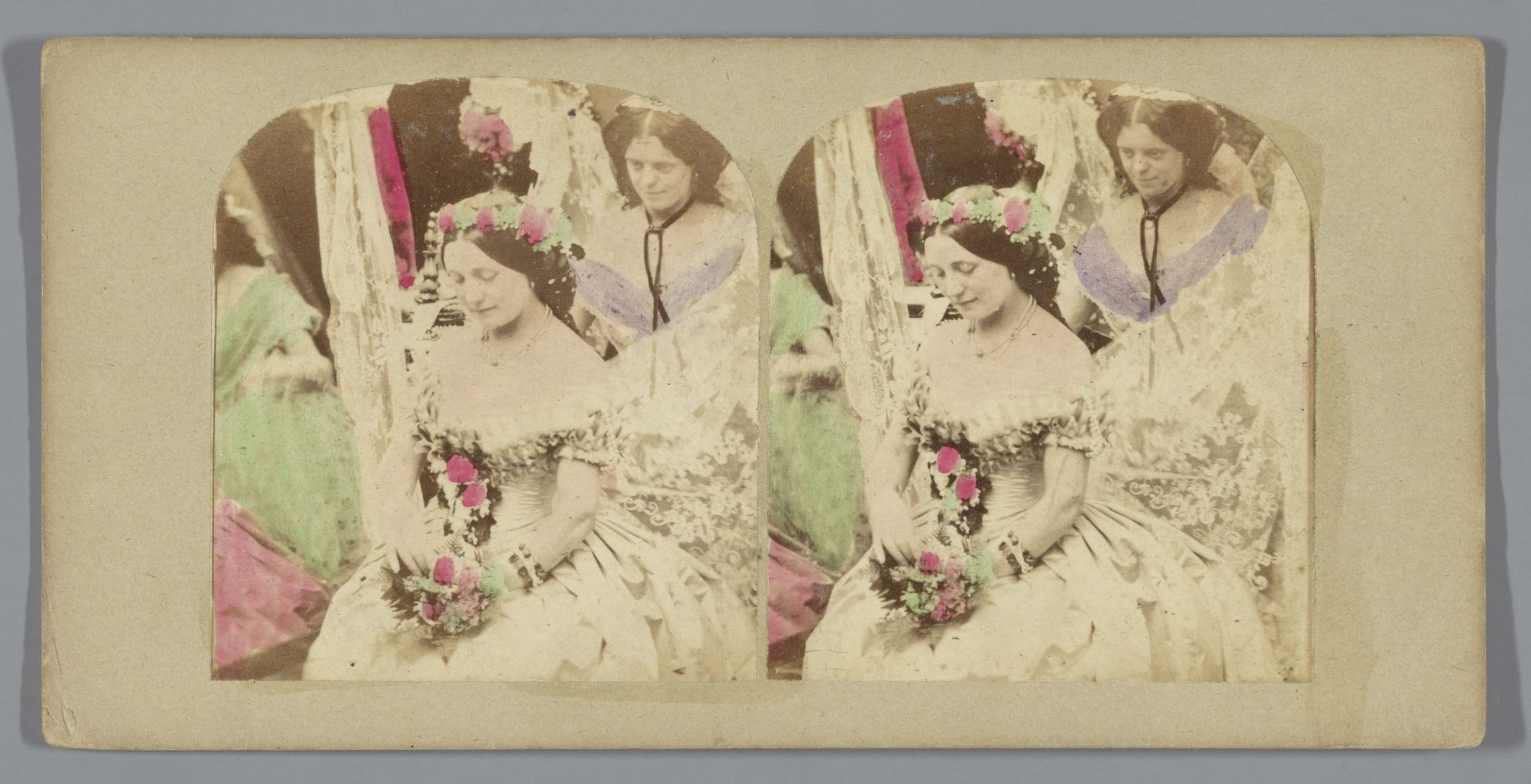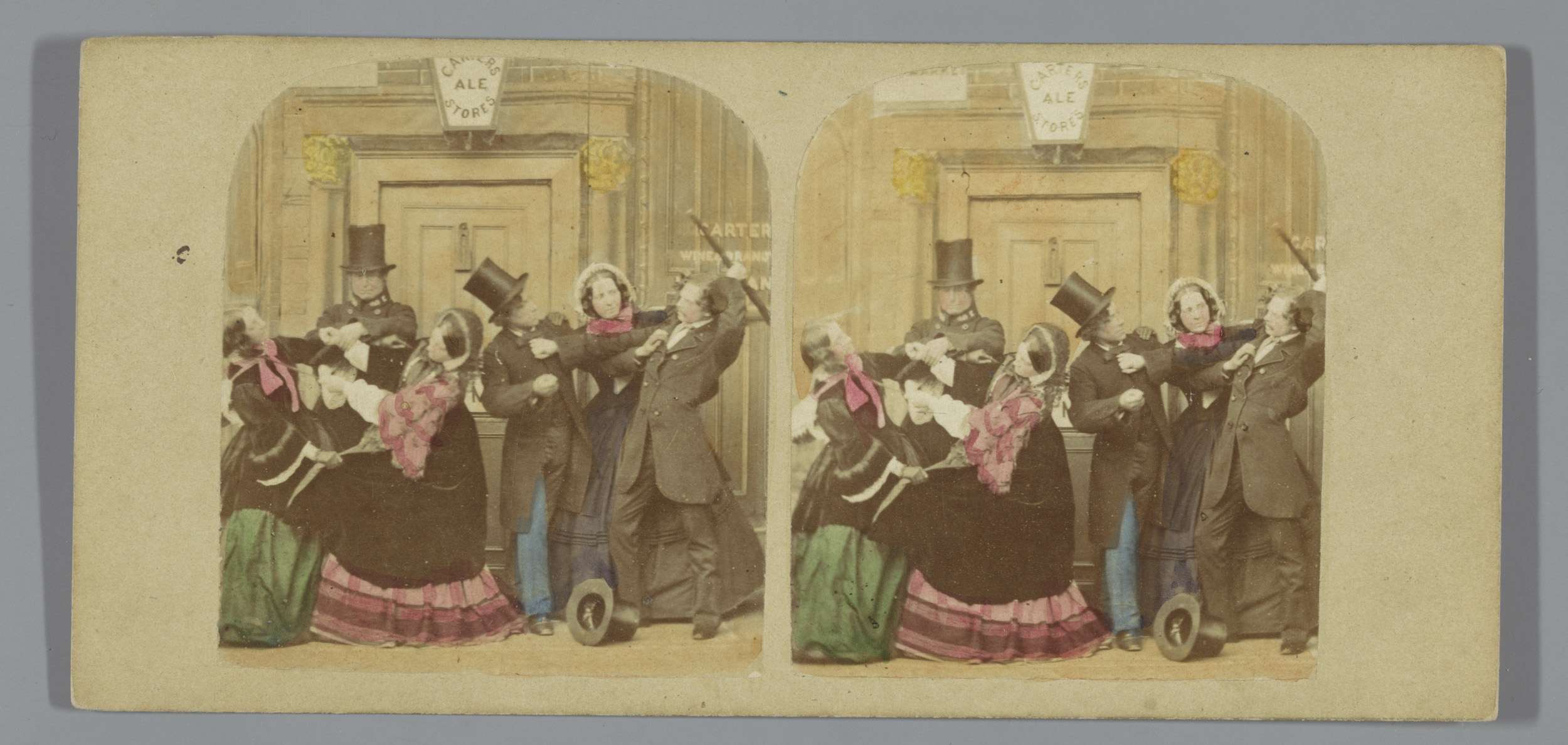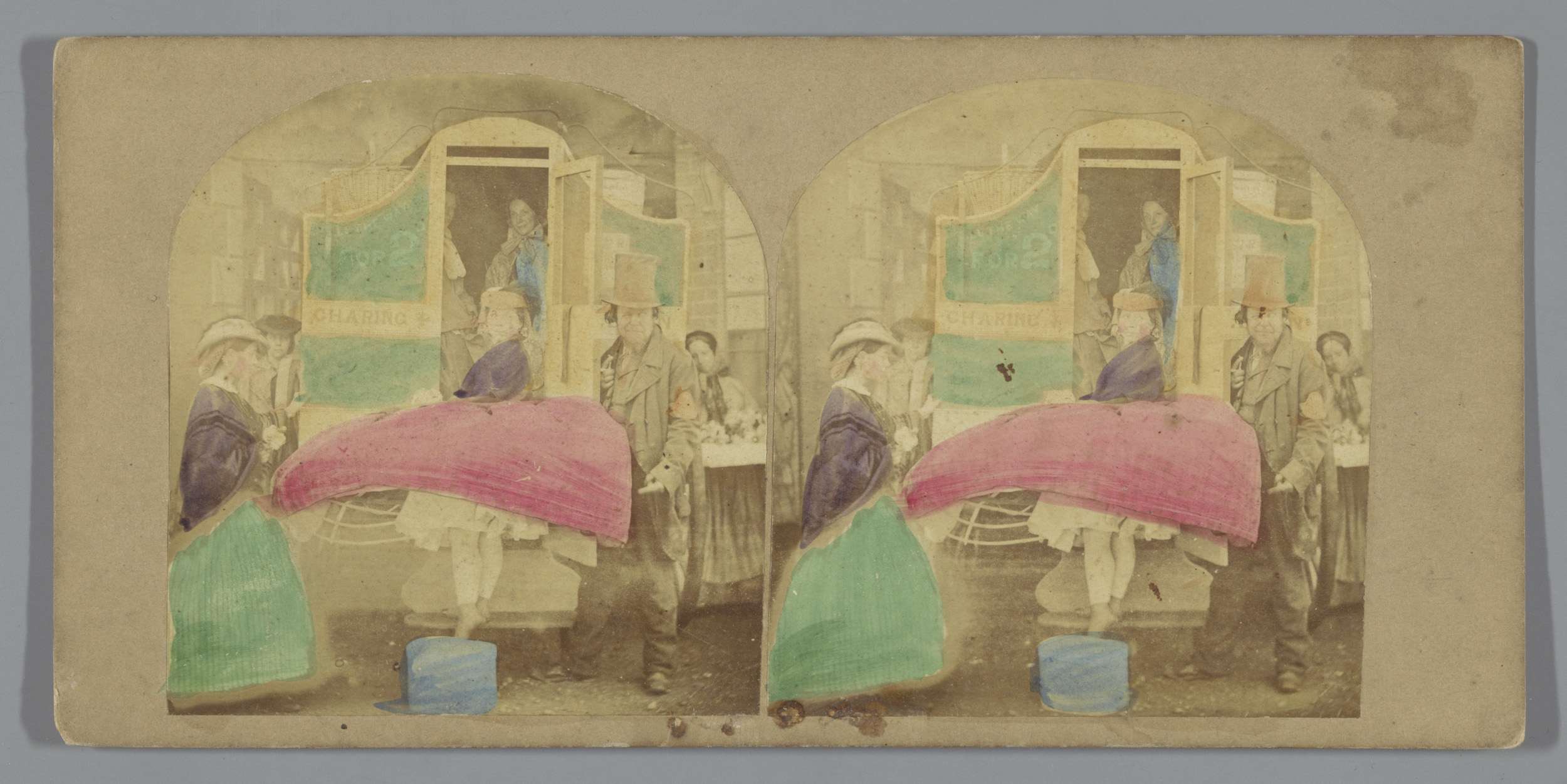 Vrouw moet haar hoepelrok uitdoen om de tram te betr...