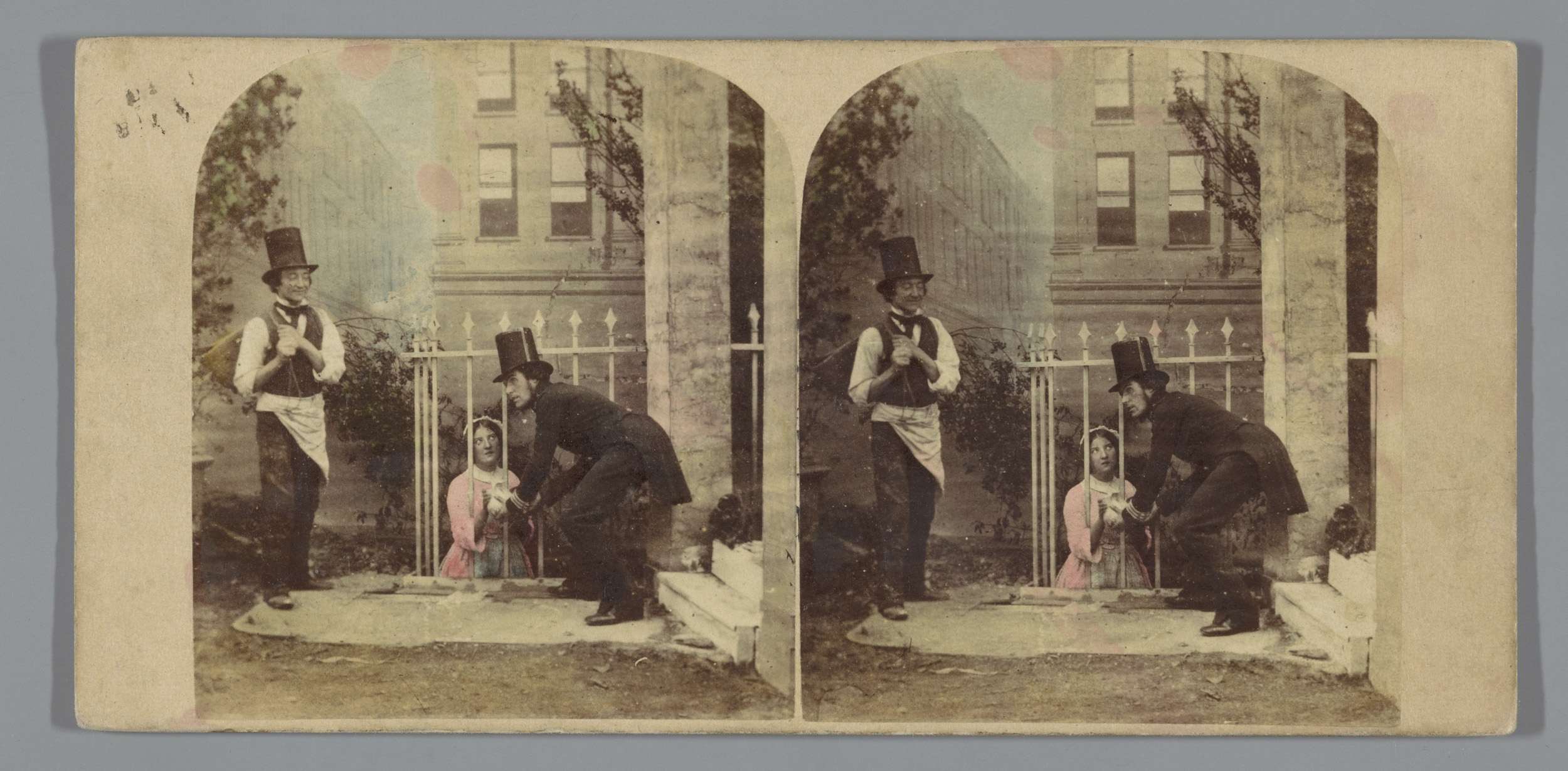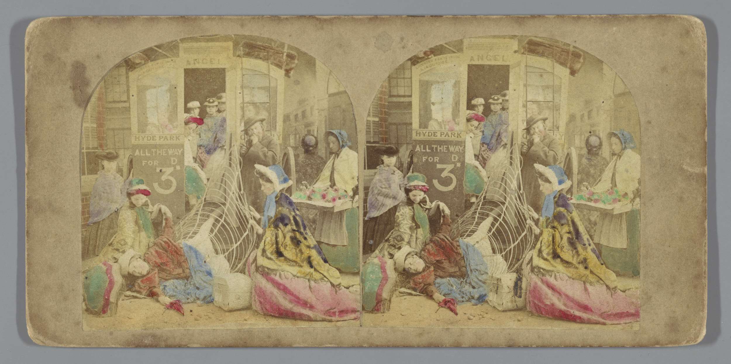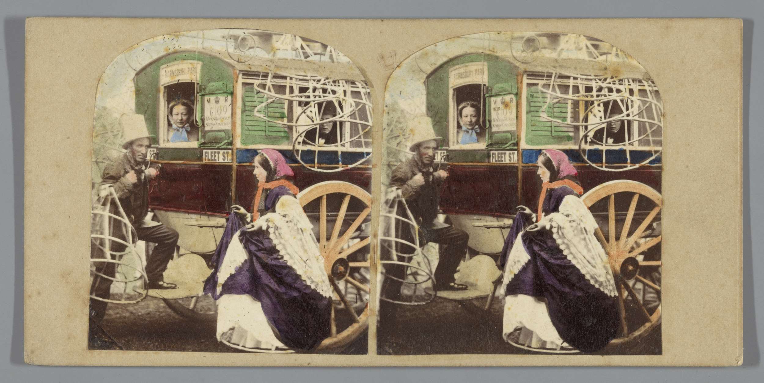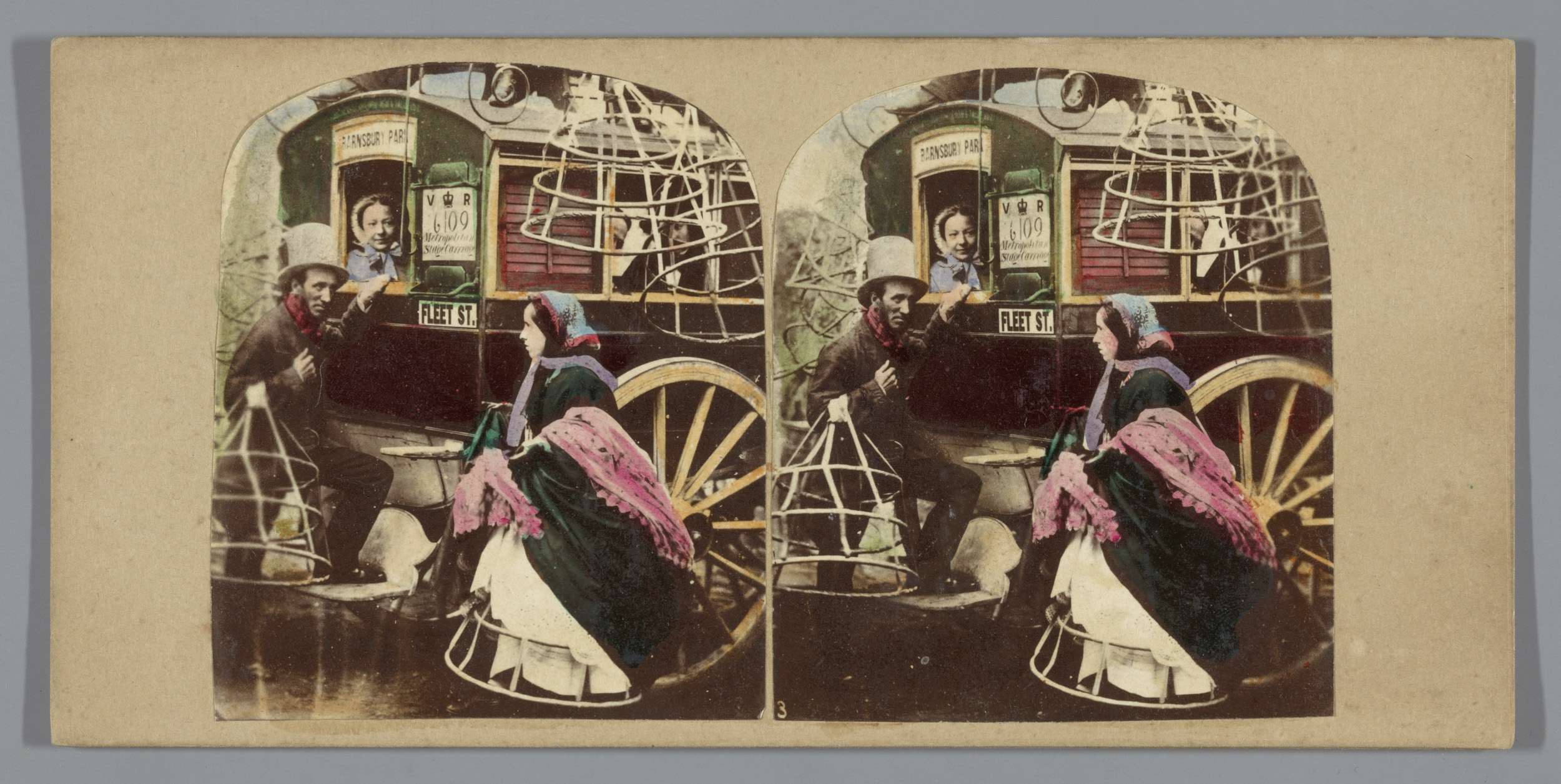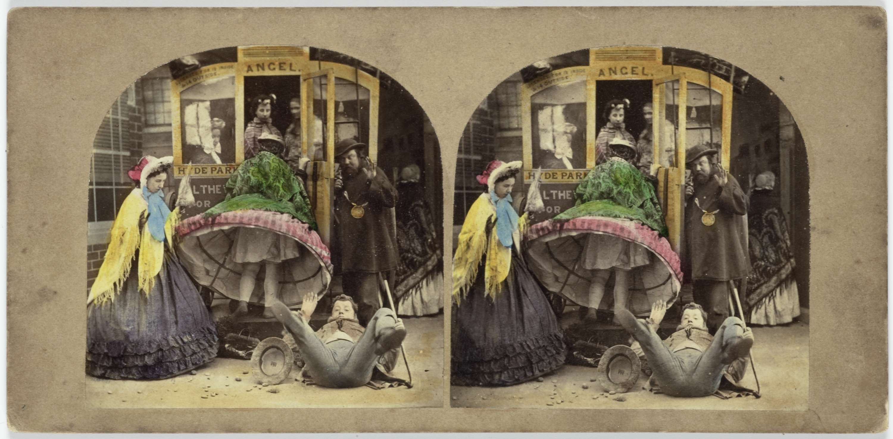 Vrouw moet haar hoepelrok achterlaten om de tram te ...