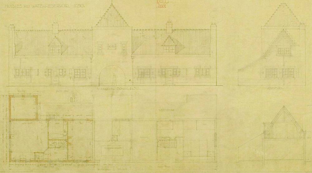 Ansichtkaart, voorstellende de watertoren aan de Rij...