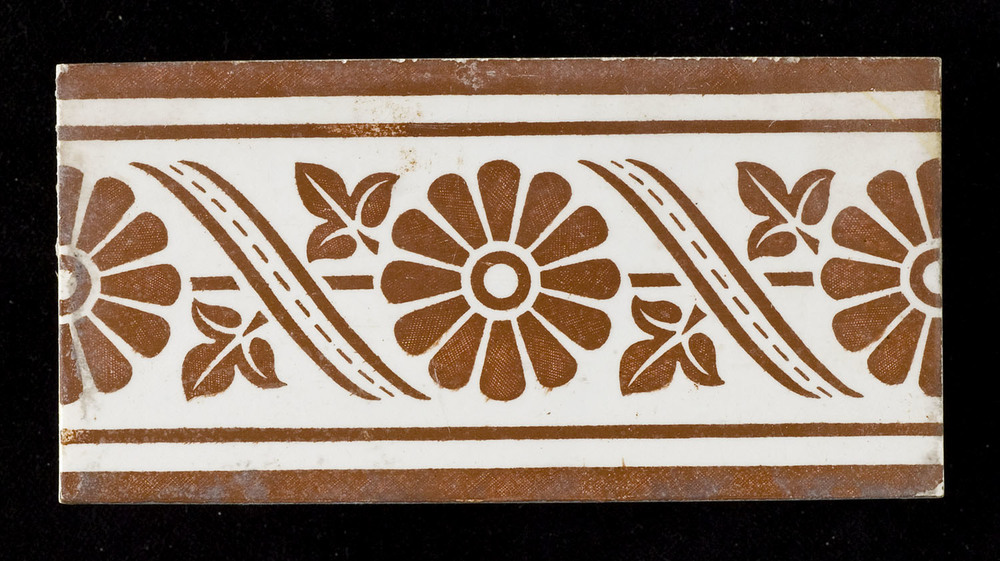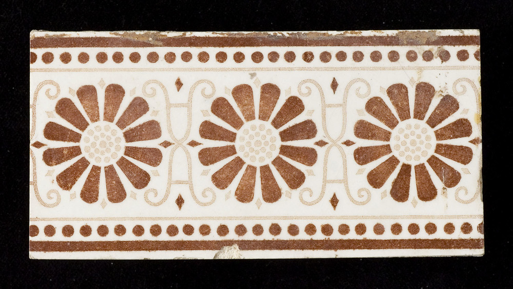 tegel van keramiek, deels gesjabloneerd op een gespr...