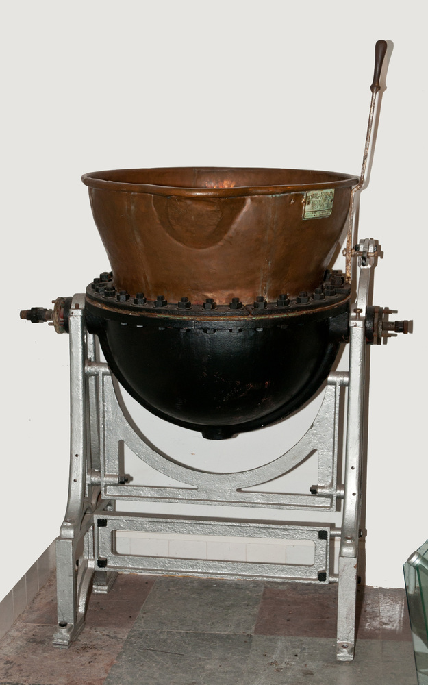 Jamkookpan van koper met houten spaan, vervaardigd d...
