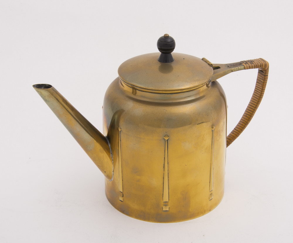Theepot van geel koper, vervaardigd door Metaalwaren...