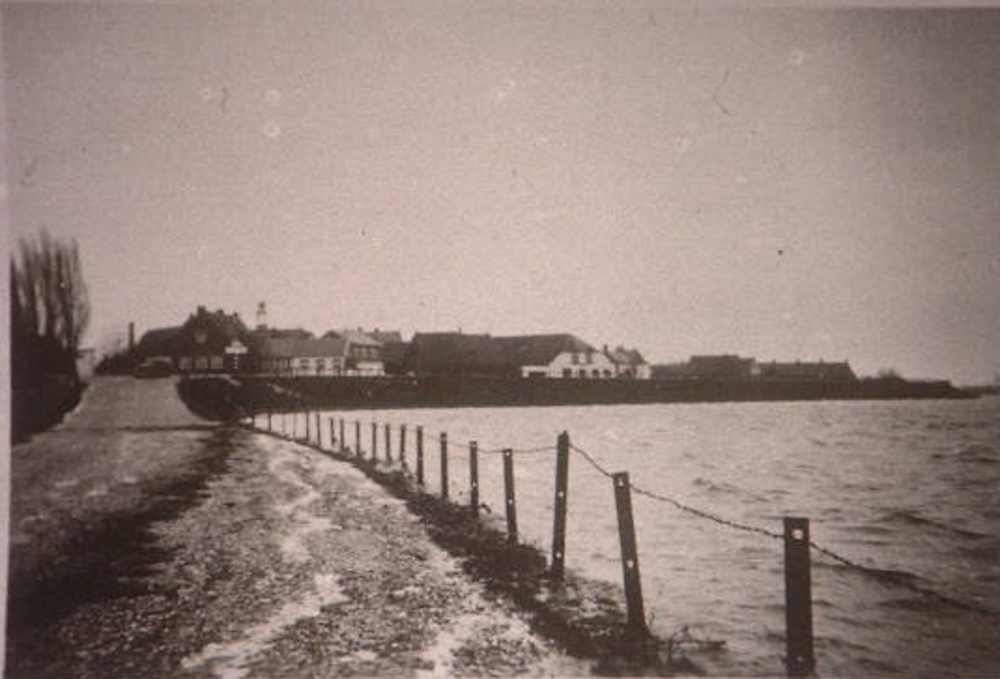 Gezicht op Huissen vanaf de Looveerweg tijdens hoog ...