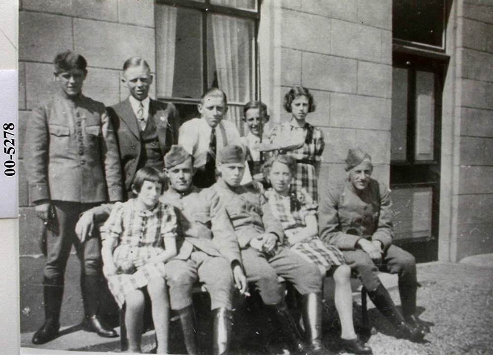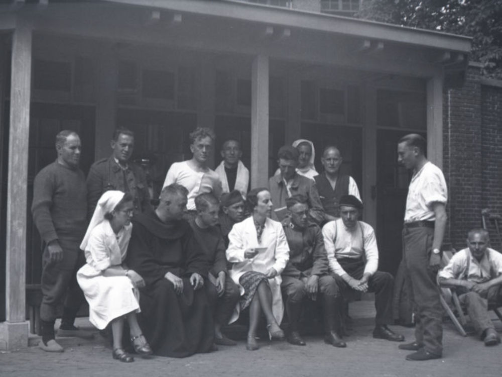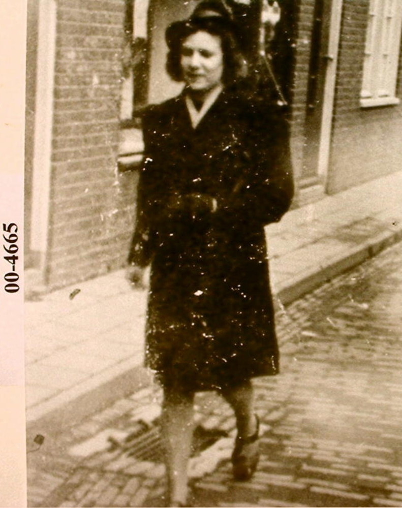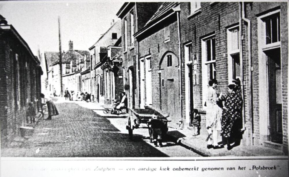 Twee jonge vissersvrouwen staan voor de ingang van e...