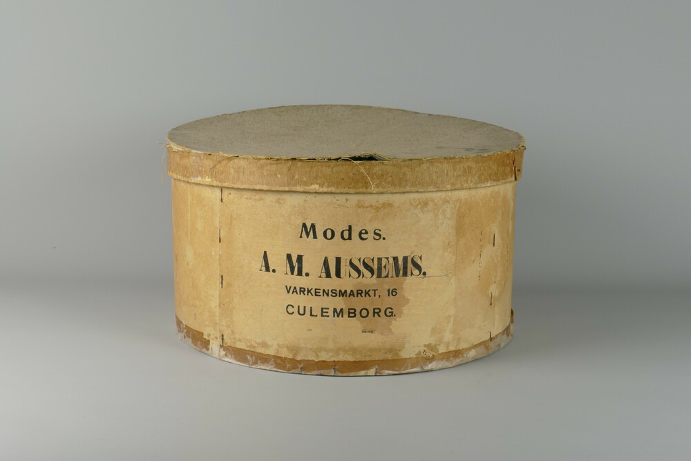 hoedendoos van karton met opschrift A.M. Aussems mod...