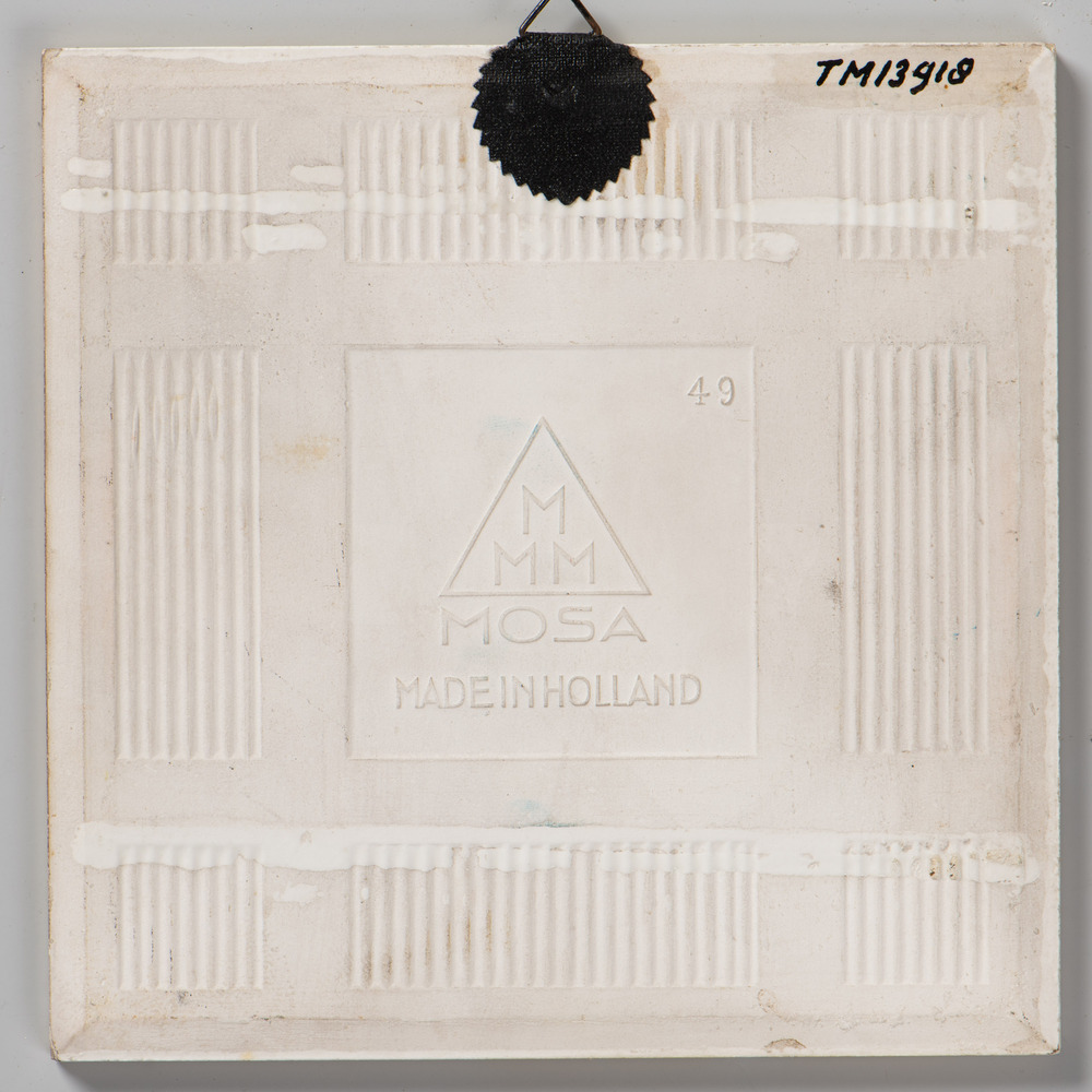 Tegel van keramiek met tinglazuur, voorstellende: or...