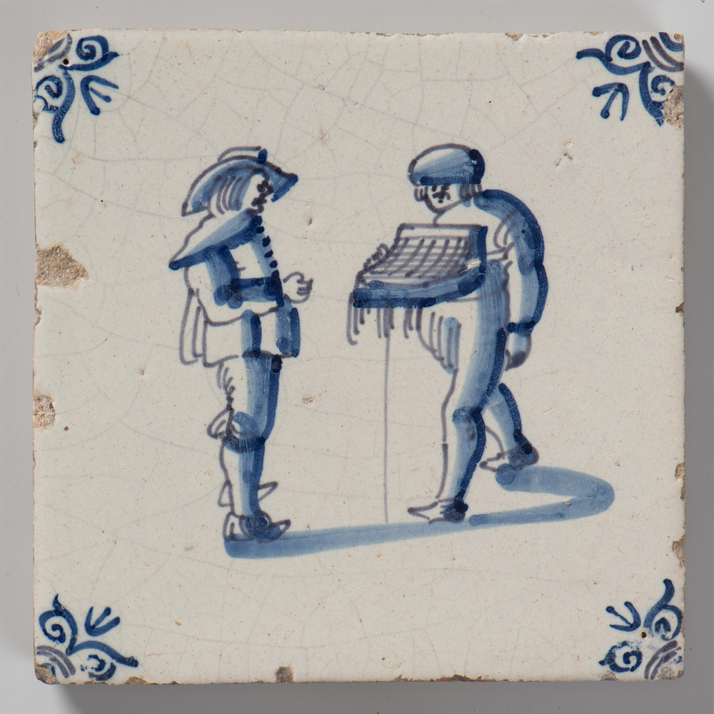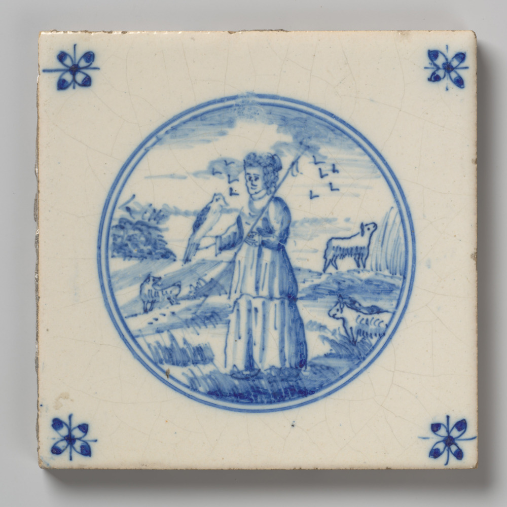tegel van aardewerk in onderglazuur, voorstellende: ...