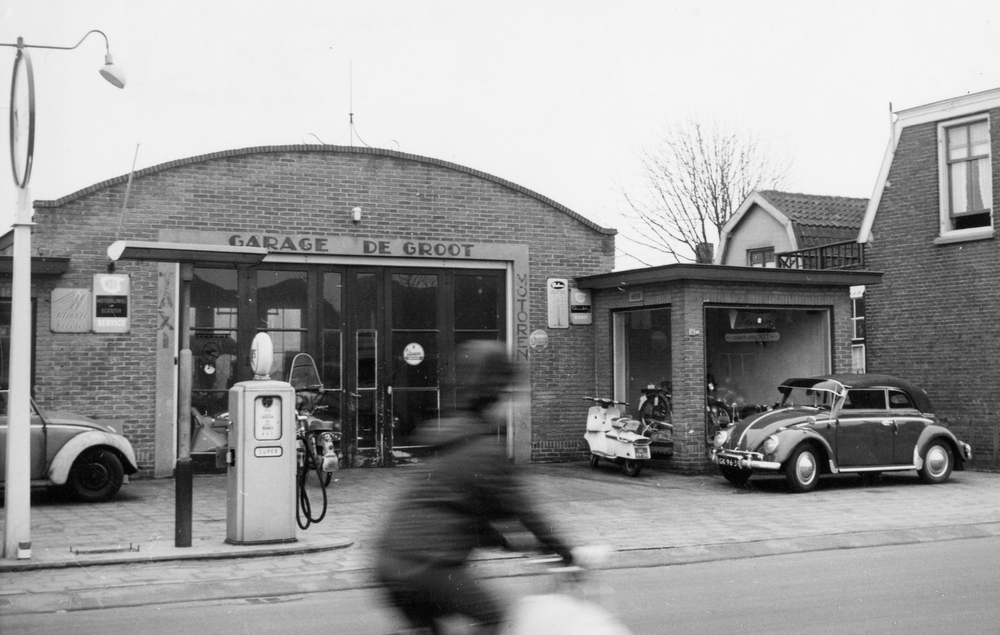 Foto, voorstellende tabakskerverij Hijmans, pomp, Ma...