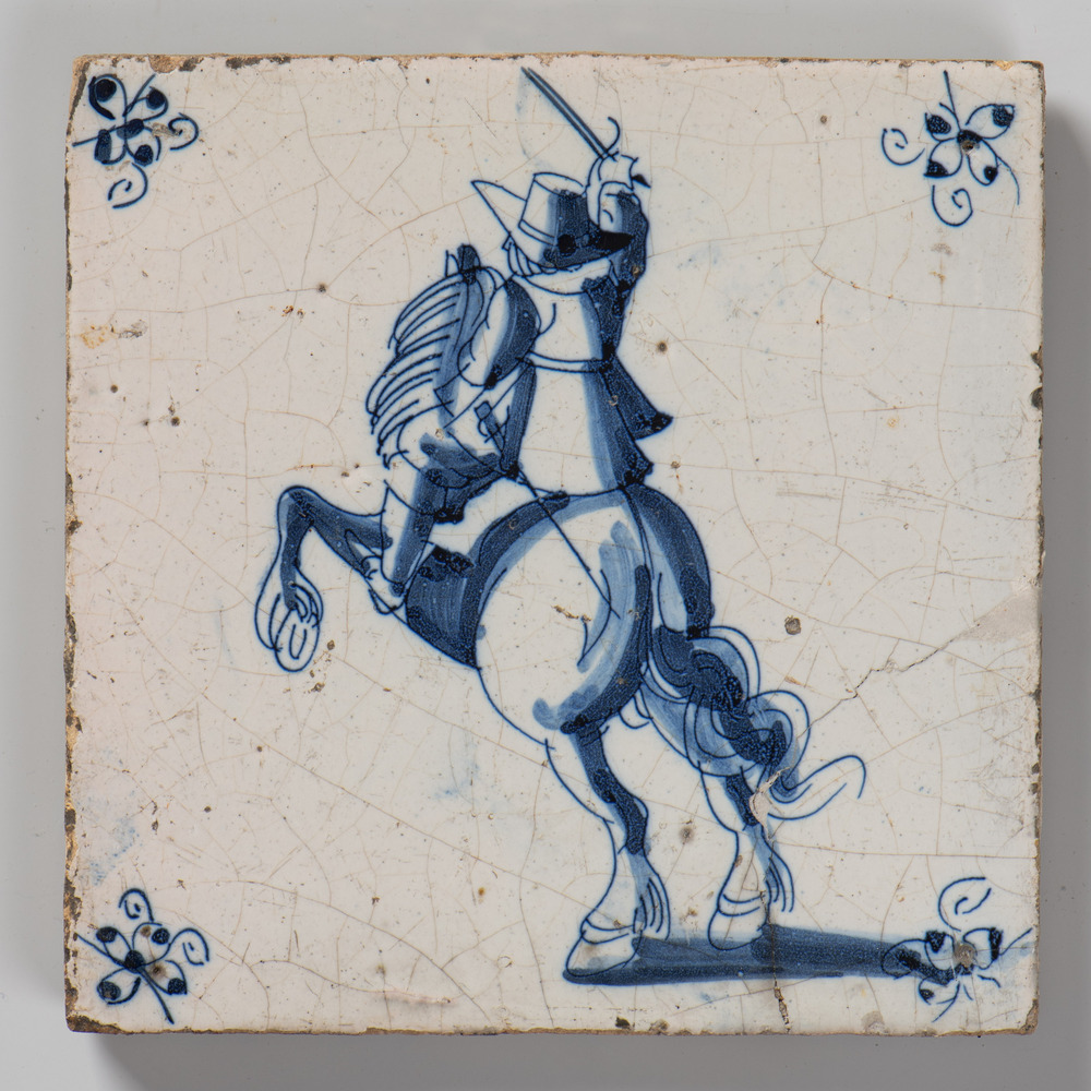 Tegel van aardewerk met tinglazuur, voorstellende: r...
