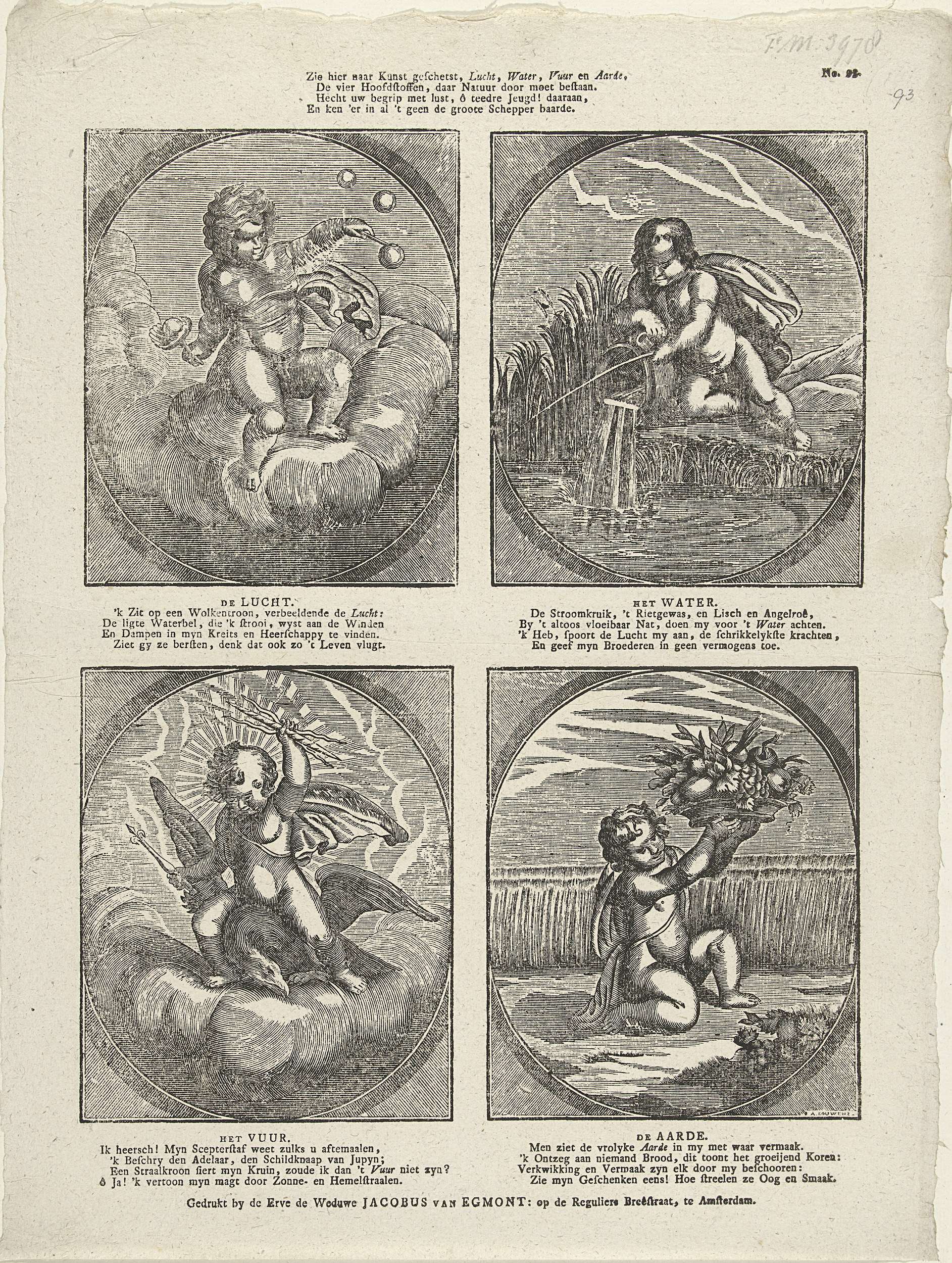 Zie hier naar kunst geschetst, lucht, water, vuur en...